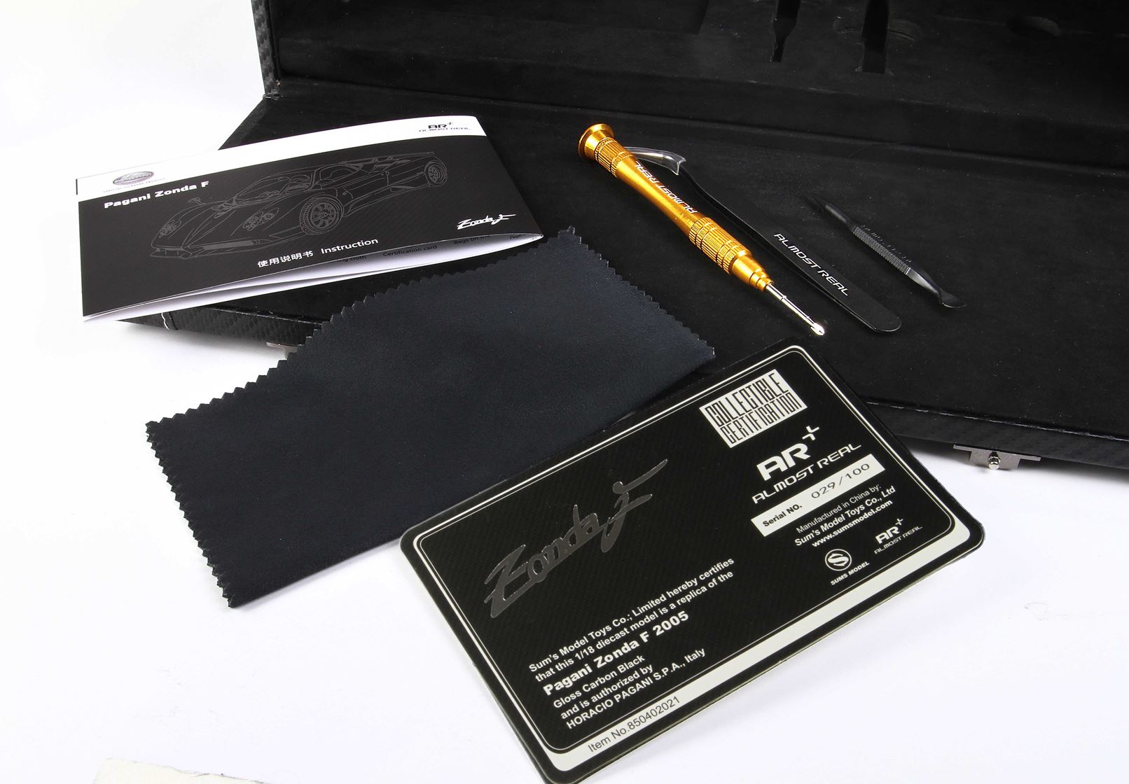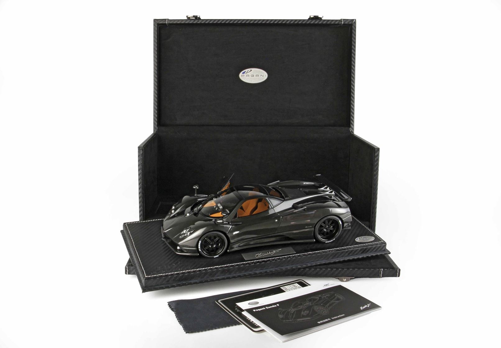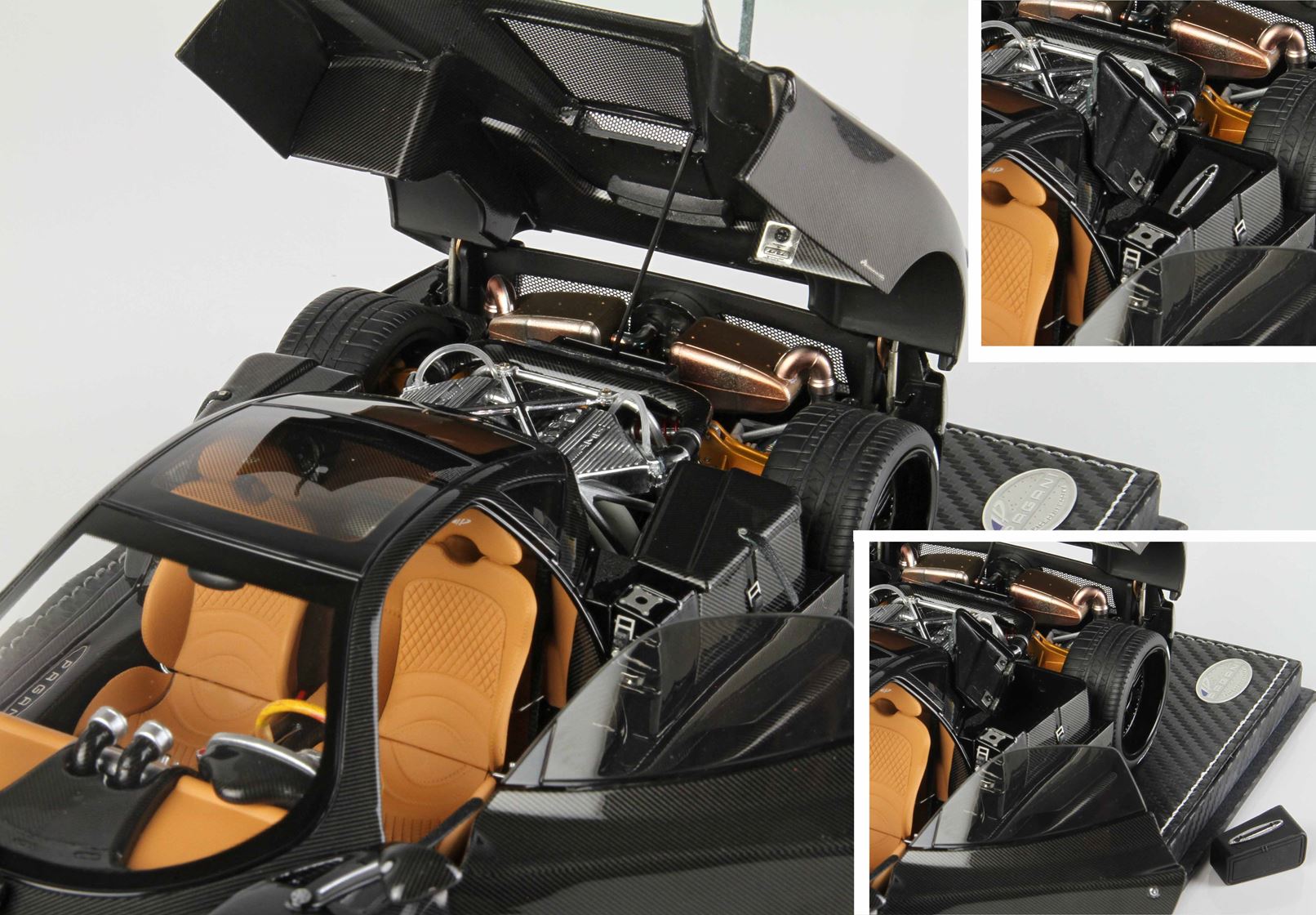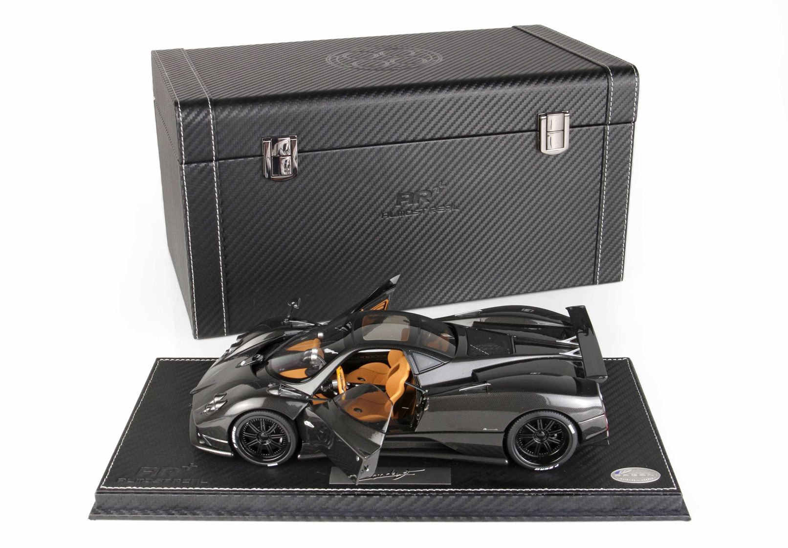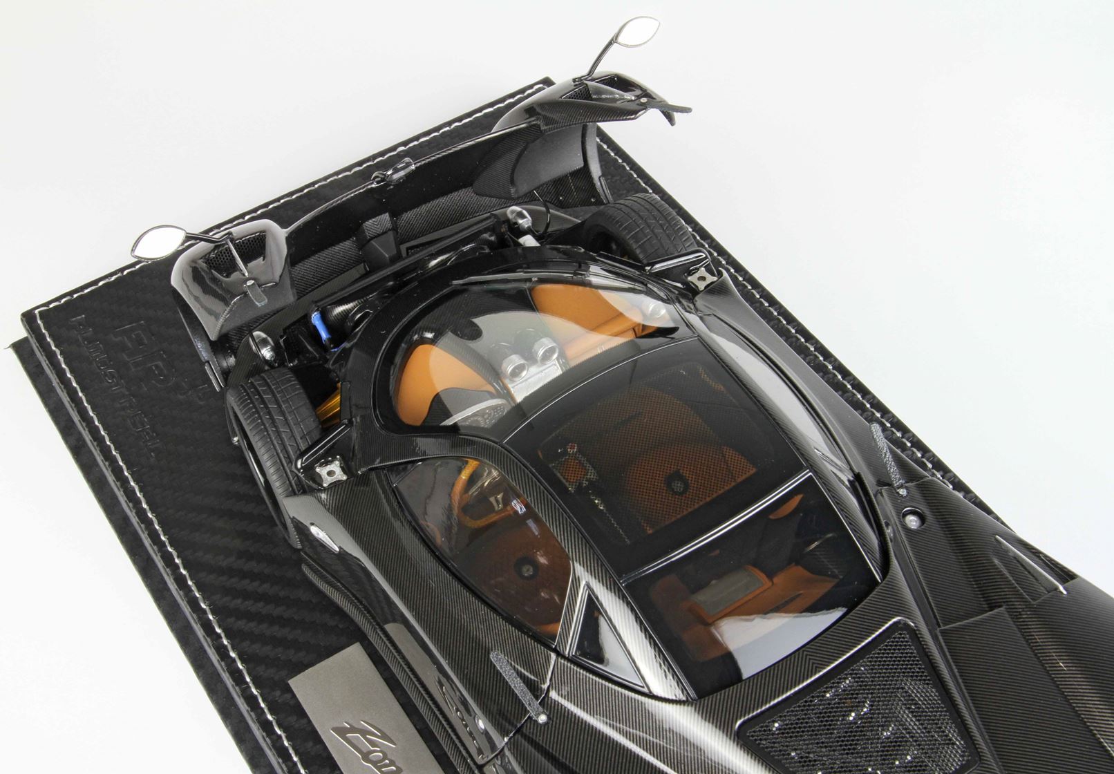 Nulla poteva essere fatto di più: 36 mesi di perfezionamento del prodotto, elaborazione e controllo del modello in fase di sviluppo in diversi test - release per arrivare finalmente a lei: magnifica nel suo splendore, per la gioia di tutti i collezionisti, un modello basato sulla macchina originale che risiede presso lo stabilimento Pagani: metallo pressofuso, pezzi torniti in alluminio e acciaio, specchietti laterali esterni.