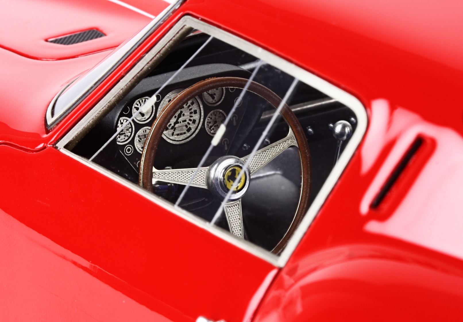 To commemorate this event, the 50th anniversary of his birth, we propose a very special model: the first version of the 250 GTO presented to the press in 1962,without the rear aerodynamic “Appendix” and Spartan interior as a real racing car.Model made for the first time by BBR Exclusive car models.