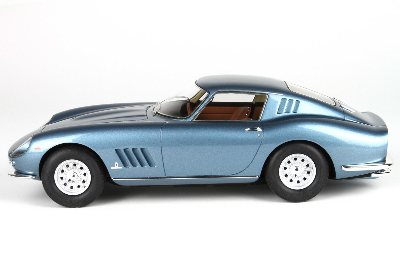 The 275 GTB Speciale S/N 06437 differs to the original model by sporting different headlamp covers (without the chrome surrounds), a new bonnet, grille, indicators, window frames, and even door handles.