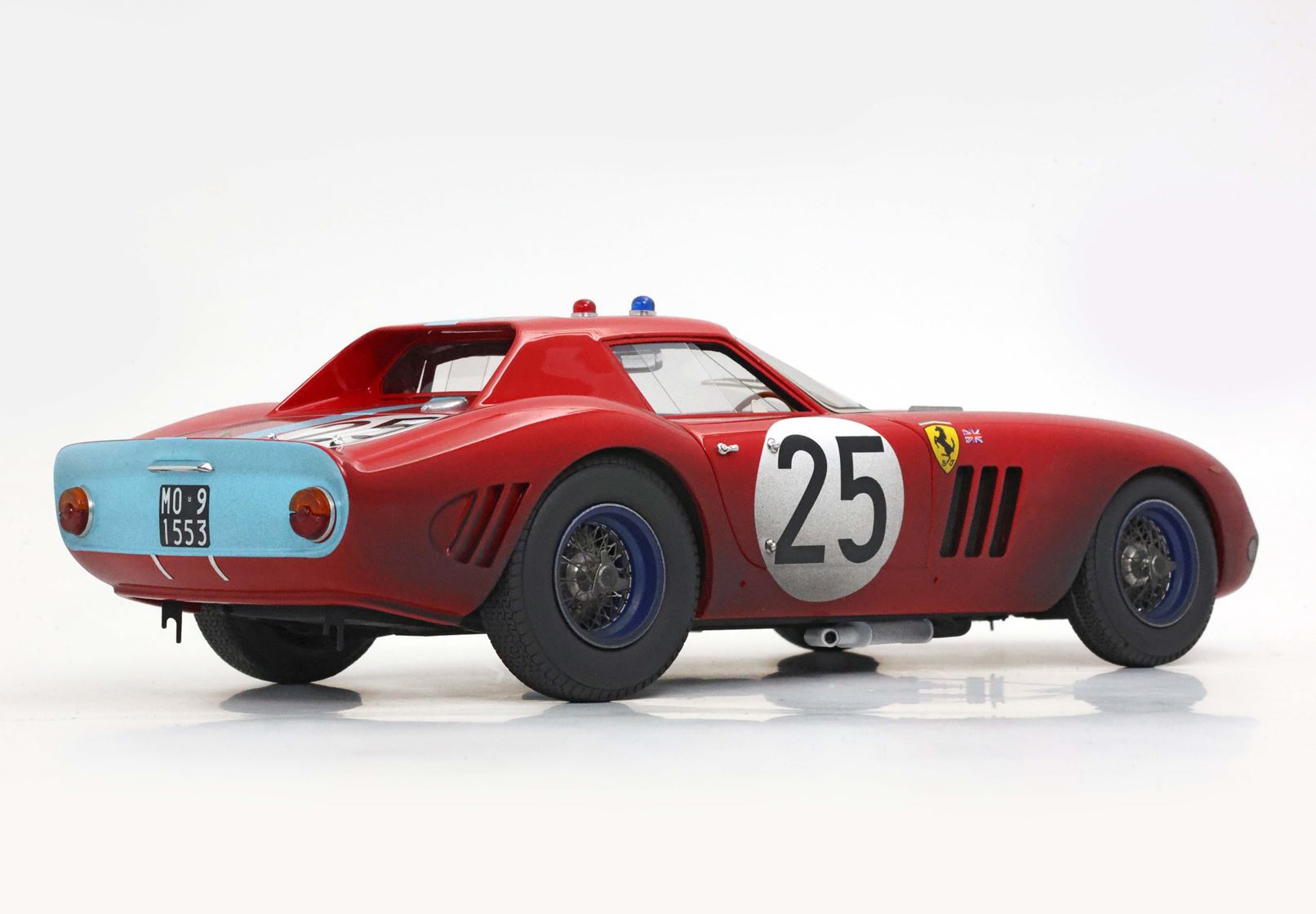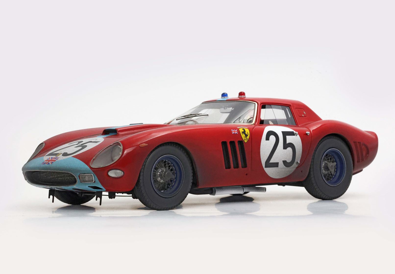 Questo modello riproduce la Ferrari telaio 4399 GT che ha corso con i piloti Ireland - Maggs nella squadra Concessionaria Maranello, sesta al traguardo. Particolarità di questa auto il muso azzurro e i cerchi blu.