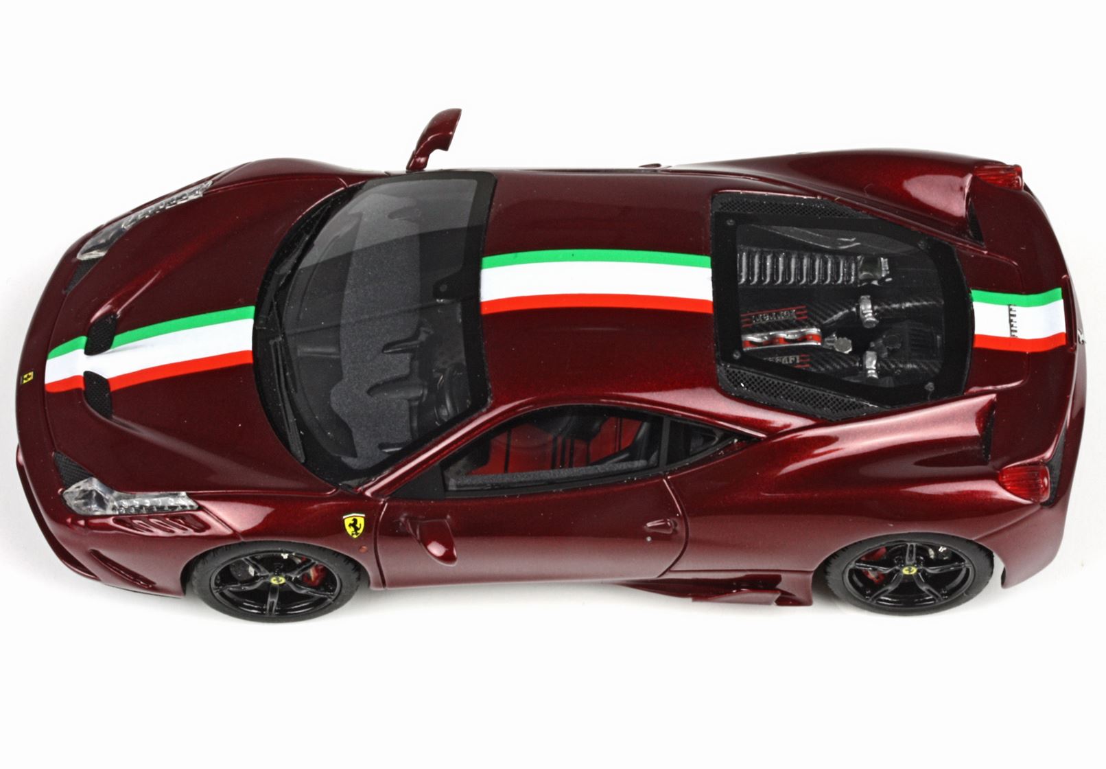 Il modello è verniciato in rosso metallizzato lo stesso colore usato da Ferrari per la presentazione della Ferrari CaliforniaT a Ginevra 2014