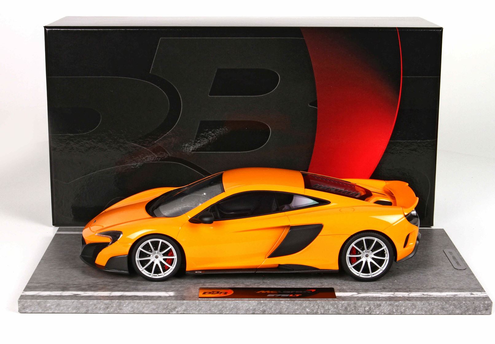 The McLaren 675LT (where "LT" stands for Long Tail) is a lightweight, track-focused evolution of the McLaren 650S. As with the 650S, the 675LT makes use of single-piece carbon fibre monocell weighing 75 kg (165 lb), and carbon fibre