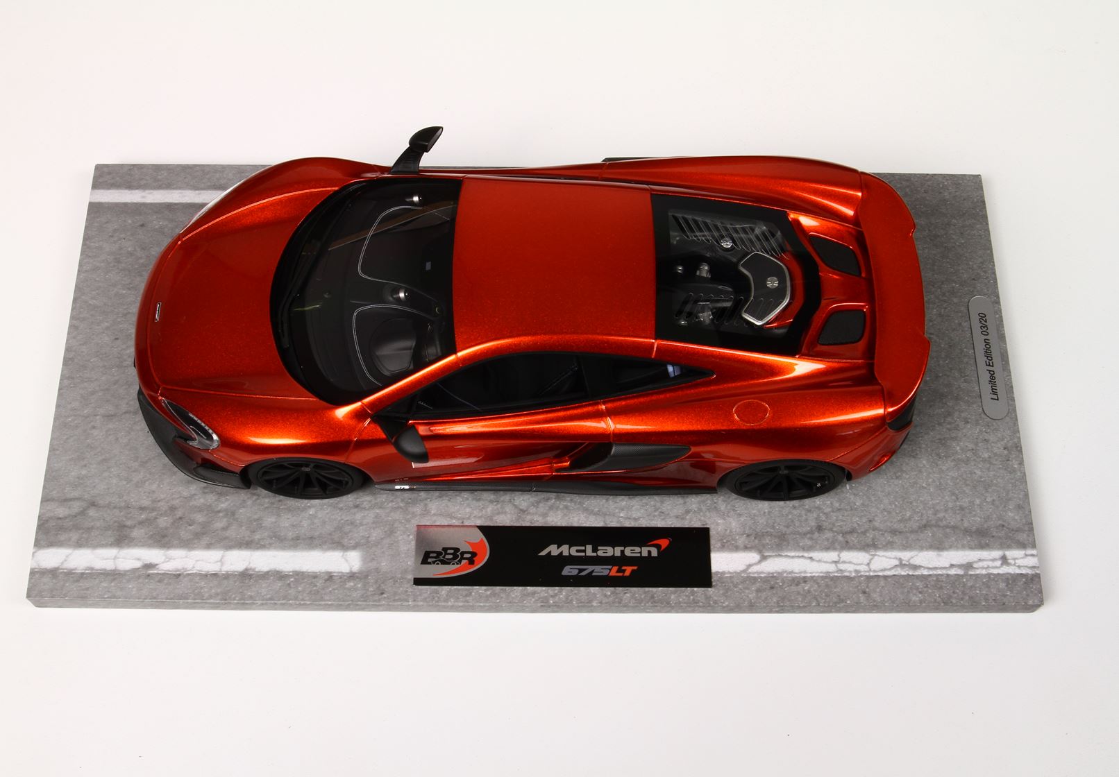 The McLaren 675LT (where "LT" stands for Long Tail) is a lightweight, track-focused evolution of the McLaren 650S. As with the 650S, the 675LT makes use of single-piece carbon fibre monocell weighing 75 kg (165 lb), and carbon fibre