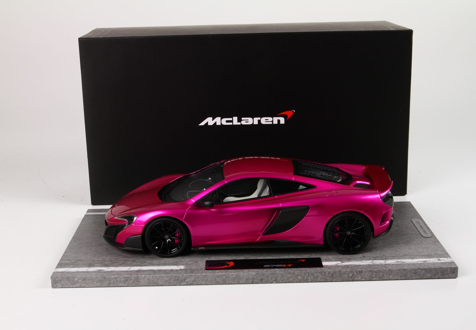 The McLaren 675LT (where "LT" stands for Long Tail) is a lightweight, track-focused evolution of the McLaren 650S. As with the 650S, the 675LT makes use of single-piece carbon fibre monocell weighing 75 kg (165 lb), and carbon fibre