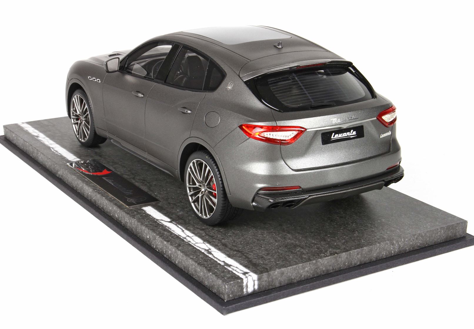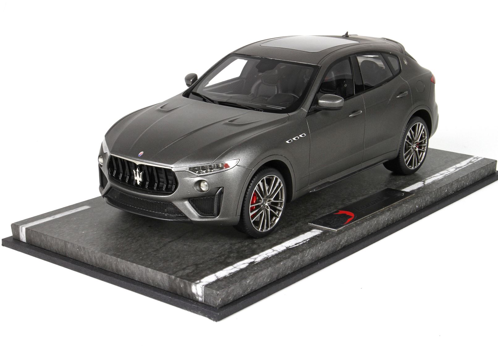 Maserati has chosen New York motor show 2018 for displaying the new Maserati Levante Trofeo, the most extreme and powerful variant belonging to the Italian SUV range. Ready to arrive at first in the USA and Canada, the Levante Trofeo sets new and higher standards of sportiness for the Maserati offer. Under the bonnet of this super SUV, a 3.8 liter twin-turbo Ferrari V8 engine is fitted. capable of releasing 590 hp and 730 Nm of maximum torque at 2,250 rpm. Matt gray color. Really a great effect, there is a window on the roof from where you can see the detailed interiors.