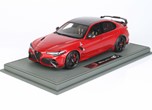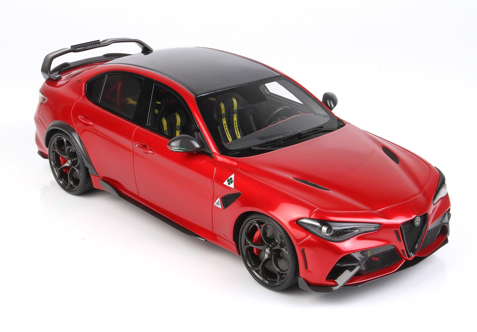 la GTAm: la variante più spinta dell’attuale gamma del Biscione, oltre al frontale specifico con splitter attivo e all’ala posteriore di fibra di carbonio, è caratterizzata da diverse soluzioni derivate dal mondo delle competizioni. La Giulia GTAm è caratterizzata dalla presenza di due soli sedili: il divano posteriore è stato sostituito da un roll bar, sotto il quale sono stati ricavati degli alloggiamenti per due caschi e un estintore. Per contenere al massimo il peso, sono stati rimossi anche i pannelli porta e le maniglie interne per l’apertura degli sportelli sono state sostituite con dei nastri.