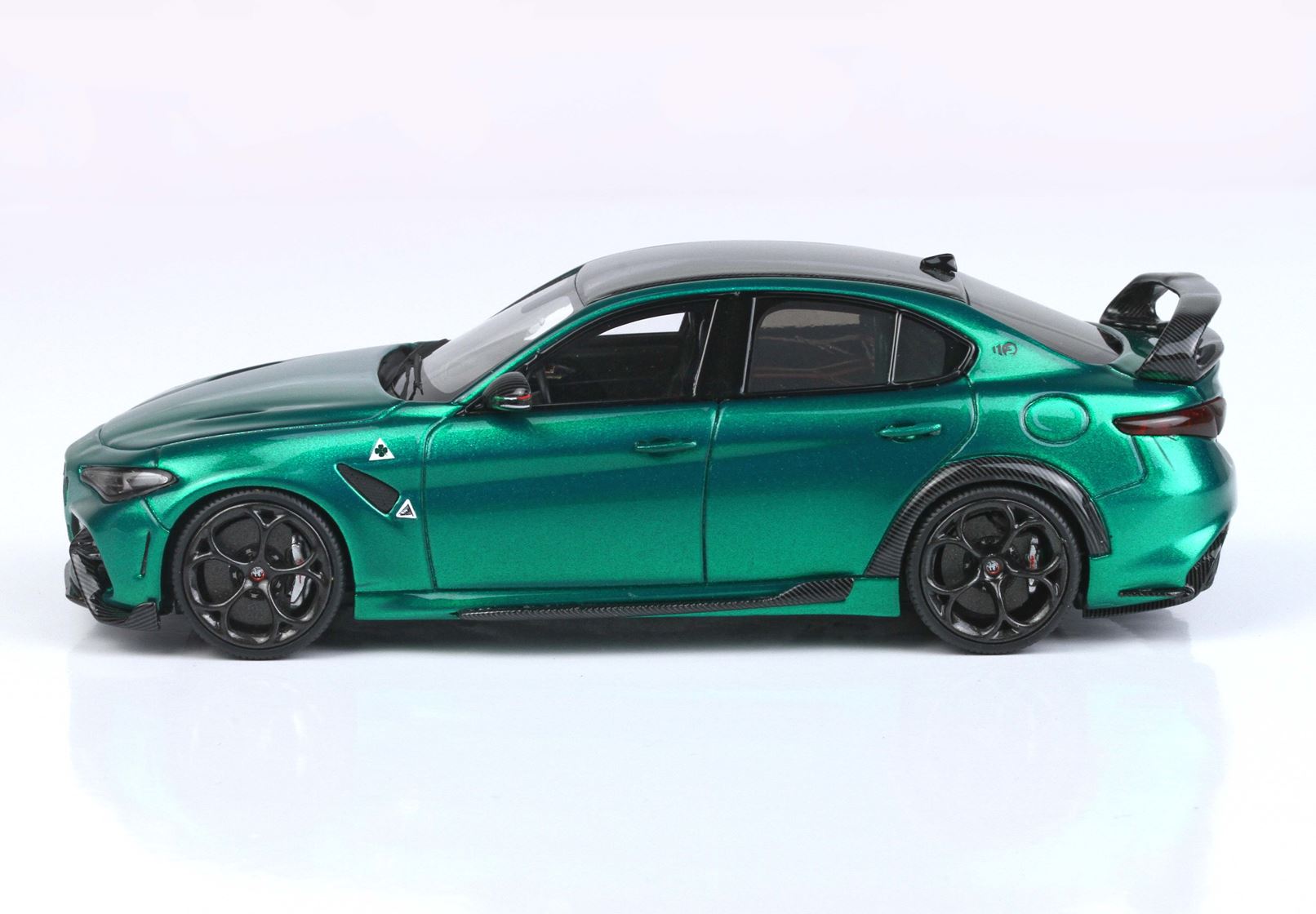 la GTAm: la variante più spinta dell’attuale gamma del Biscione, oltre al frontale specifico con splitter attivo e all’ala posteriore di fibra di carbonio, è caratterizzata da diverse soluzioni derivate dal mondo delle competizioni. La Giulia GTAm è caratterizzata dalla presenza di due soli sedili: il divano posteriore è stato sostituito da un roll bar, sotto il quale sono stati ricavati degli alloggiamenti per due caschi e un estintore. Per contenere al massimo il peso, sono stati rimossi anche i pannelli porta e le maniglie interne per l’apertura degli sportelli sono state sostituite con dei nastri.