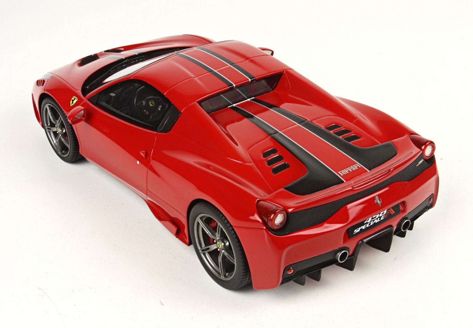 Very detailed is the replica of the interior with carbon fiber on the doors.