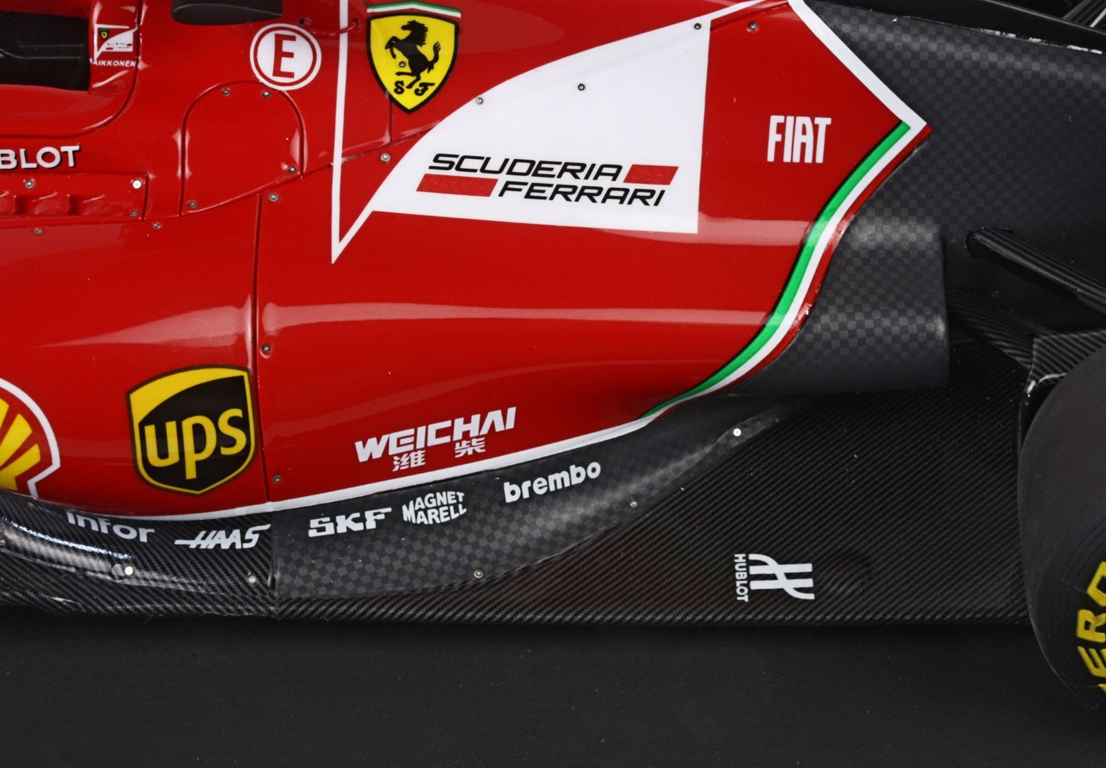 • the carbon fiber is reproduced in three types, on suspension arms, on the bottom of the model and in the rear part of the car.