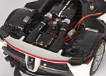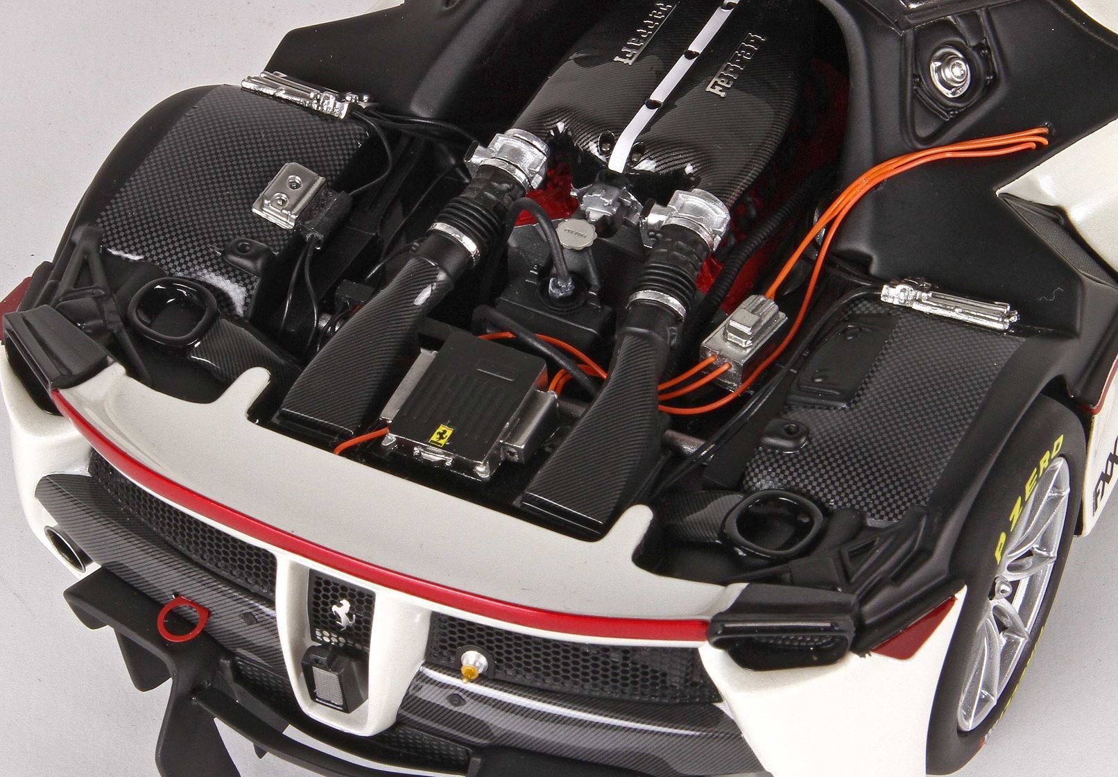 The parts that on the real cars are in carbon, on the model are replicated with decals in carbon fiber. BBR has used steel bolds for the engine.