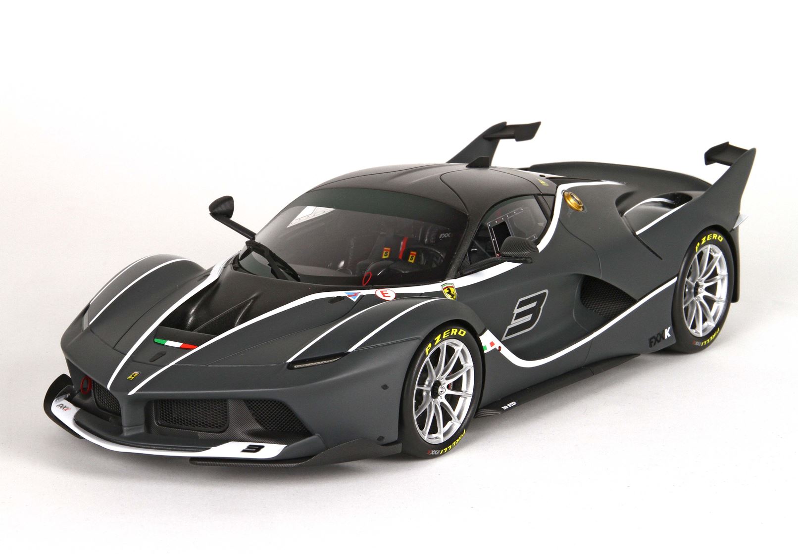 The color of this Ferrari FXXK is matt medium grey chosed by its owner.