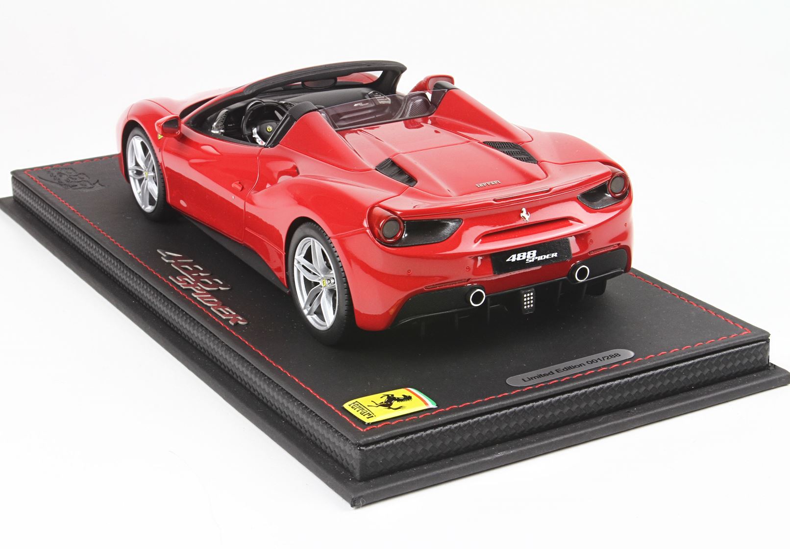 This model in scale 1/18 is the loyal reproduction of Ferrari 488 GTB spider, big attention is been given to reproduce teh wheels that is made of 9 pieces with real chrome steel knocks.