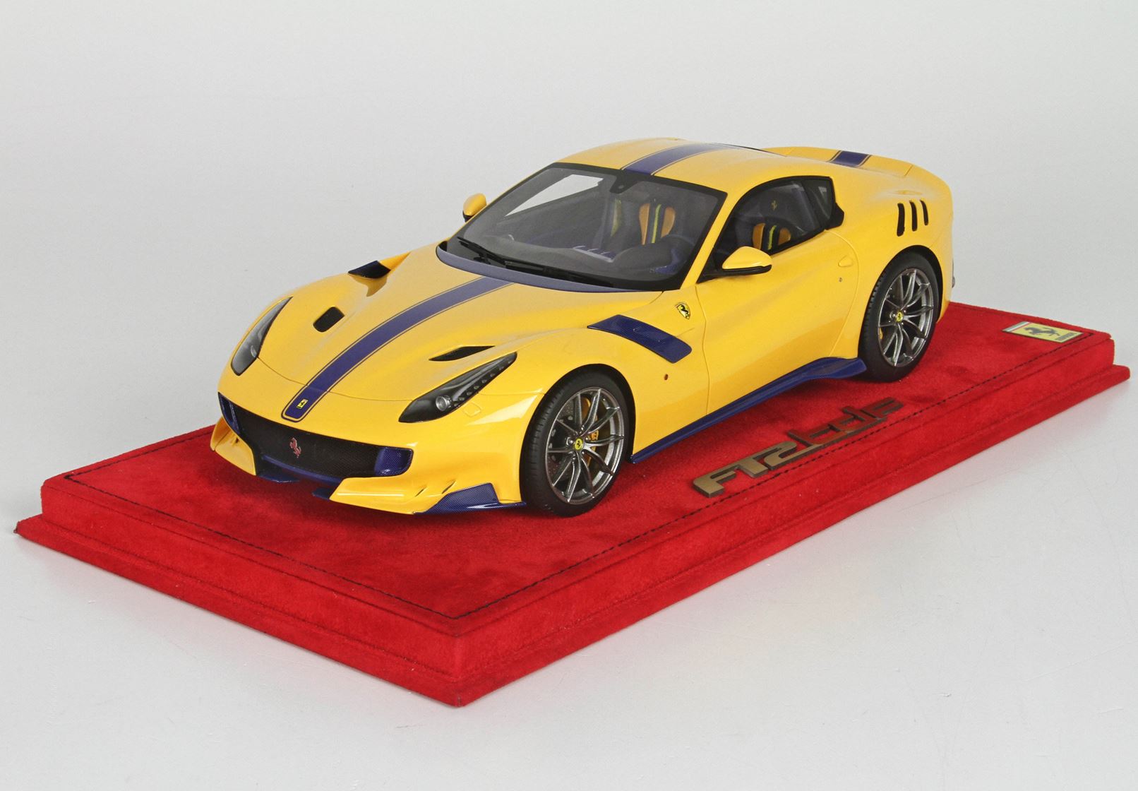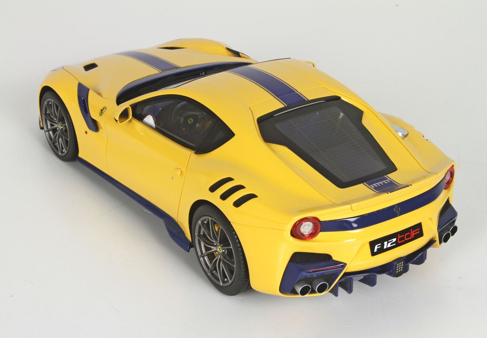 The color of the car is Giallo Modena 4305, but the real peculiarity is the carbon fibre, which is normally black. The owner of the real car wanted his TDF with carbon in blue, both inside parts and outside parts the car.