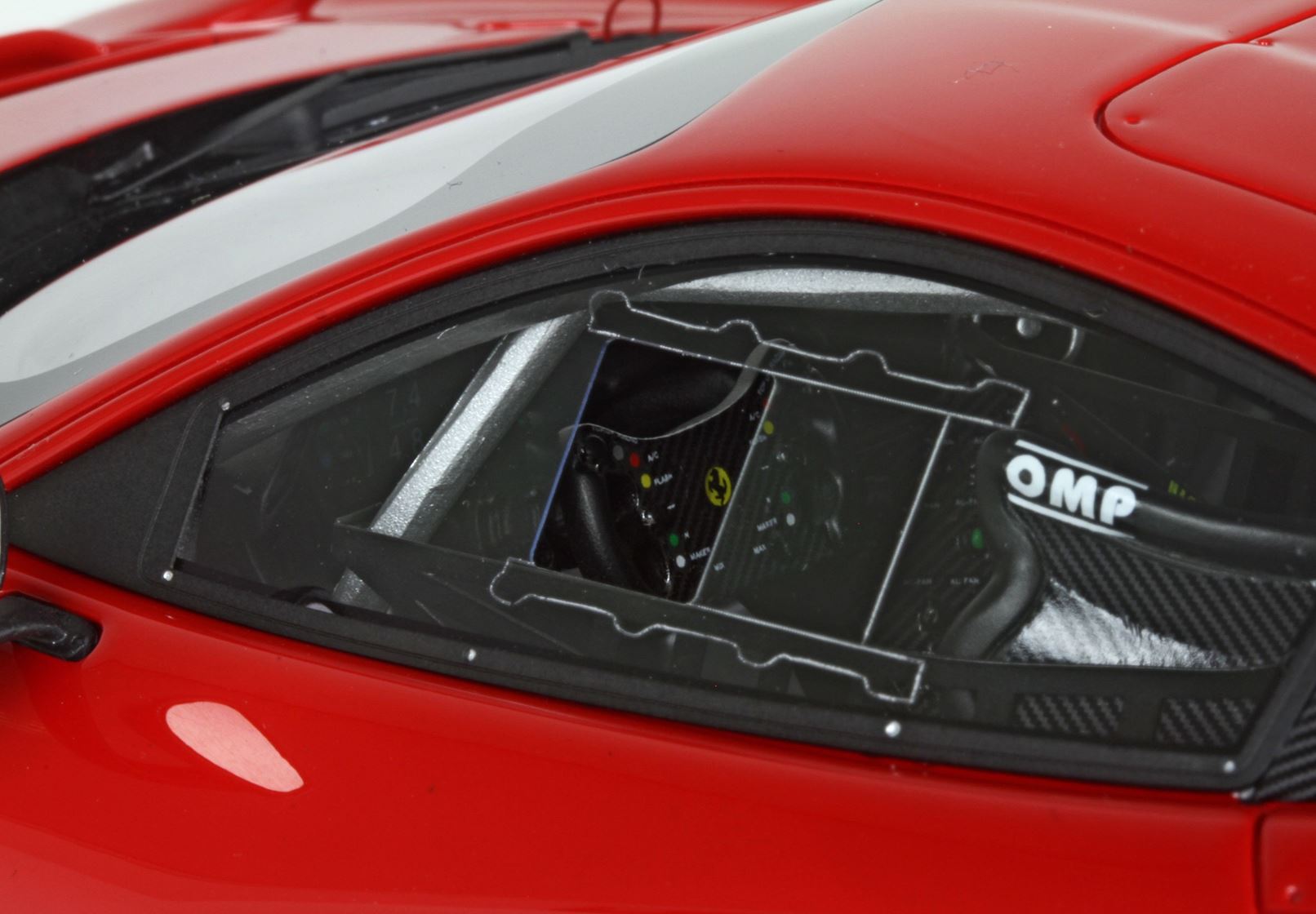 BBR has loyally reproduced the interiors, the roll bar is in metal with the driver protection net. BBR has used a special pain to reproduce the dashboard.