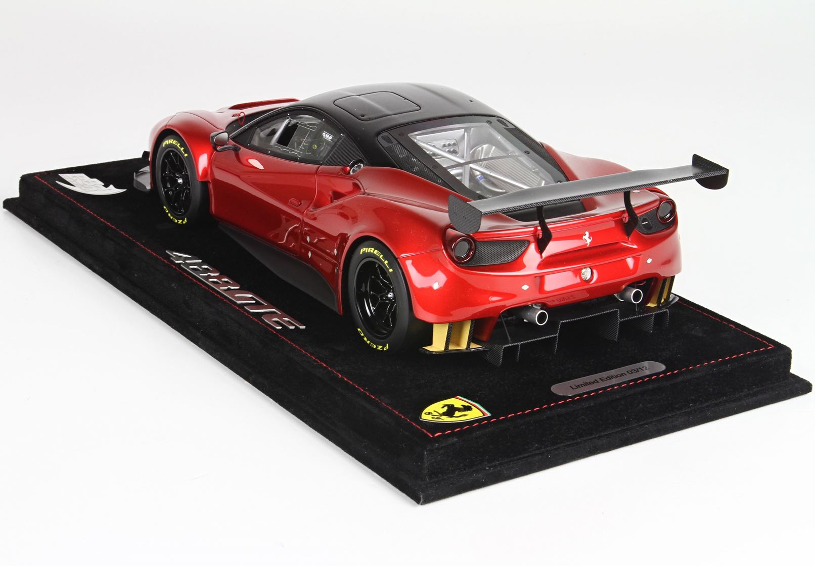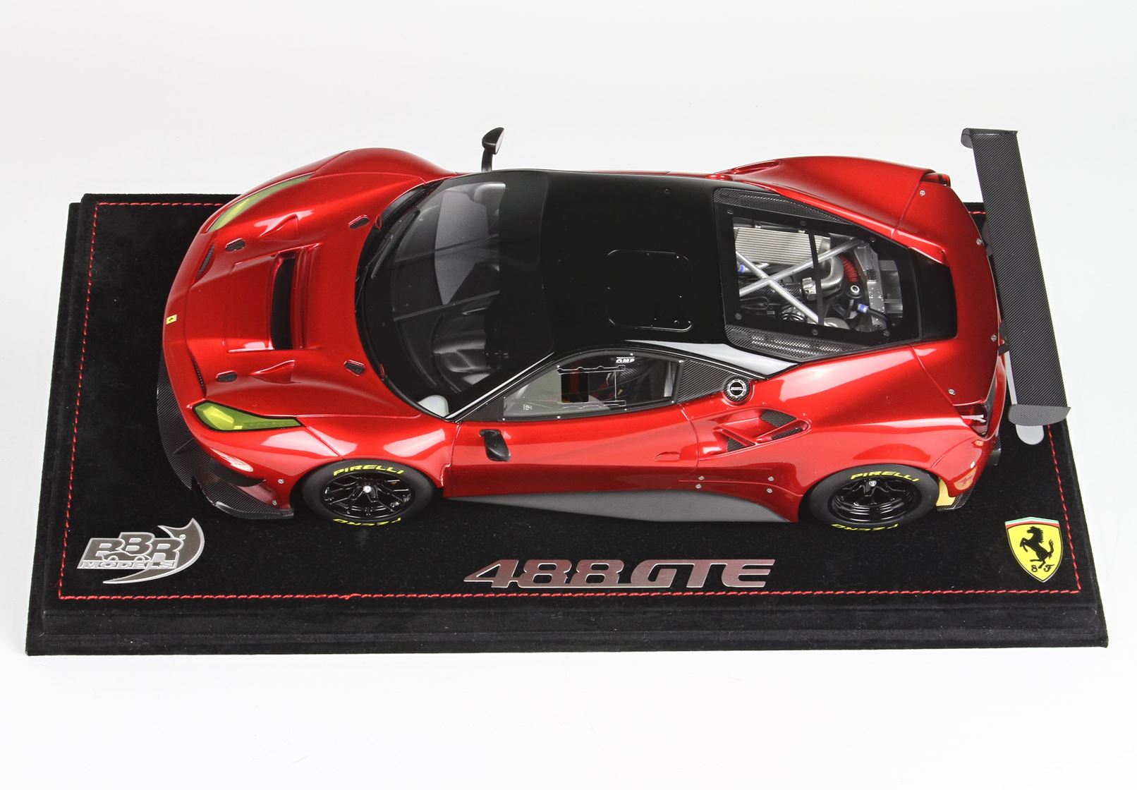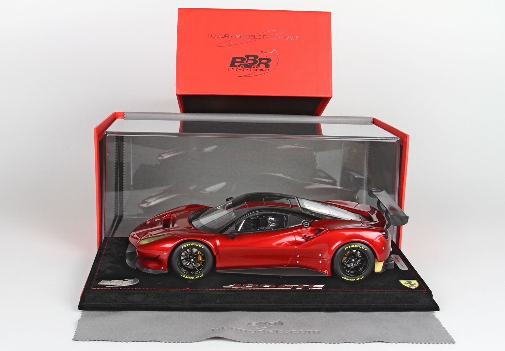 Models sold with display case and alcantara black base with red stitches