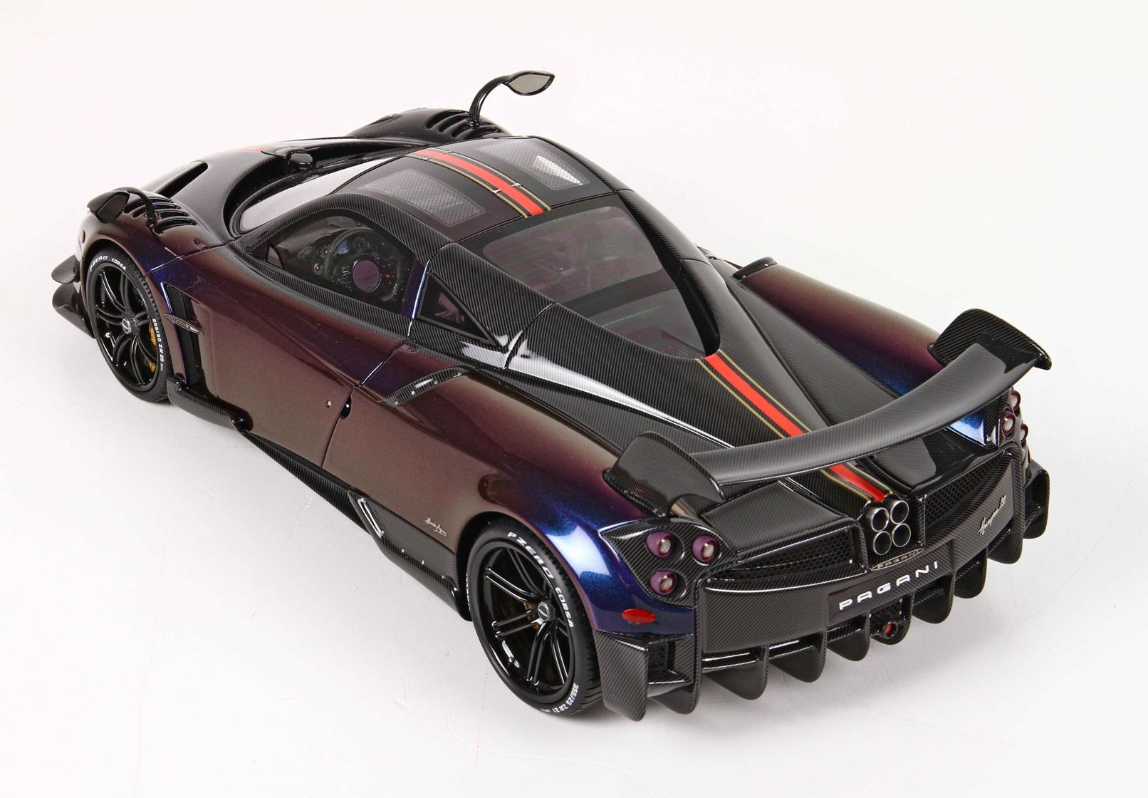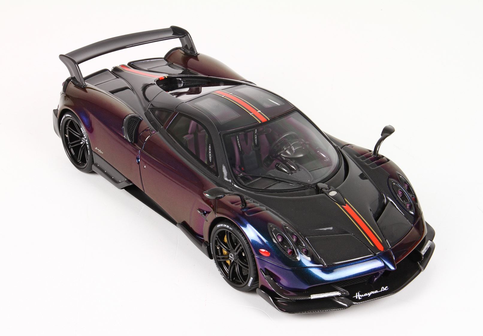 Models is covered by decal in carbon fiber and after Painted, to realise the real replica of carbon fiber which is gloss and metallic.