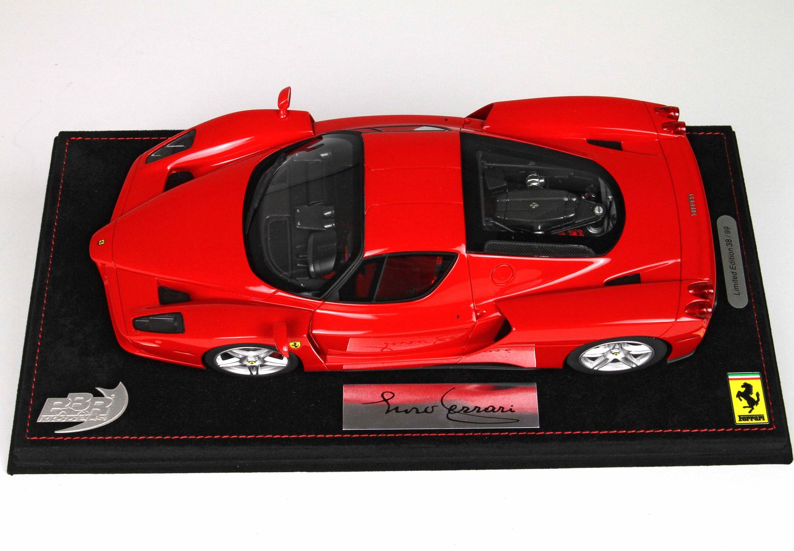 The model we offer you here is a resin model, completely closed as all the BBR models produced in Project 18 line. From the dashboard is possible to take a look on the speed and brake pedals. Many are the details that make this model special. It is sold on alcantara base and you can choose to have it with or without plexiglass display case.