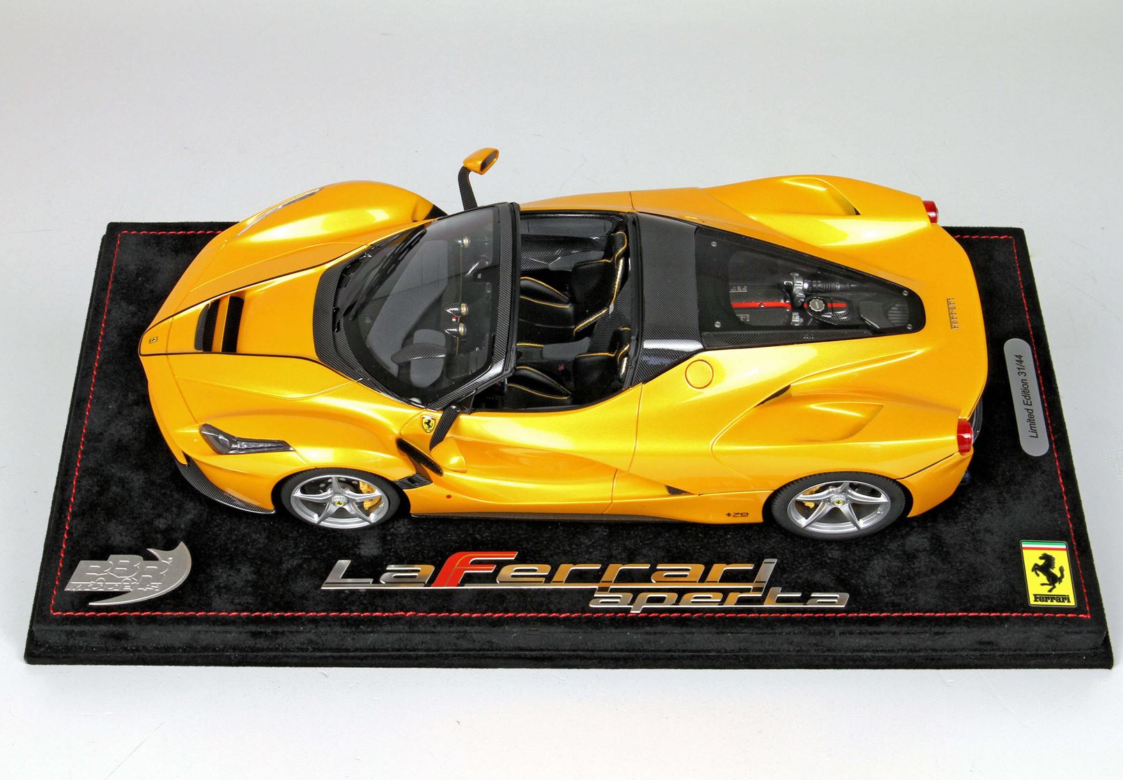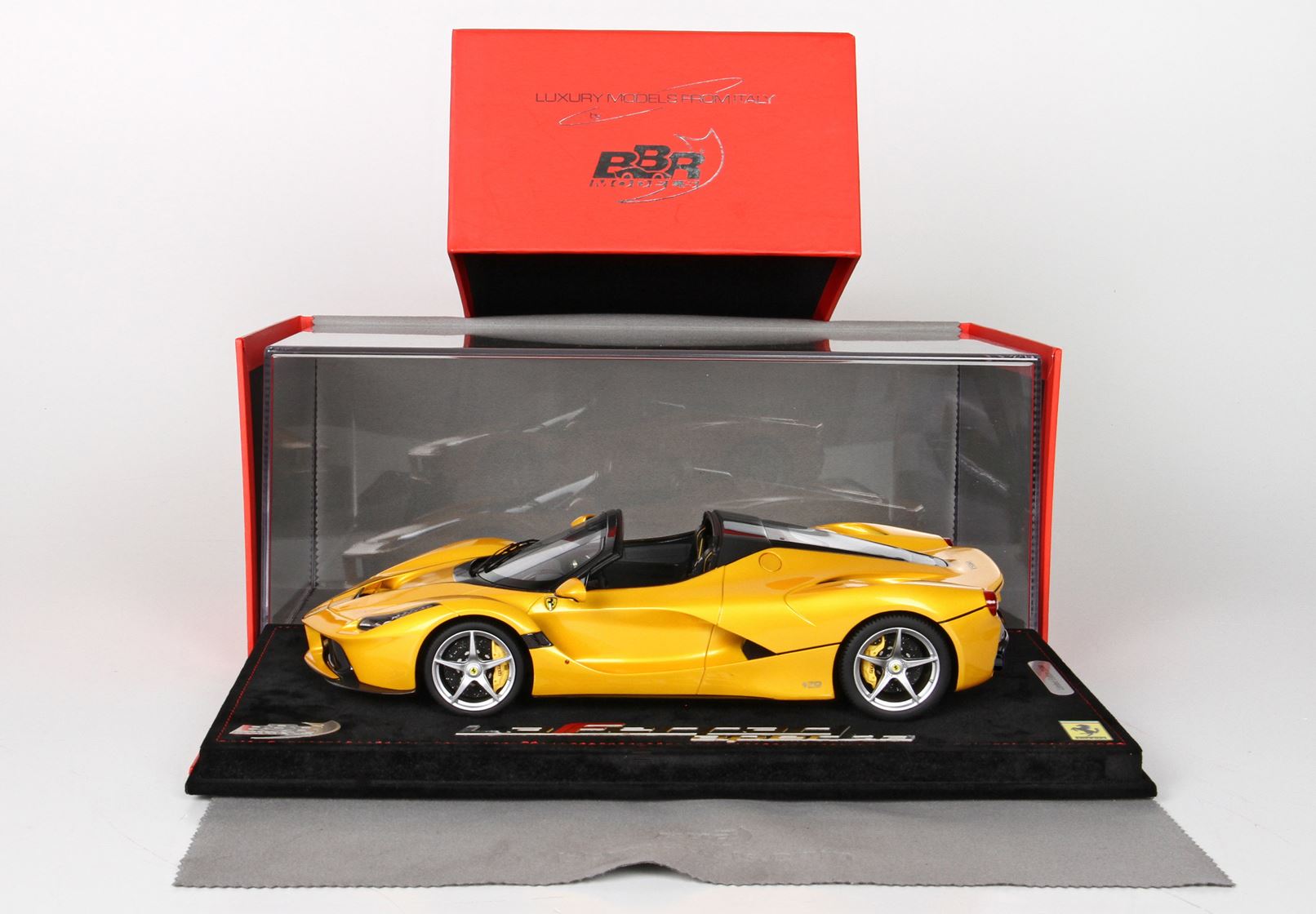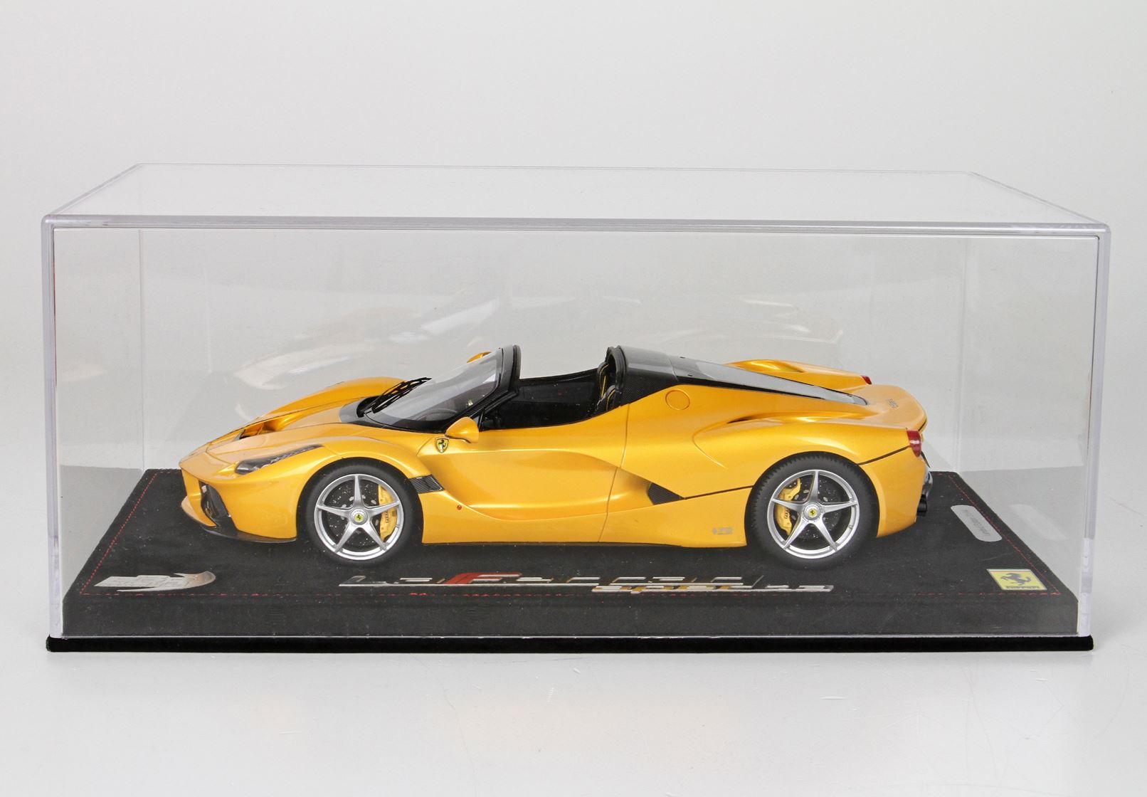 Bellissimo colore giallo tristrato. Serie di soli 20 pezzi venduti su base in alcantara e protetti da vetrina stampata a iniezione in Italia.