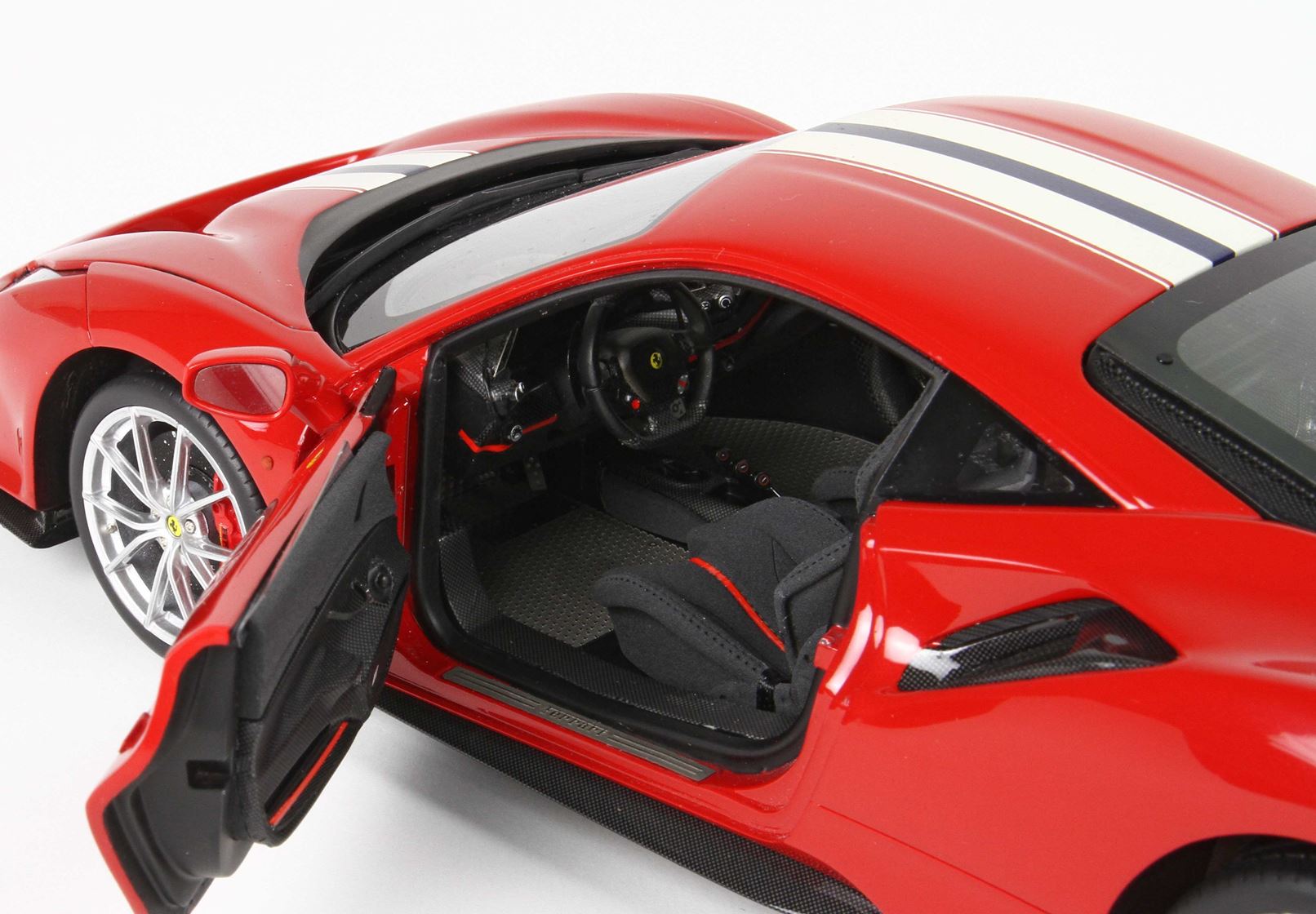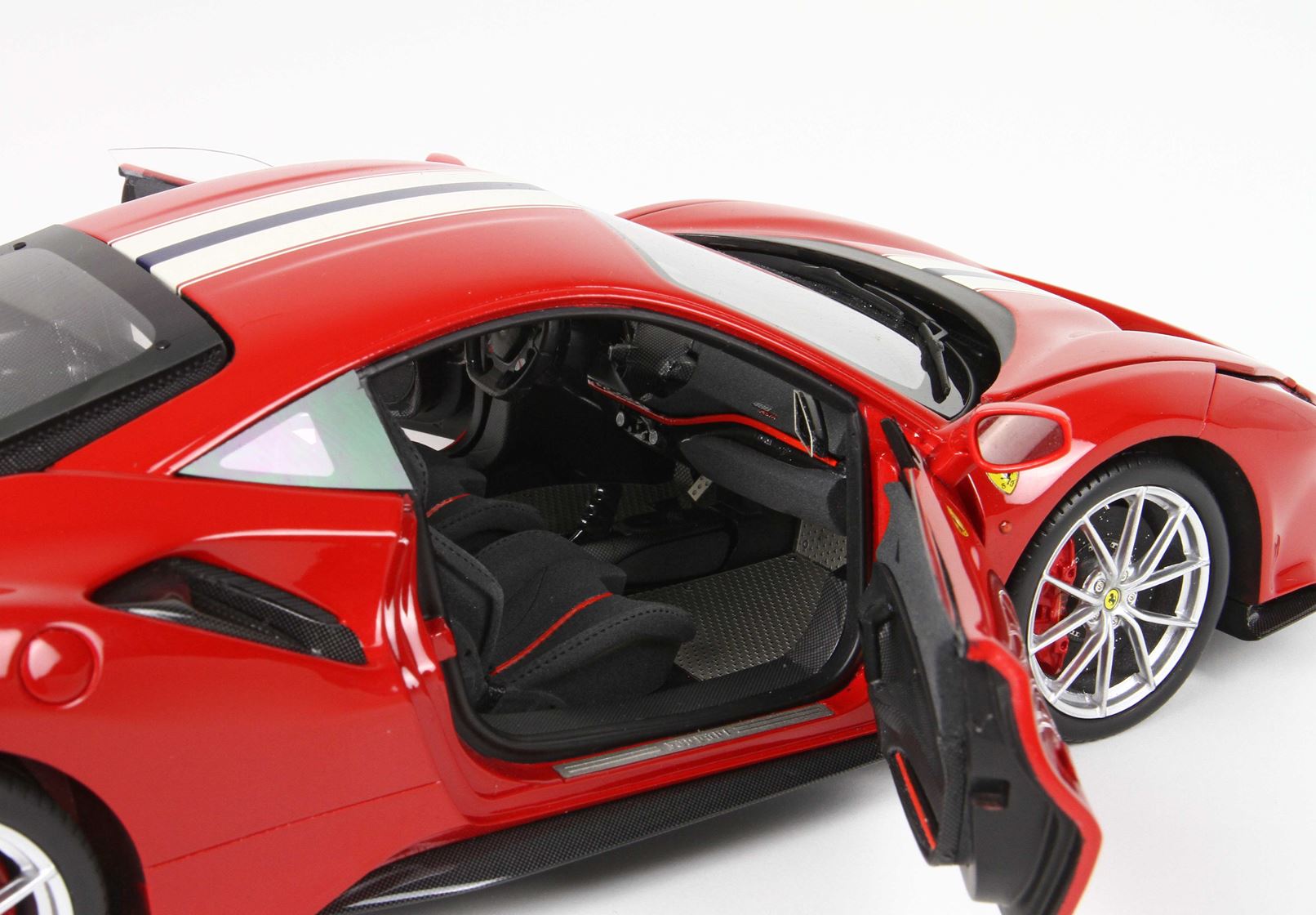 Le prime foto già dimostrano la qualità di questa stupenda 488 Pista, interni super dettagliati con la riproduzione dell’alcantara e tappetini in vero acciaio.