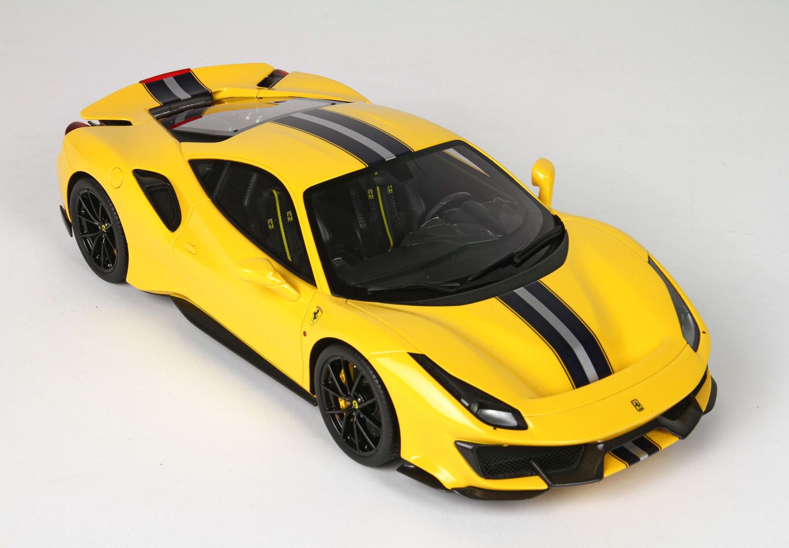 This model car is painted in Modena yellow pencil, with American white and blu stripe.