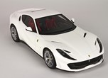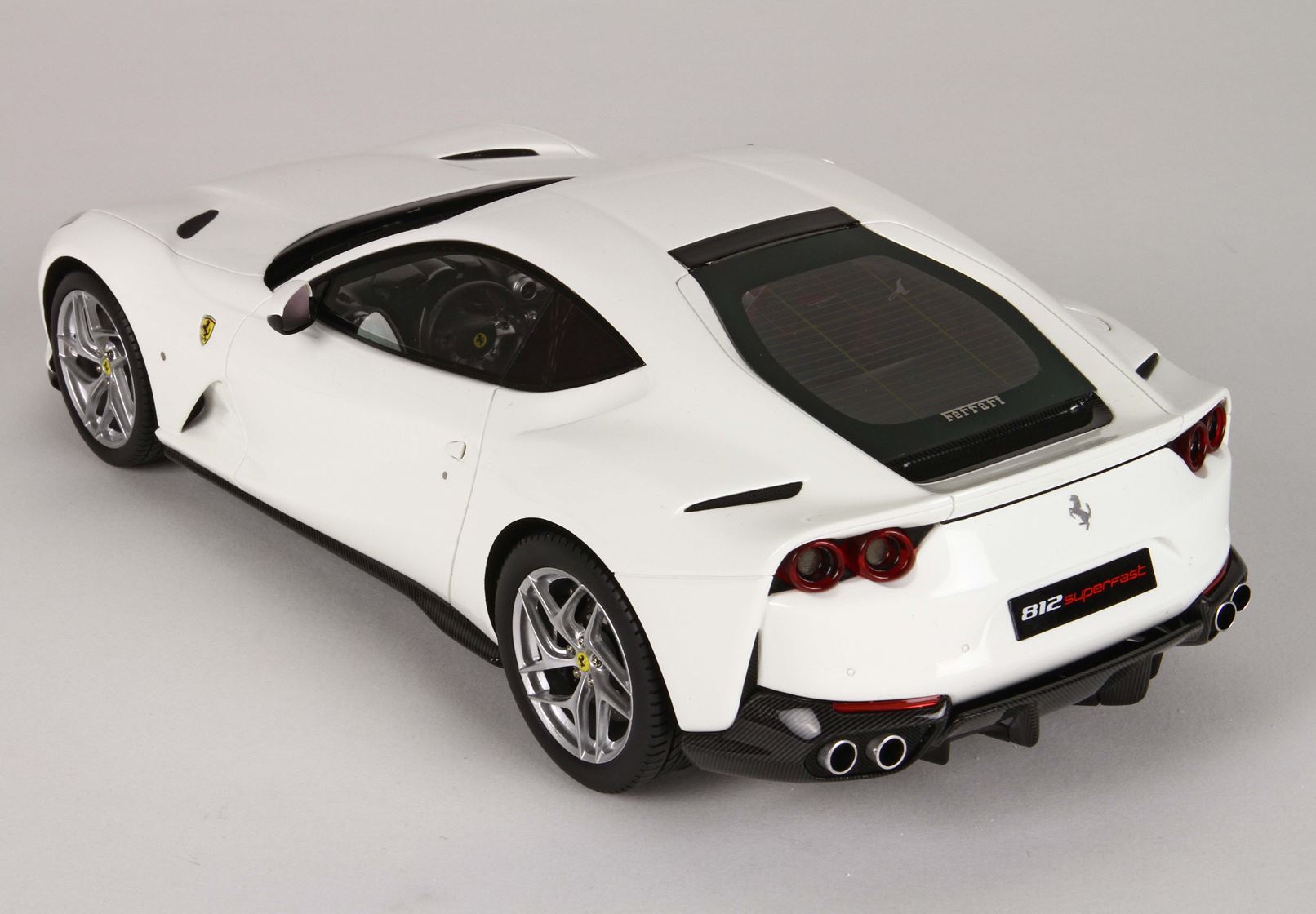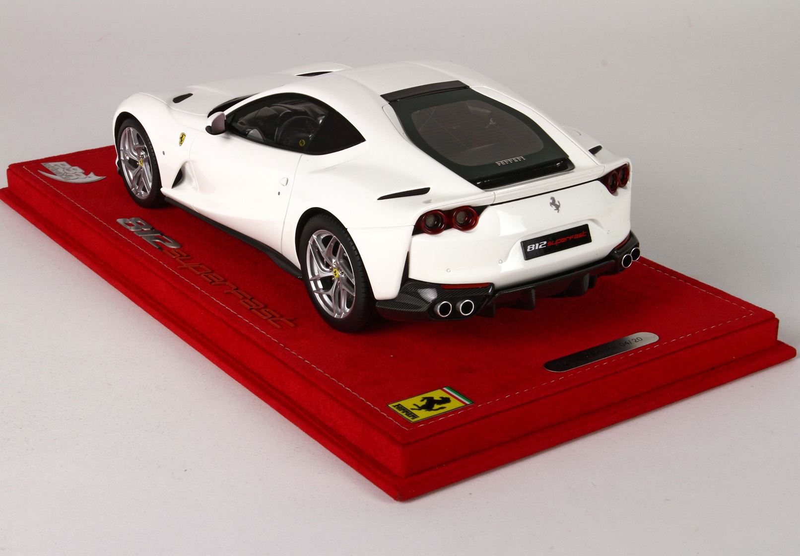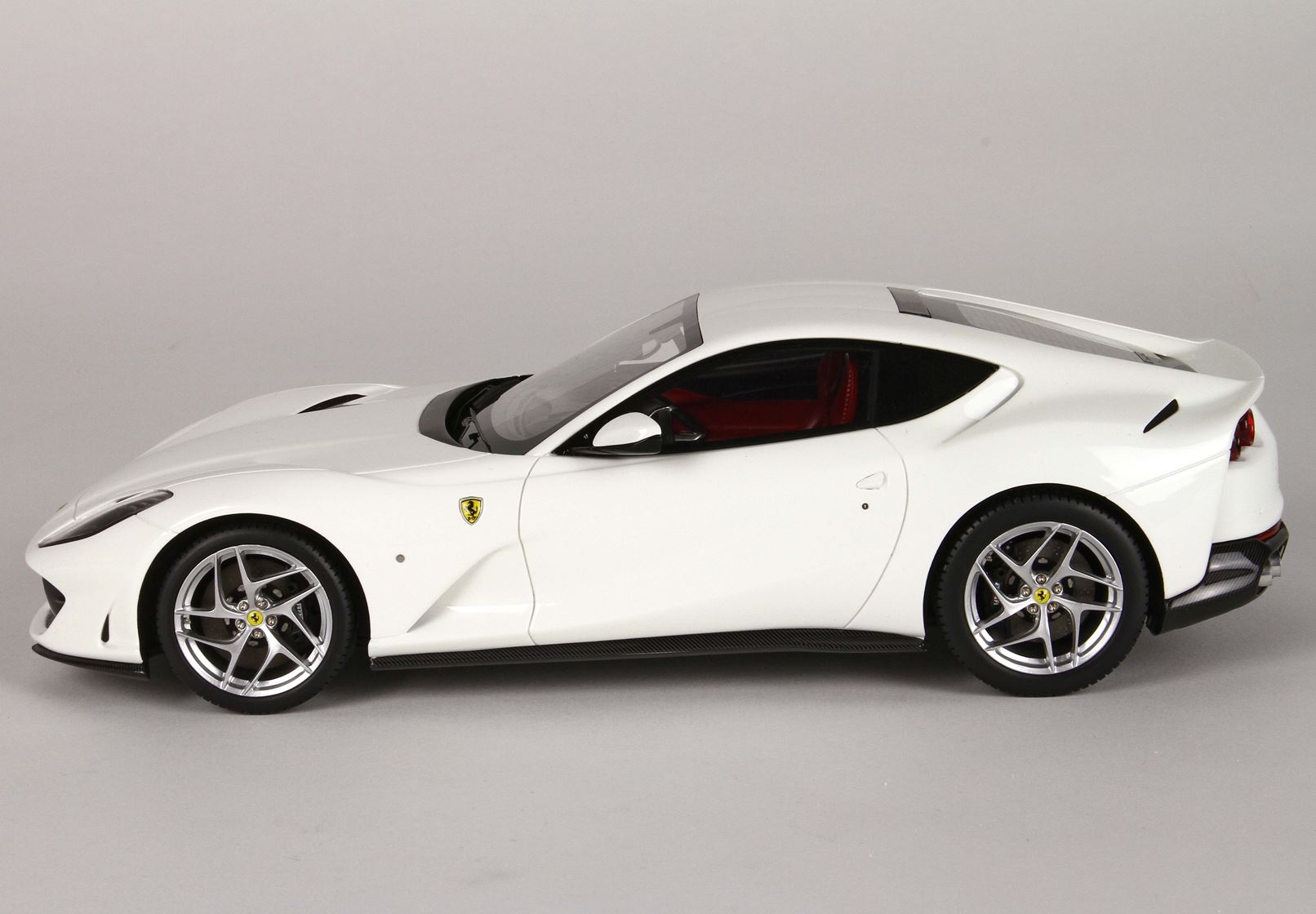 Model car painted in the original Ferrari color avus white, with seats in Cartier red and black hatbox.