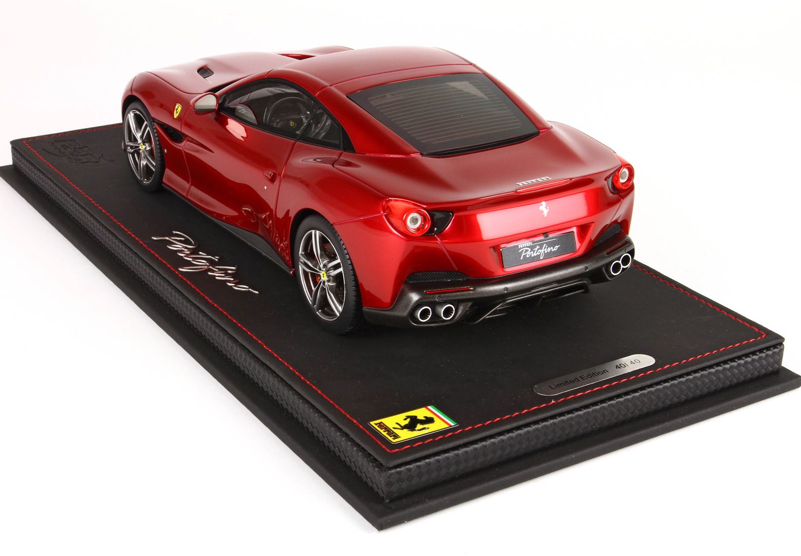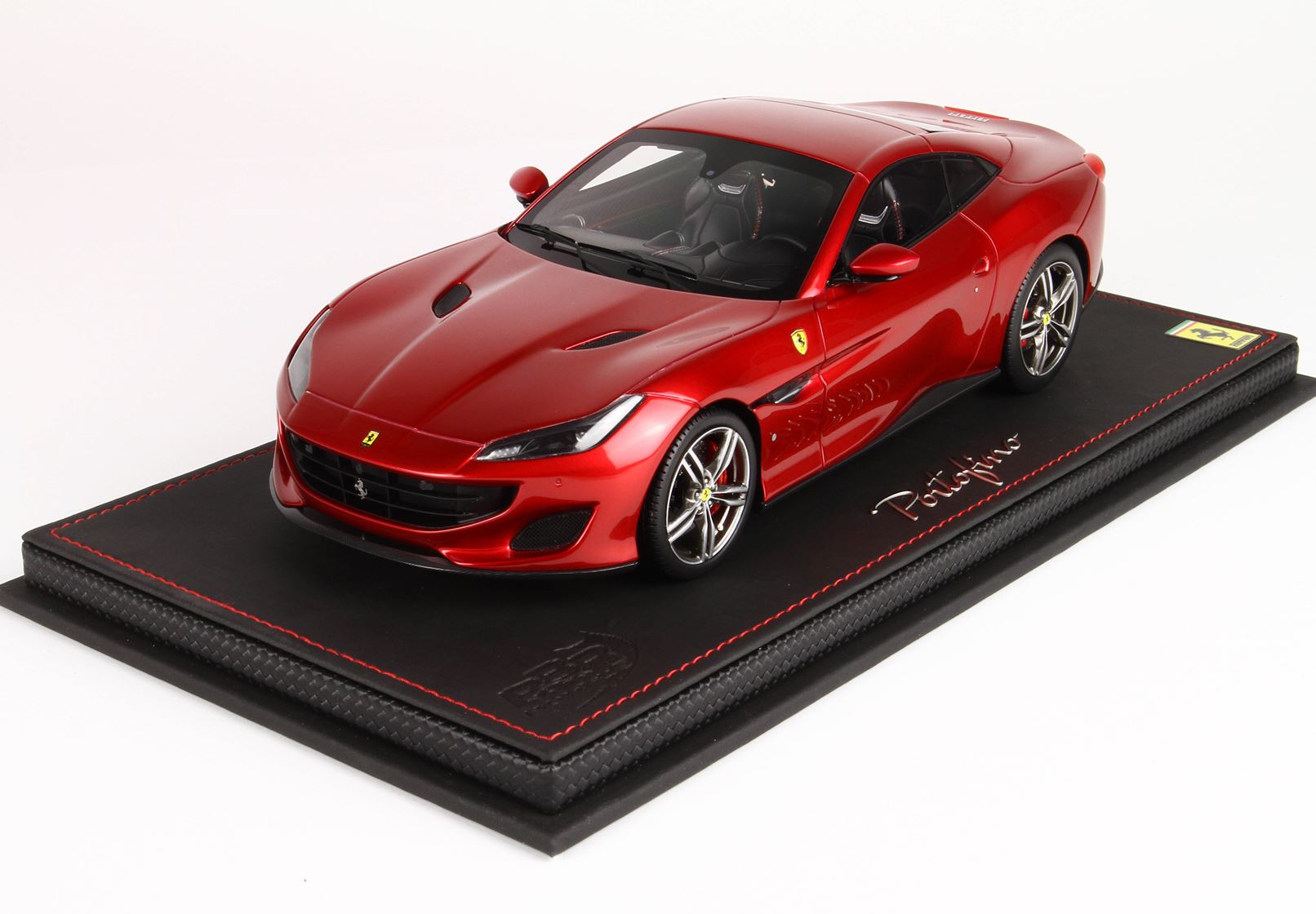Fantastico colore Rosso Fuoco per questa Portofino in scala 1:18, interni in colore nero con speciale decals che riproduce le cuciture rosse dei sedili e cruscotto .