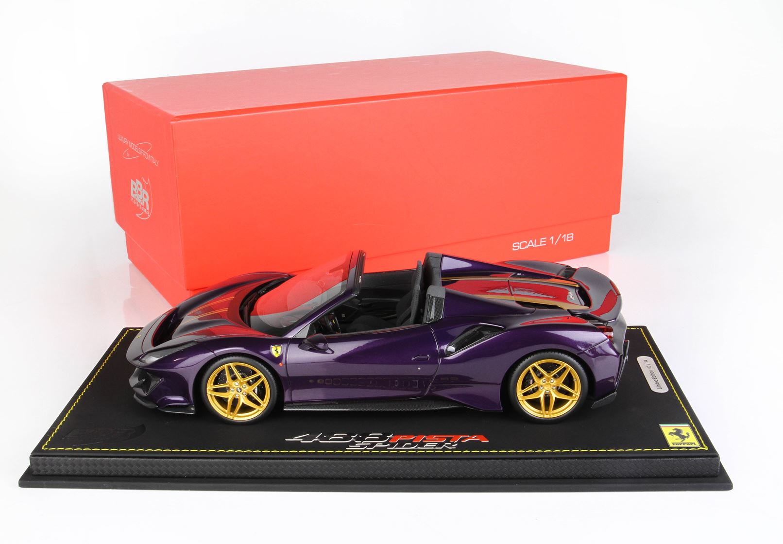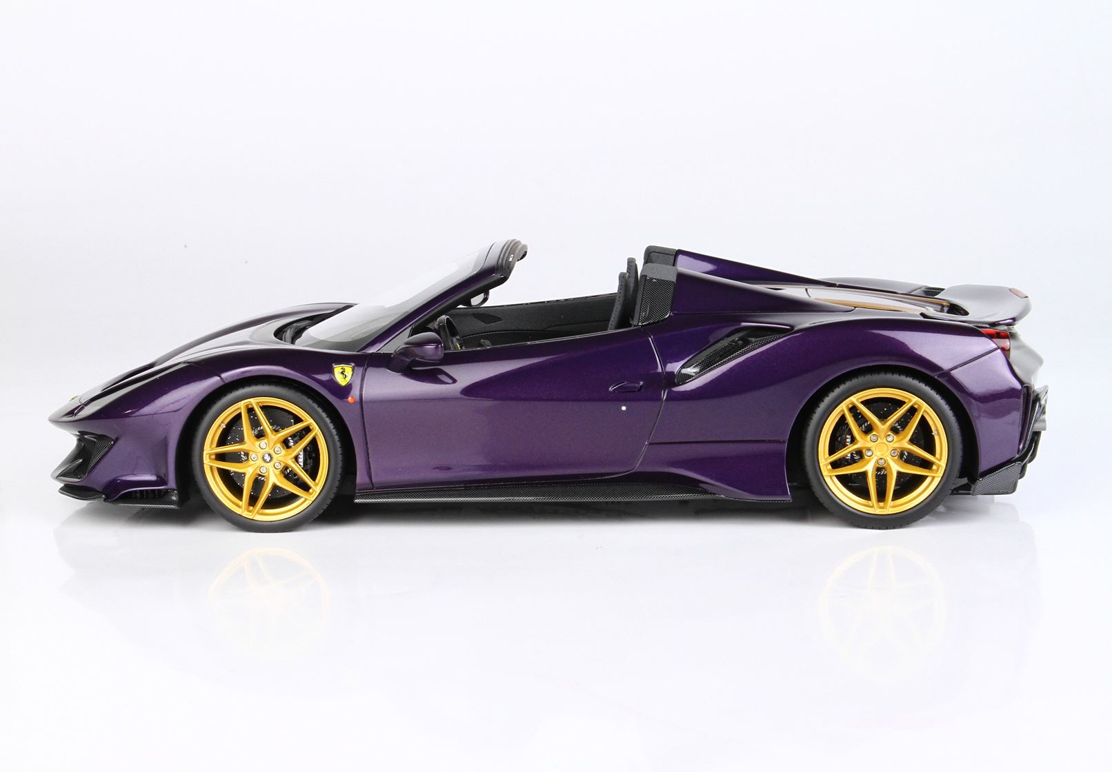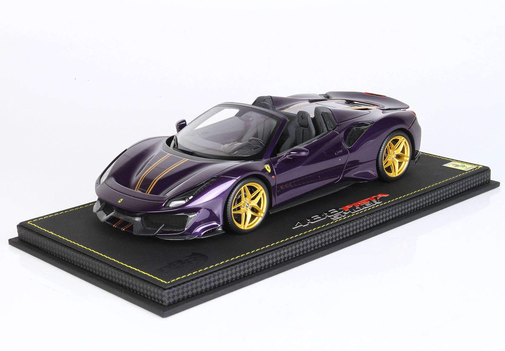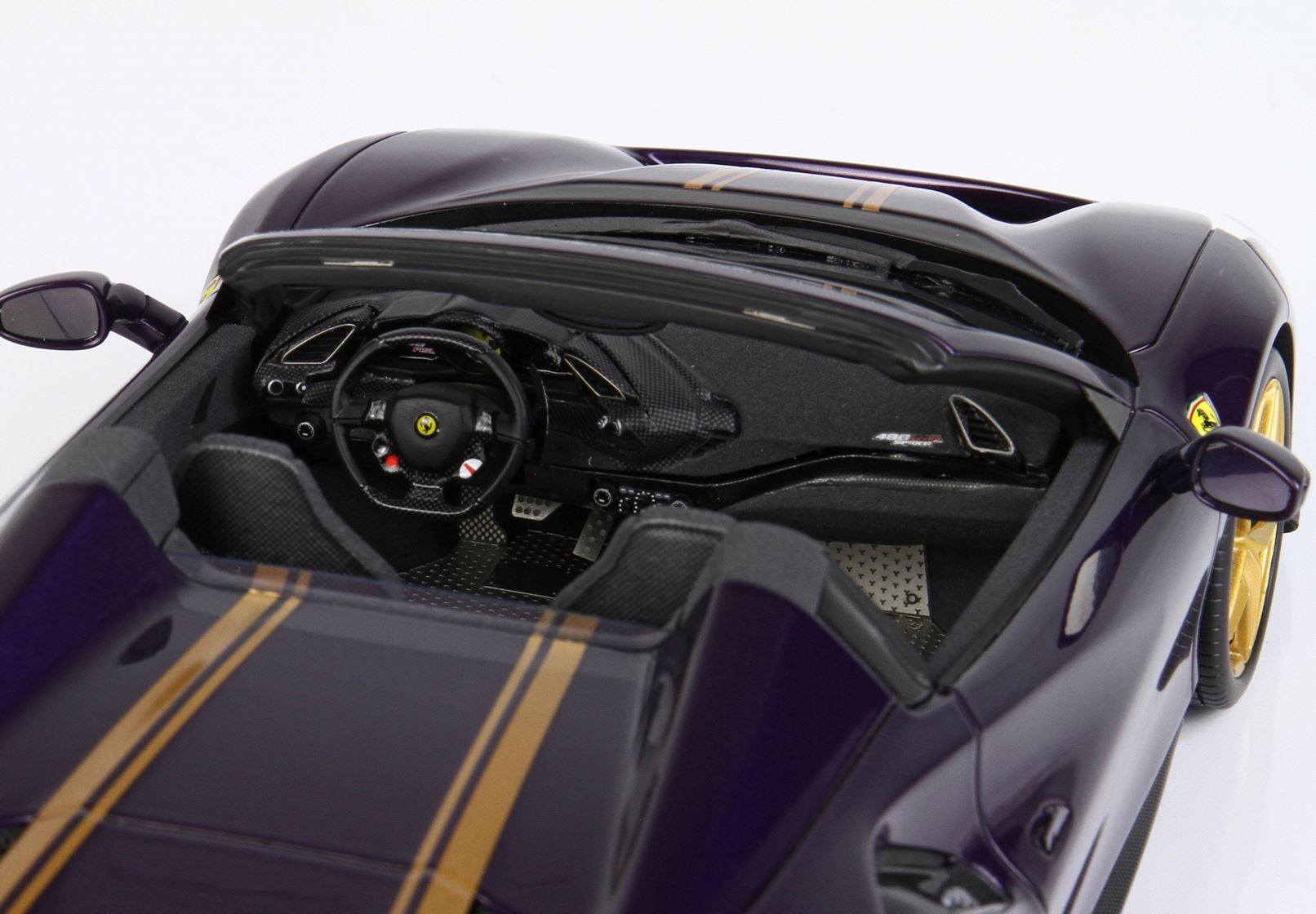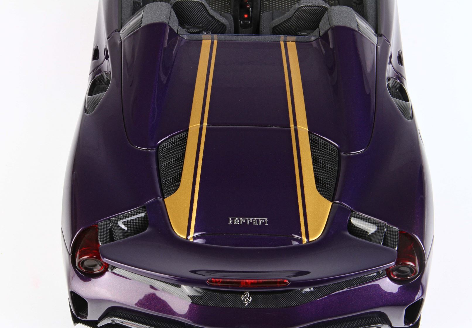 Questo automodello è in colore Viola Hong Kong metallizzato, da notare le strisce e cerchioni oro metallizzato.