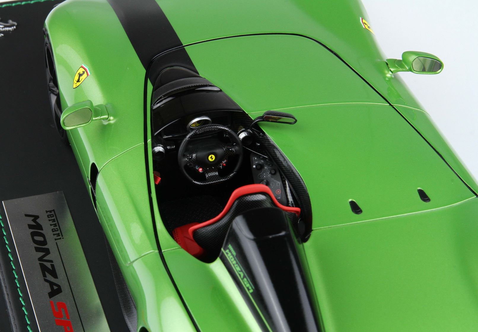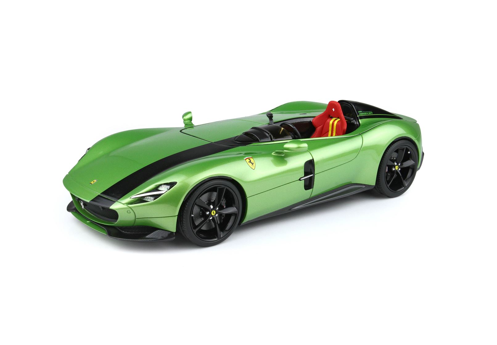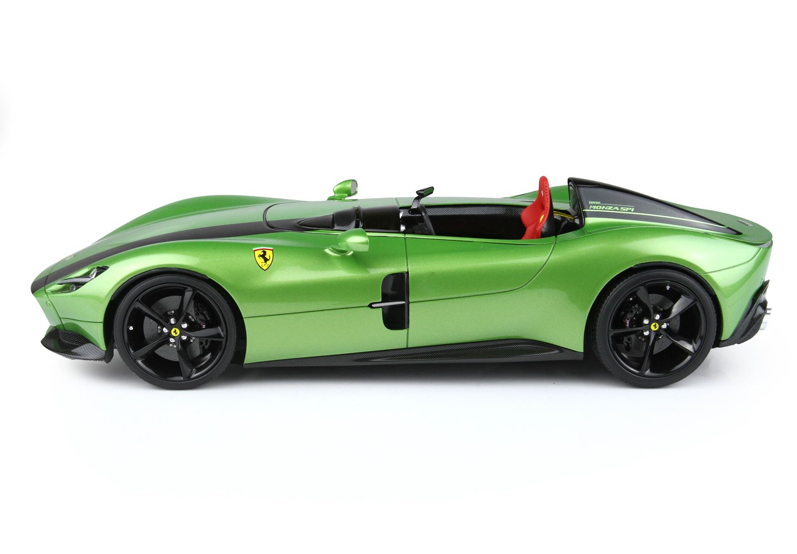 The “post-modern” look of the Monza SP1 offers a sinuous effect and introduces an innovative idea of ​​lighting: the side lights and brake lights have been redesigned as a single, continuous “line of light”, entirely integrated into the thin gap separating the two upper and lower body shells.