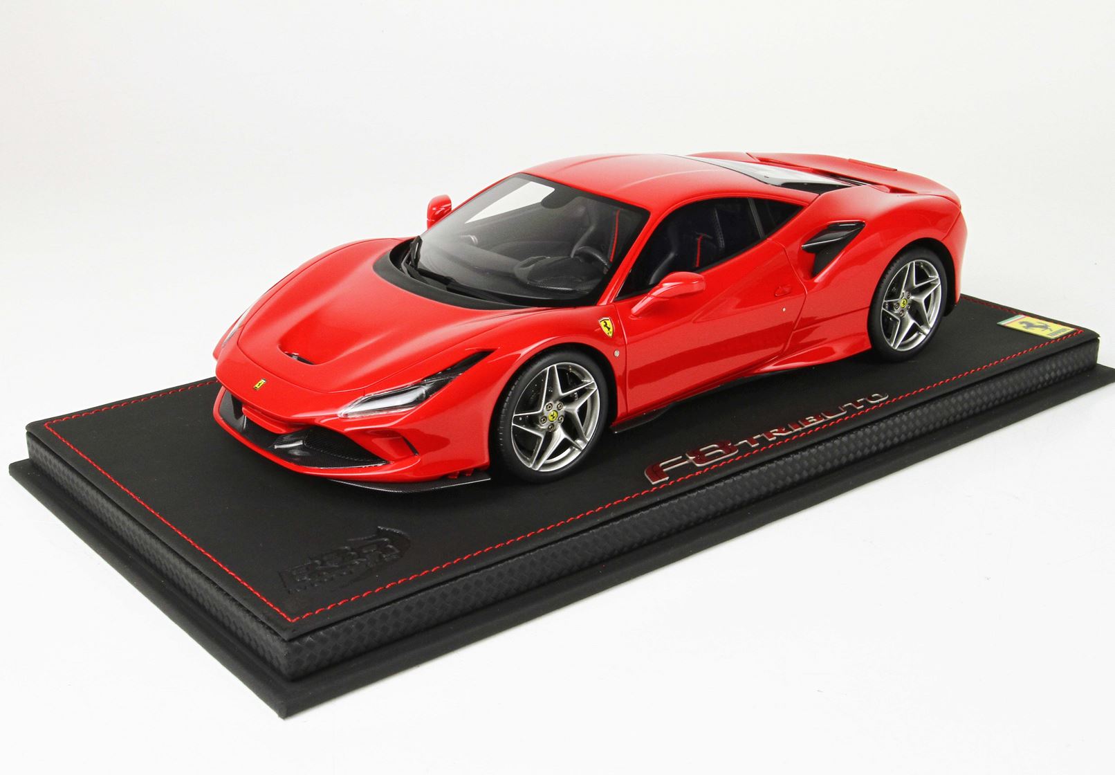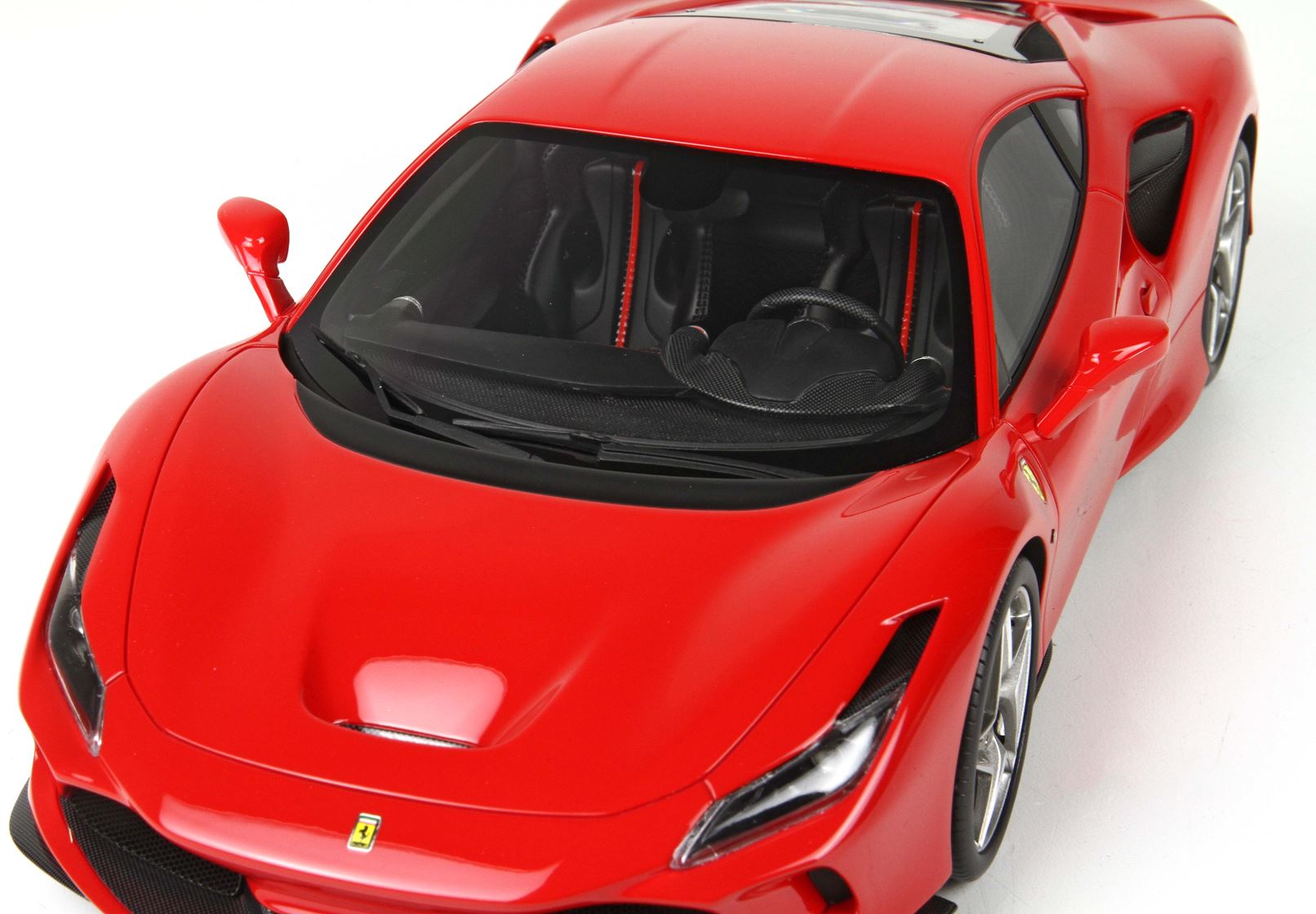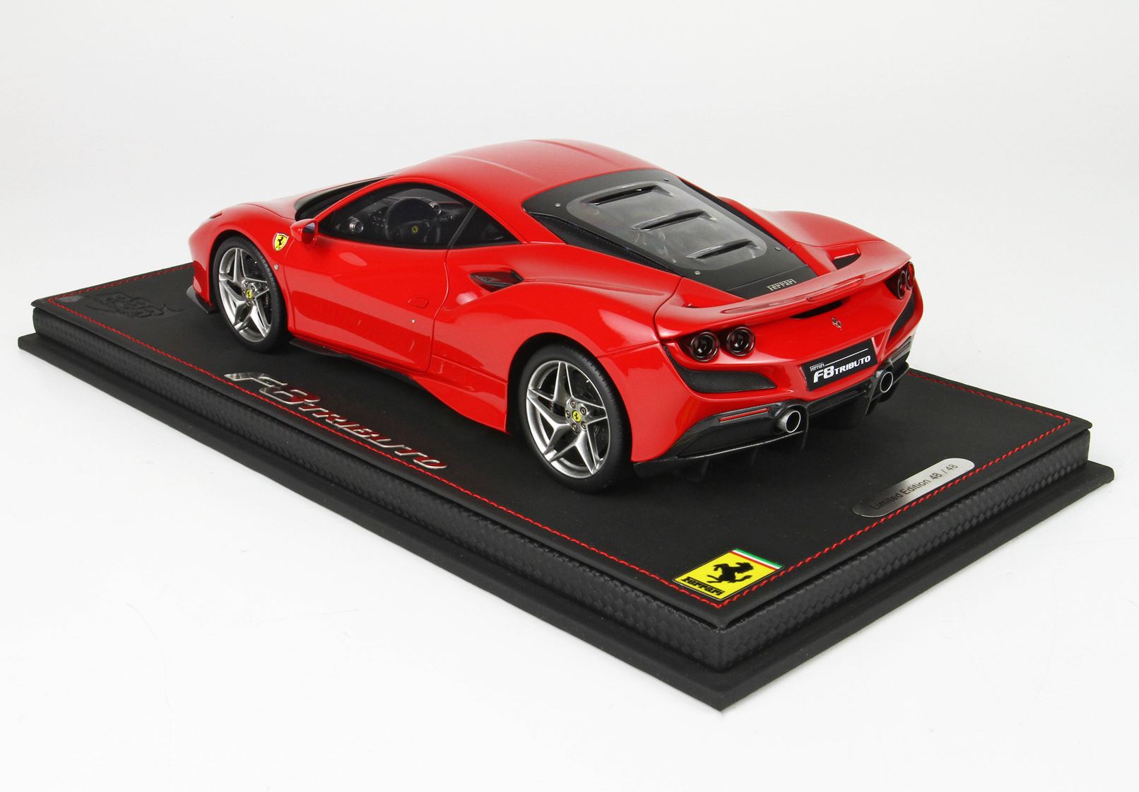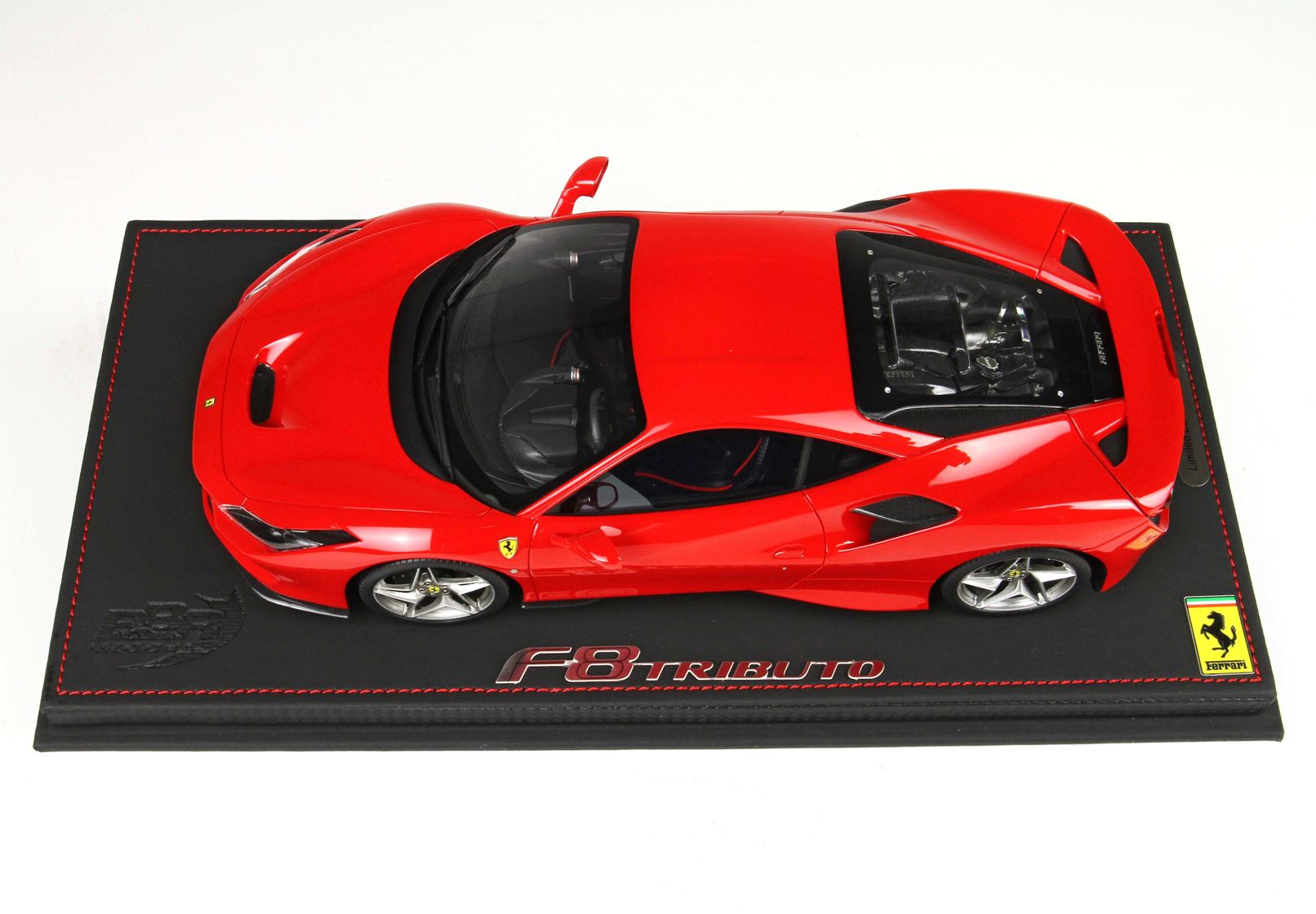 Ruote diamantate, interni nero opaco, cover motore in replica di fibra carbonio, logo F8 Tributo in acciaio e base in ecopelle.
