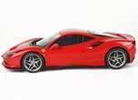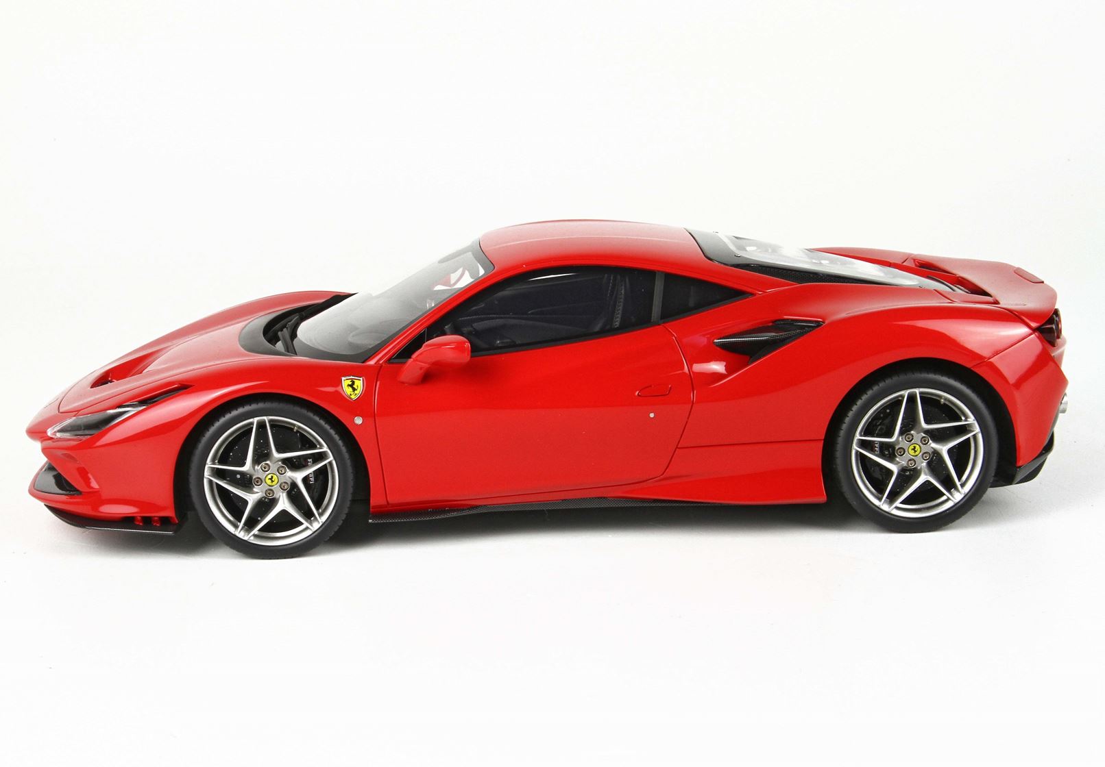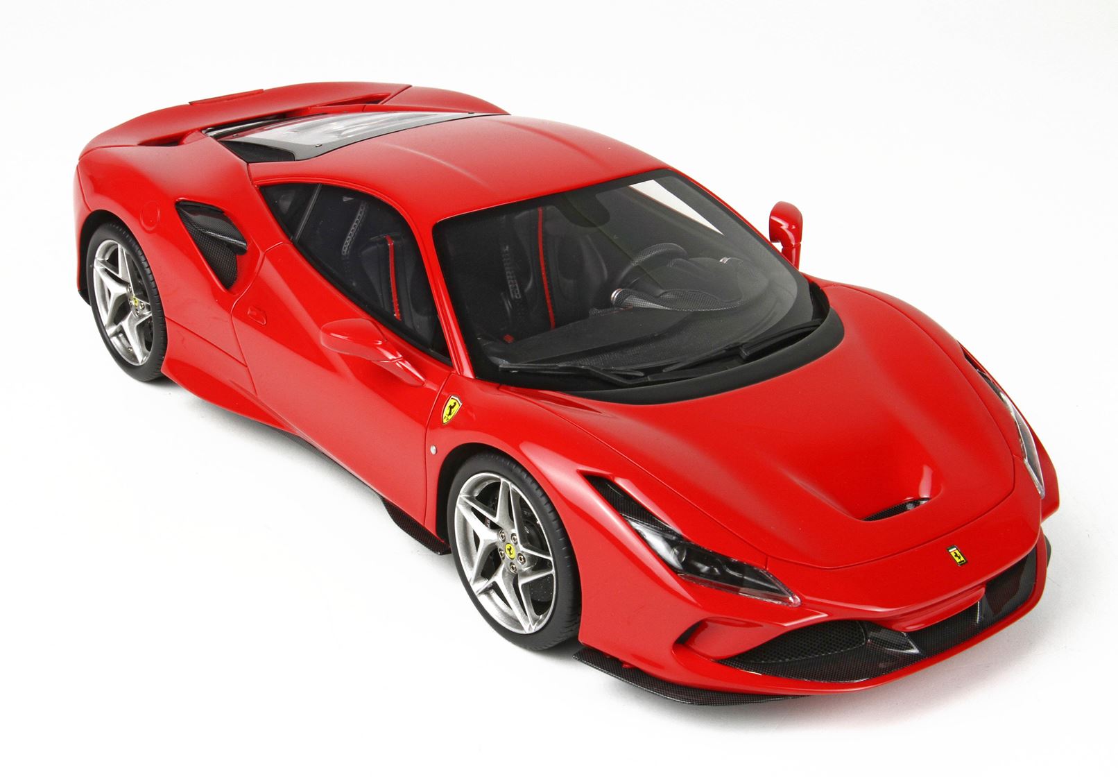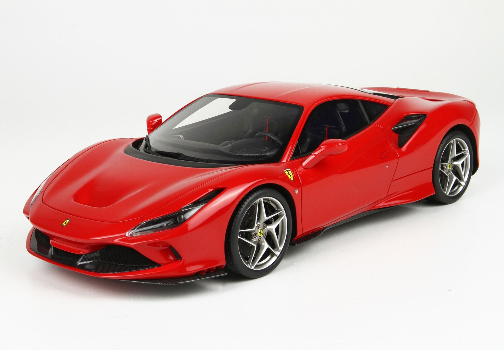 Ruote diamantate, interni nero opaco, cover motore in replica di fibra carbonio, logo F8 Tributo in acciaio e base in ecopelle.