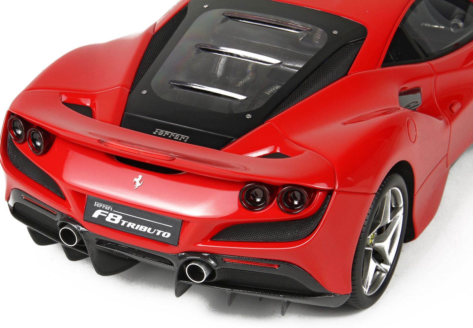 Vi segnaliamo un'innovazione sugli scudetti Ferrari presenti sul modello, che ora sono fedelmente riprodotti con la cromatura esterna: fedeli e uguali all'originale, ma in scala 1:18.