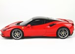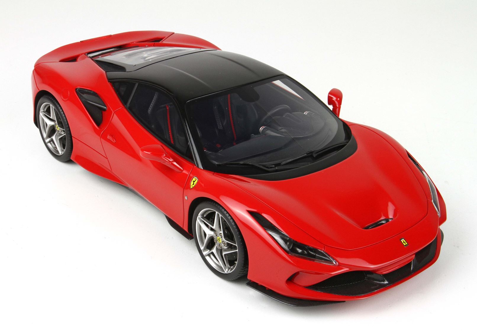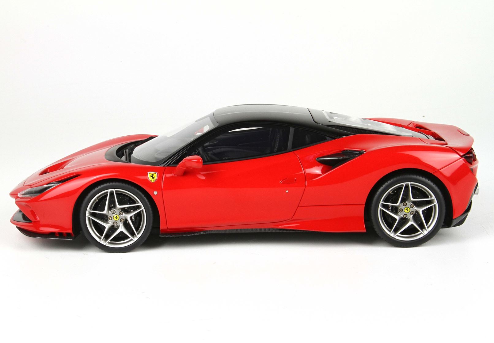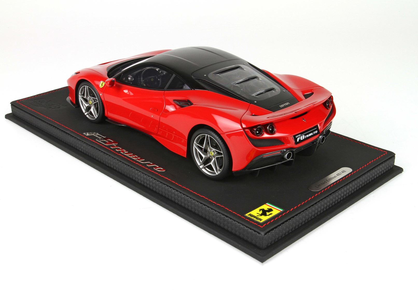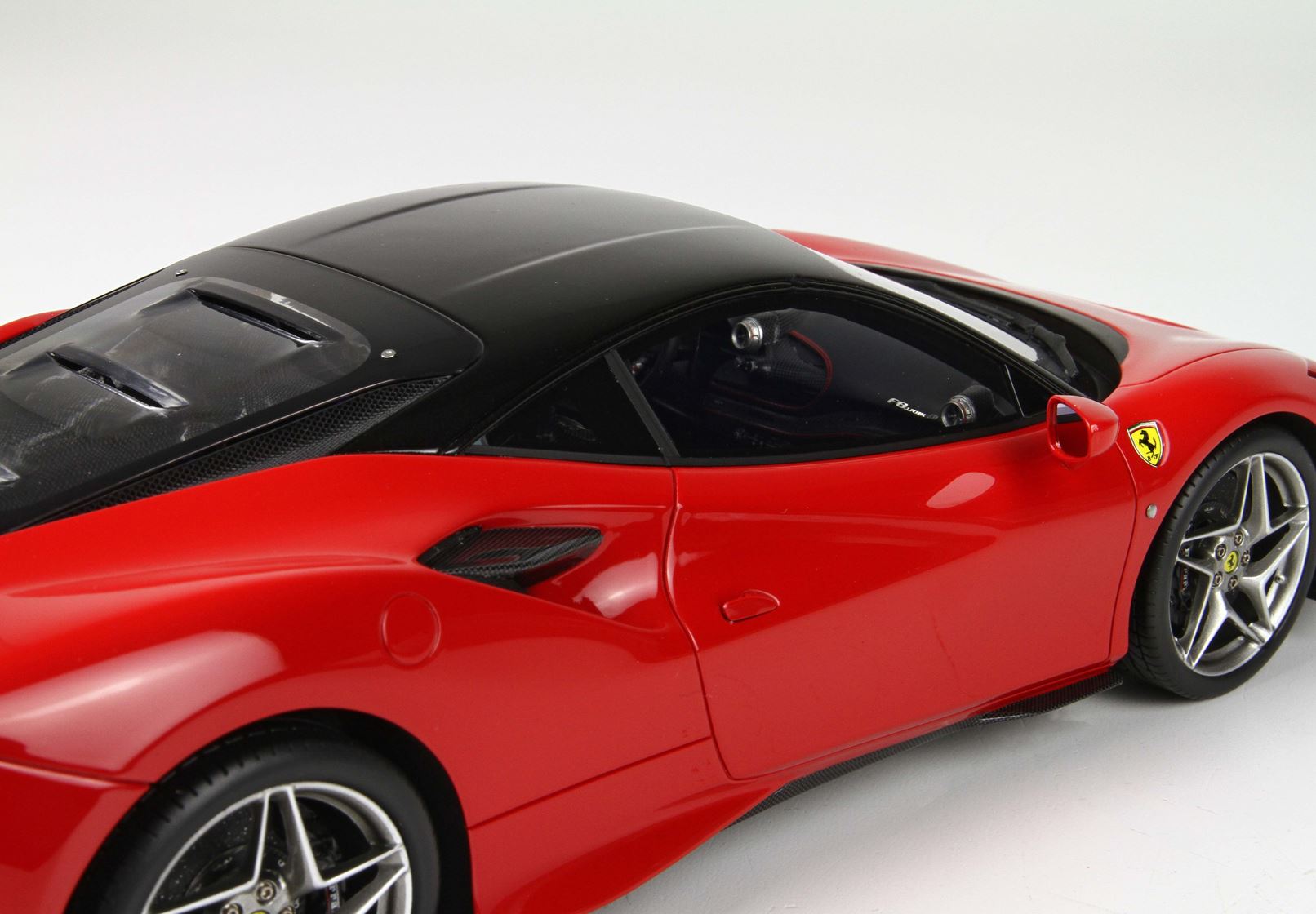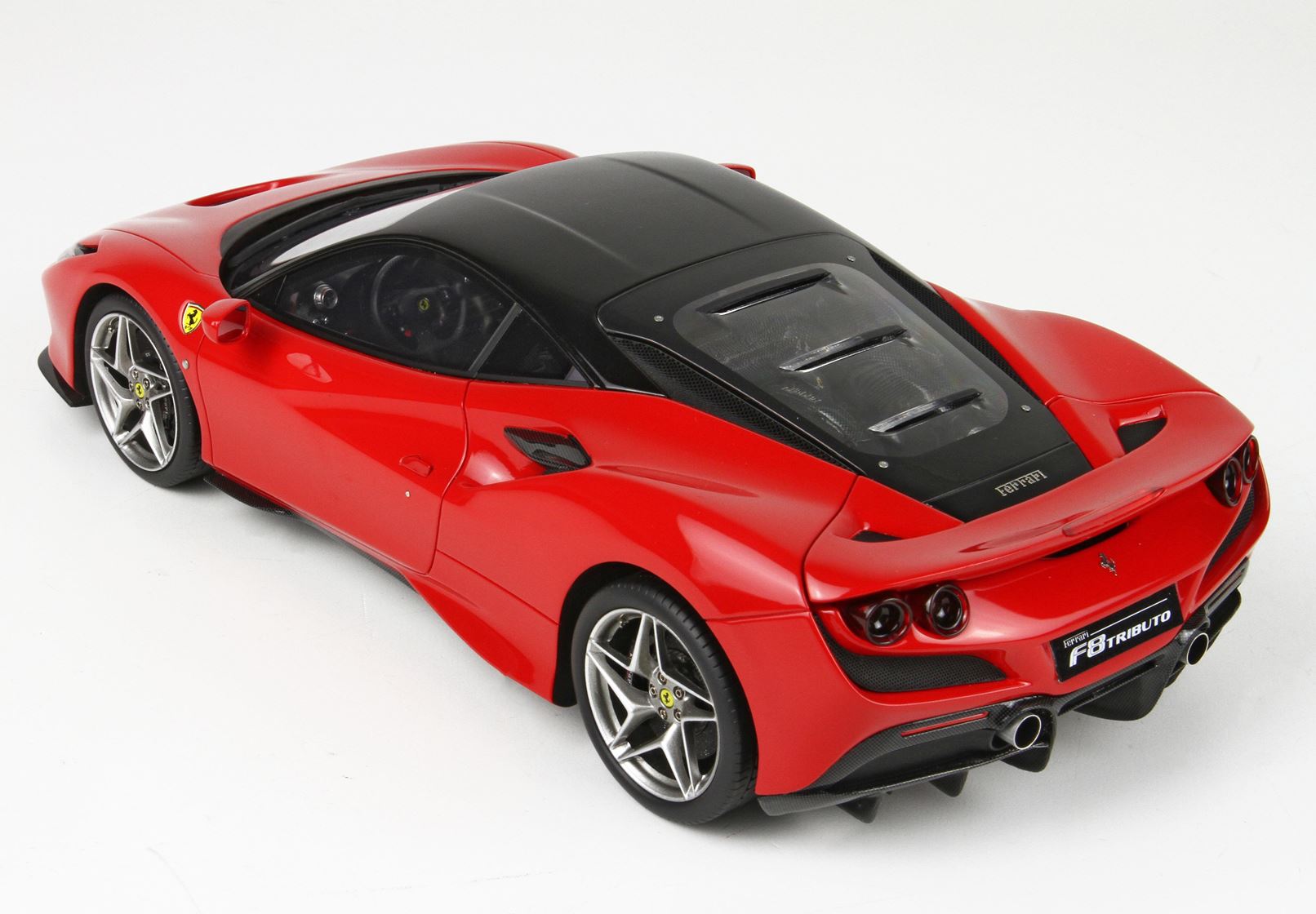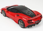 Diamond shaped wheels, matt black interiors, carbon fiber replica for the engine cover, F8 Tributo logo in steel and eco-leather base.