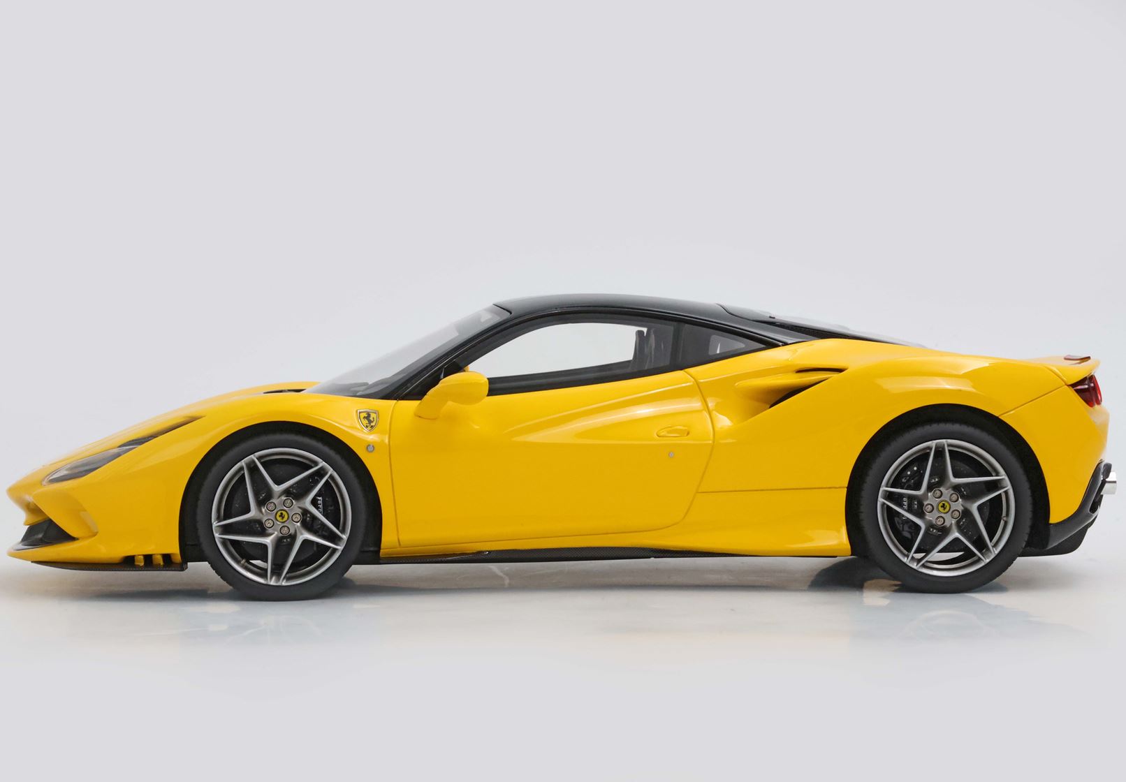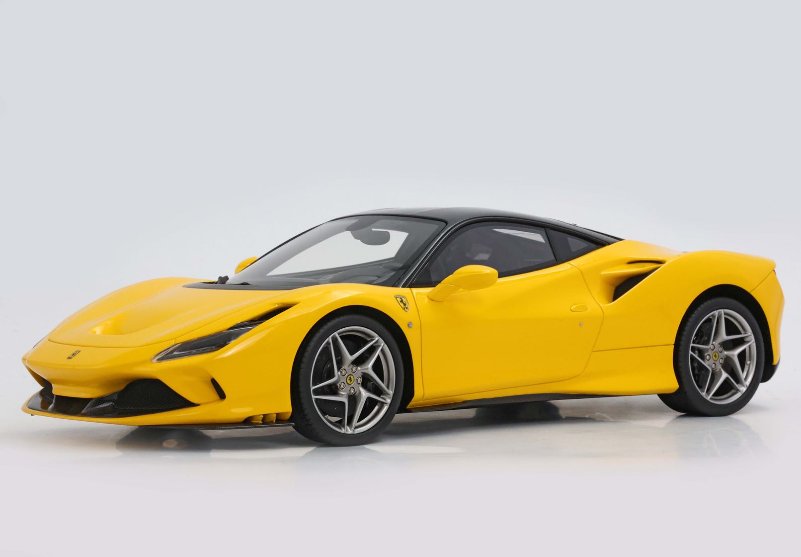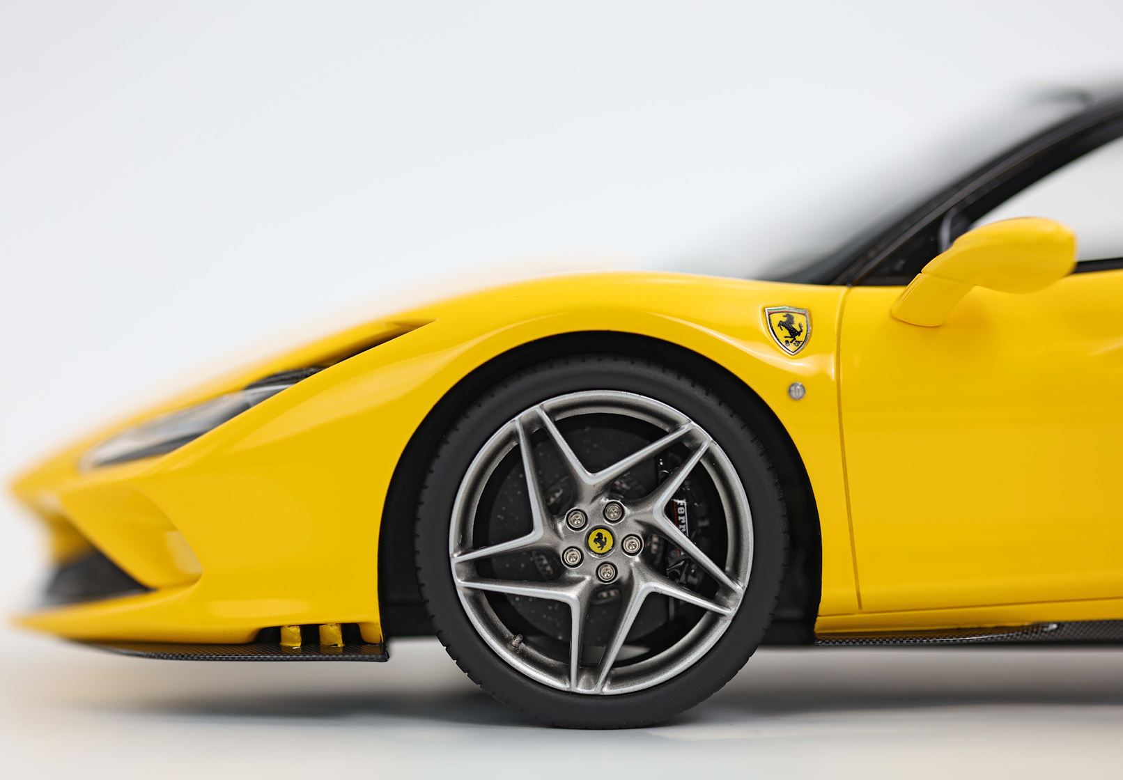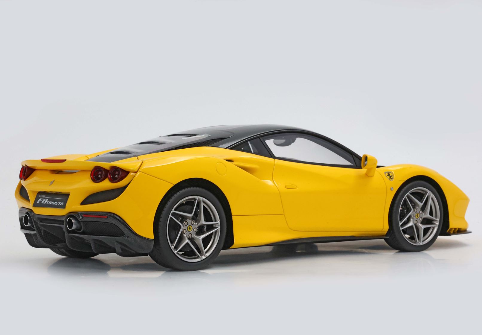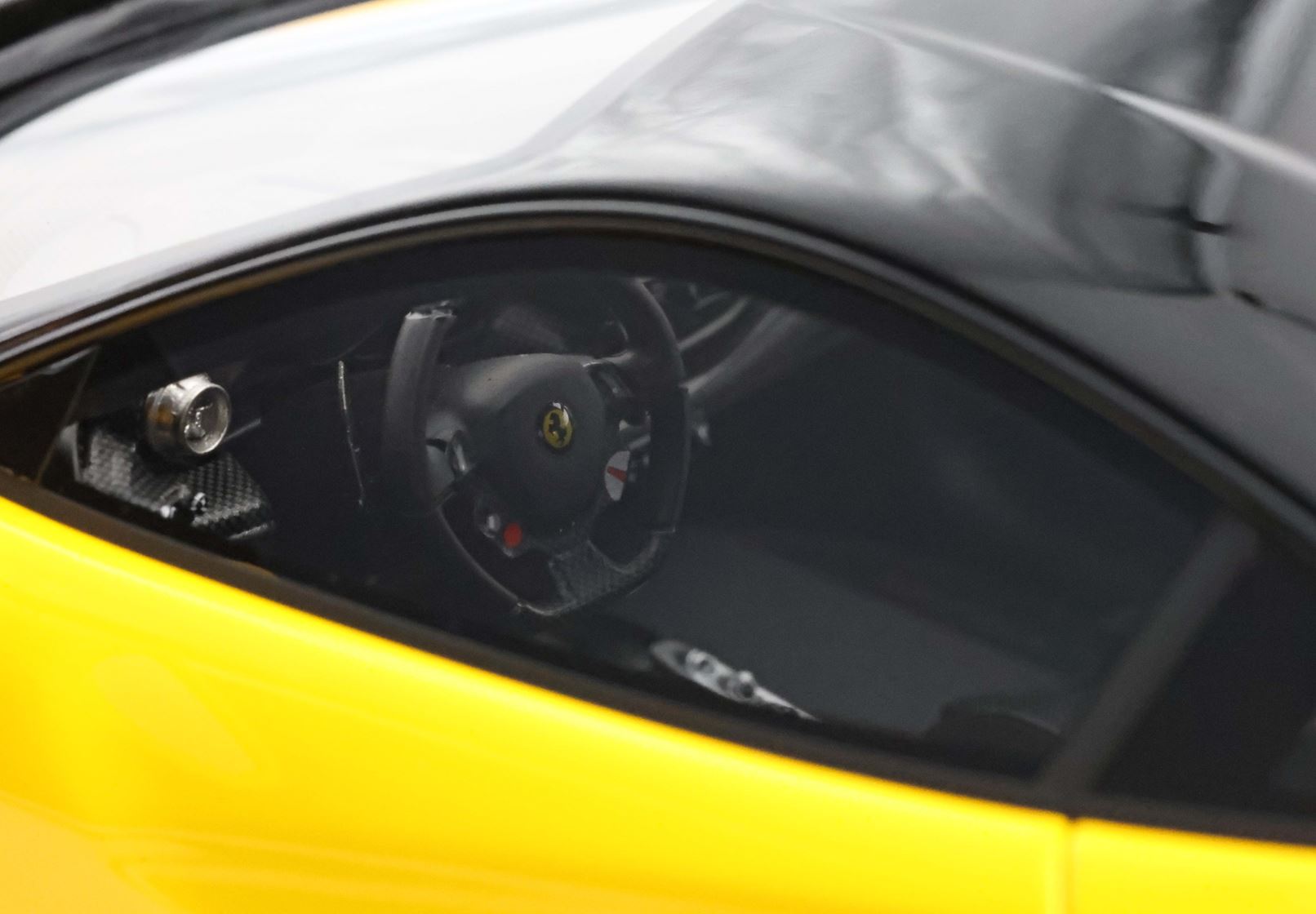 Vi segnaliamo un'innovazione sugli scudetti Ferrari presenti sul modello, che ora sono fedelmente riprodotti con la cromatura esterna: fedeli e uguali all'originale, ma in scala 1:18.