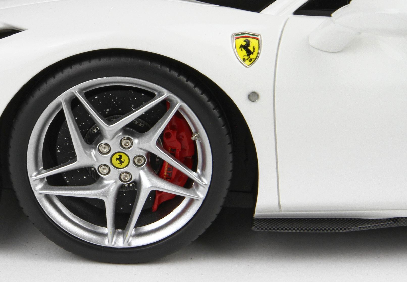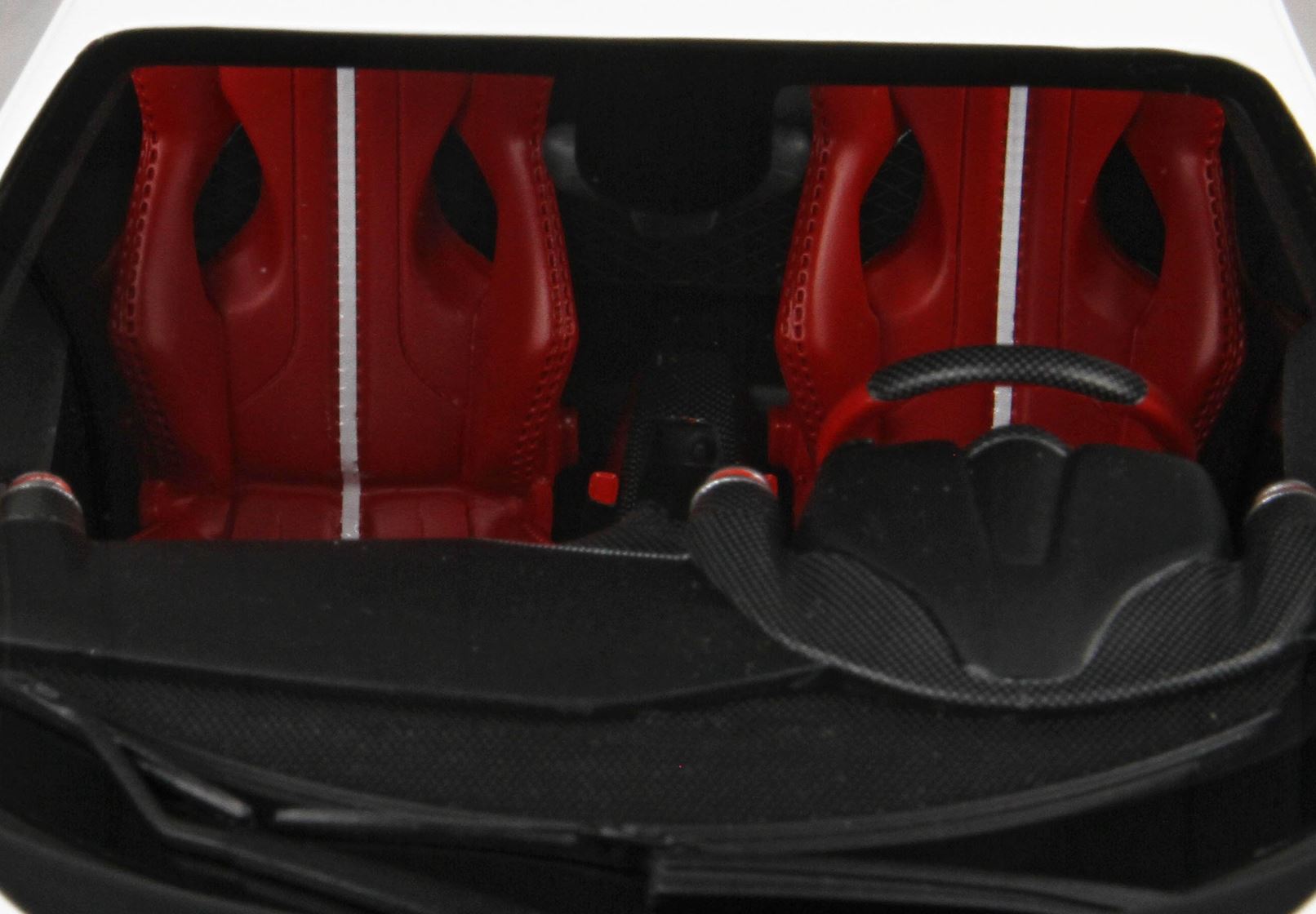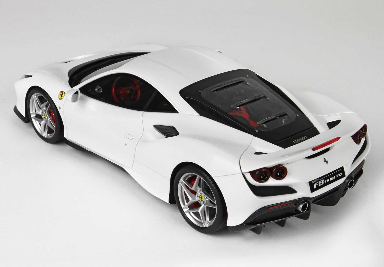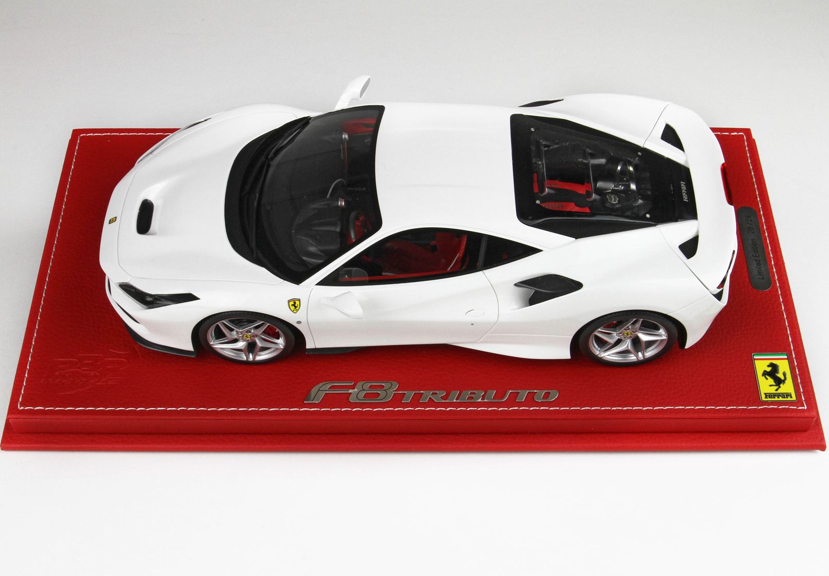 Il motore è fedelmente replicato con particolare vernice rossa , tutta la parte del motore è rivestita con decals fibra carbonio.