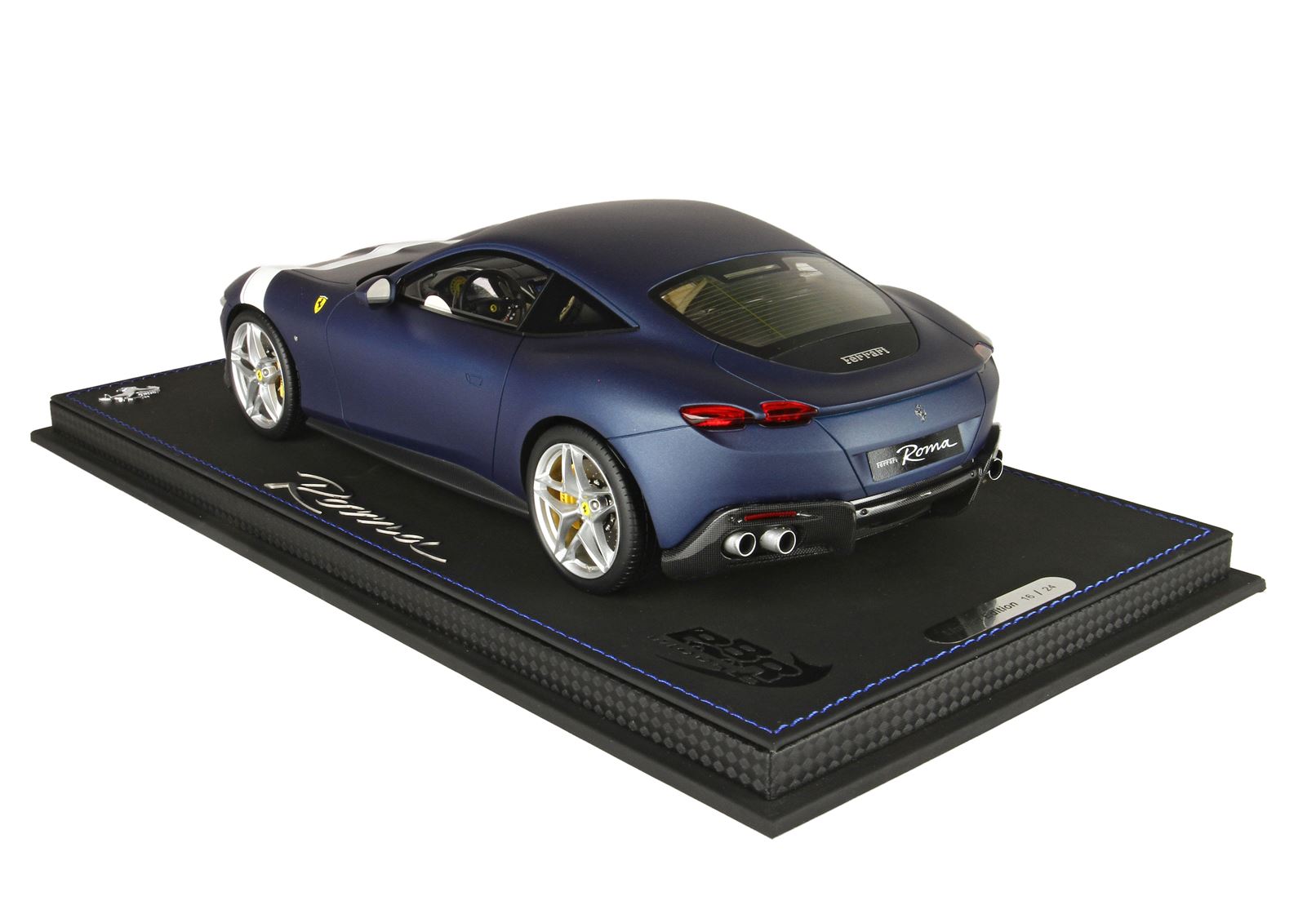 Handmade faux leather base with Roma logo in steel.