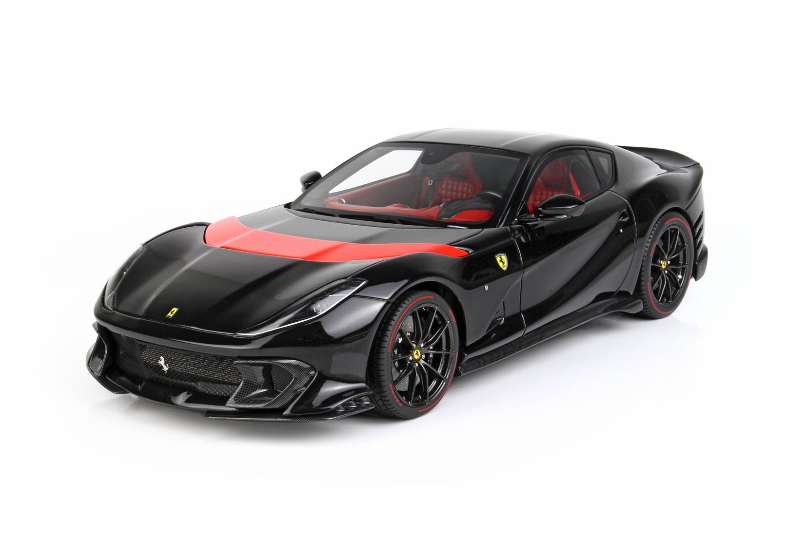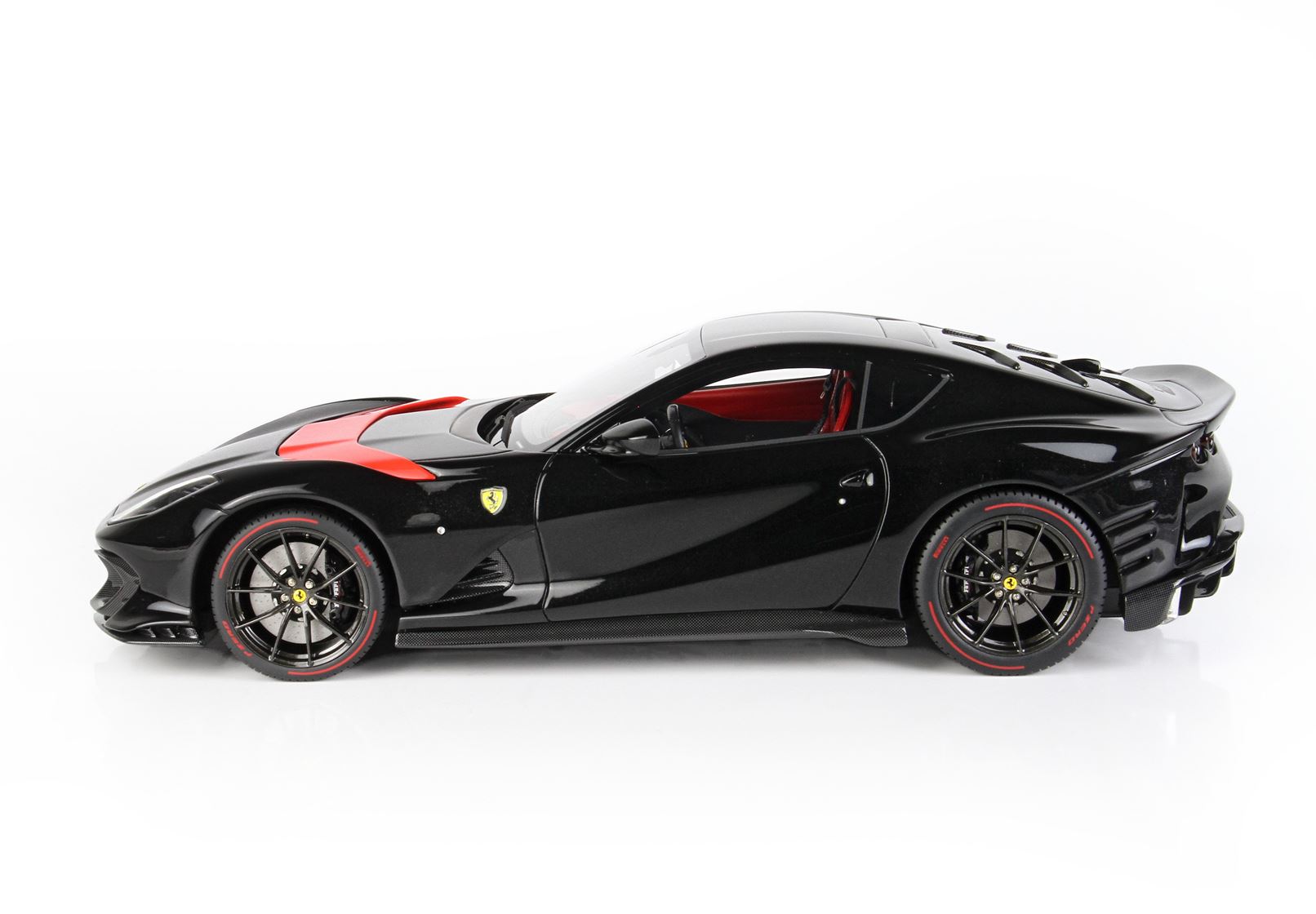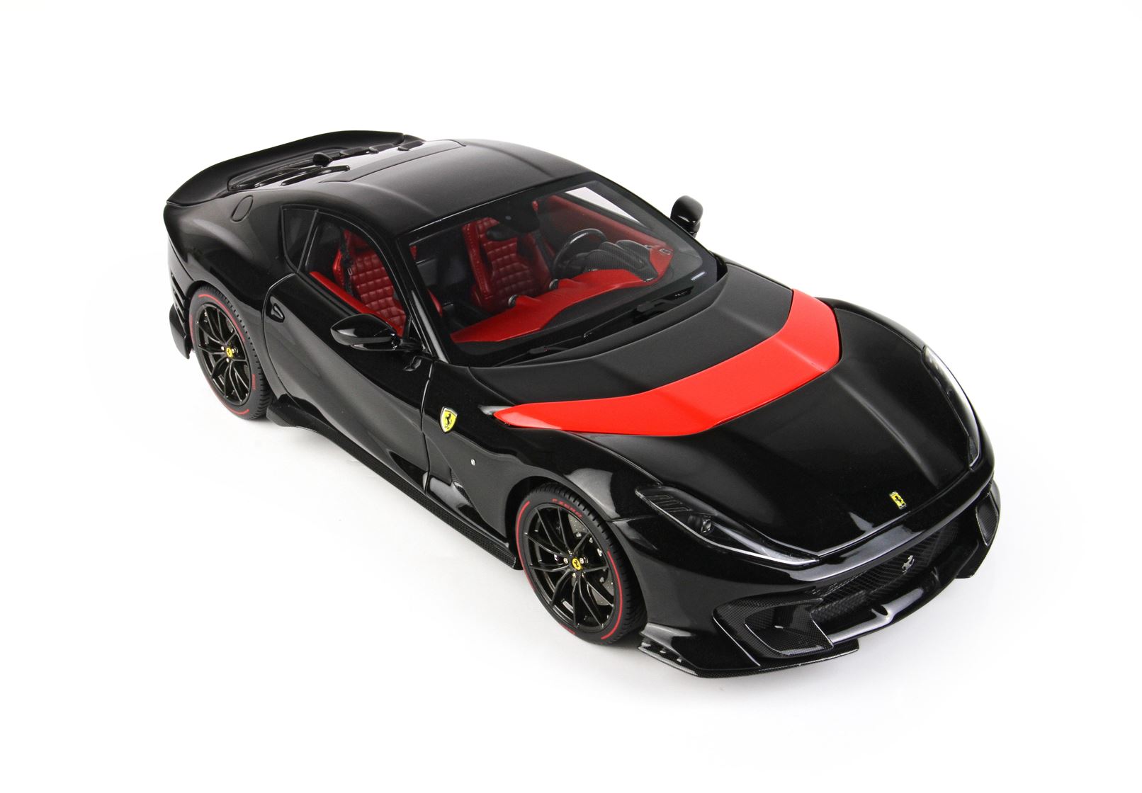 A completare il modello, la base rossa con impunture nere che riporta il logo 812 Competizione ed il cavallino Ferrari