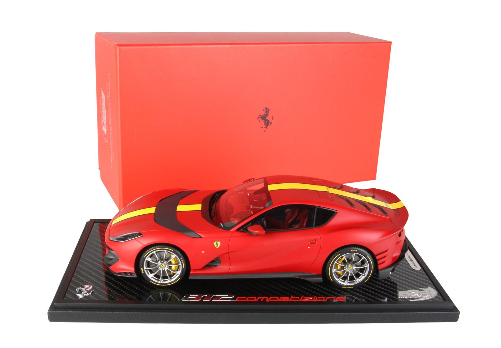 To complete the model, the amazing real carbon fiber base bearing the 812 Competizione logo and the Ferrari horse.