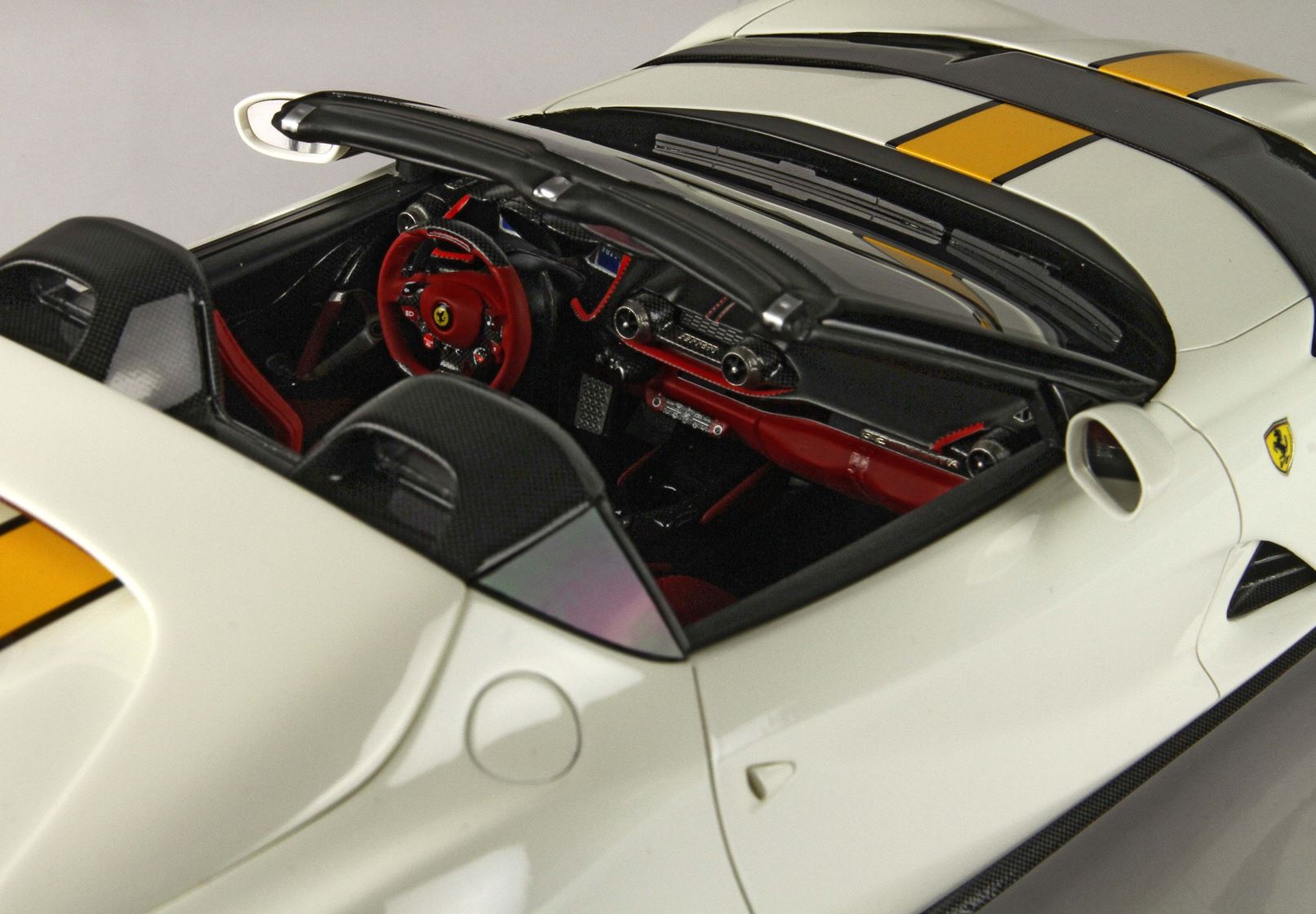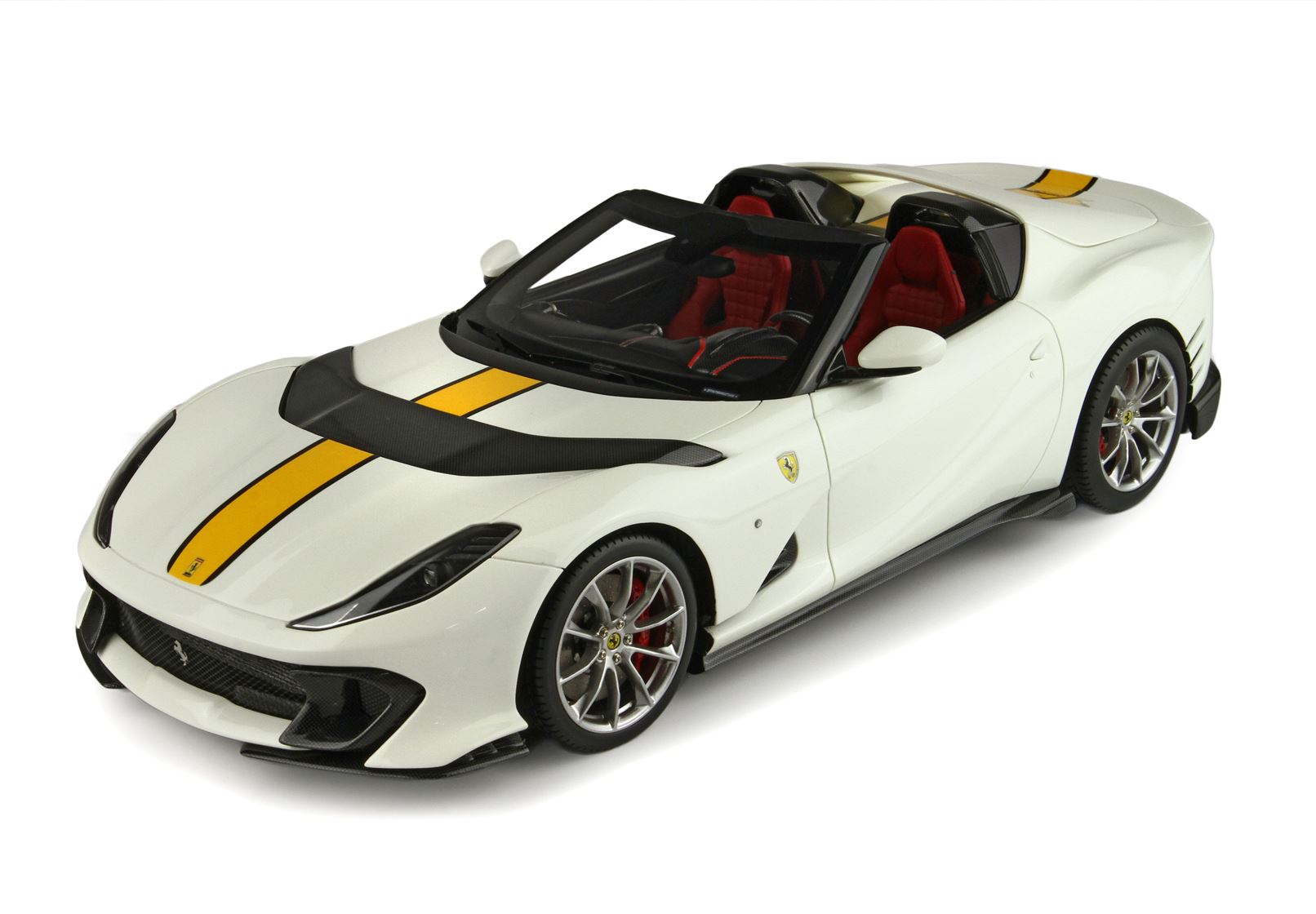 Colore automodello Bianco Avuscon con riga gialla e con interni rossi.