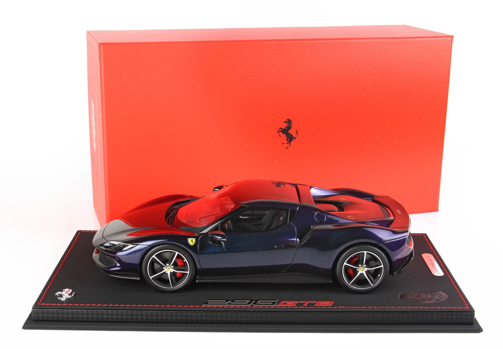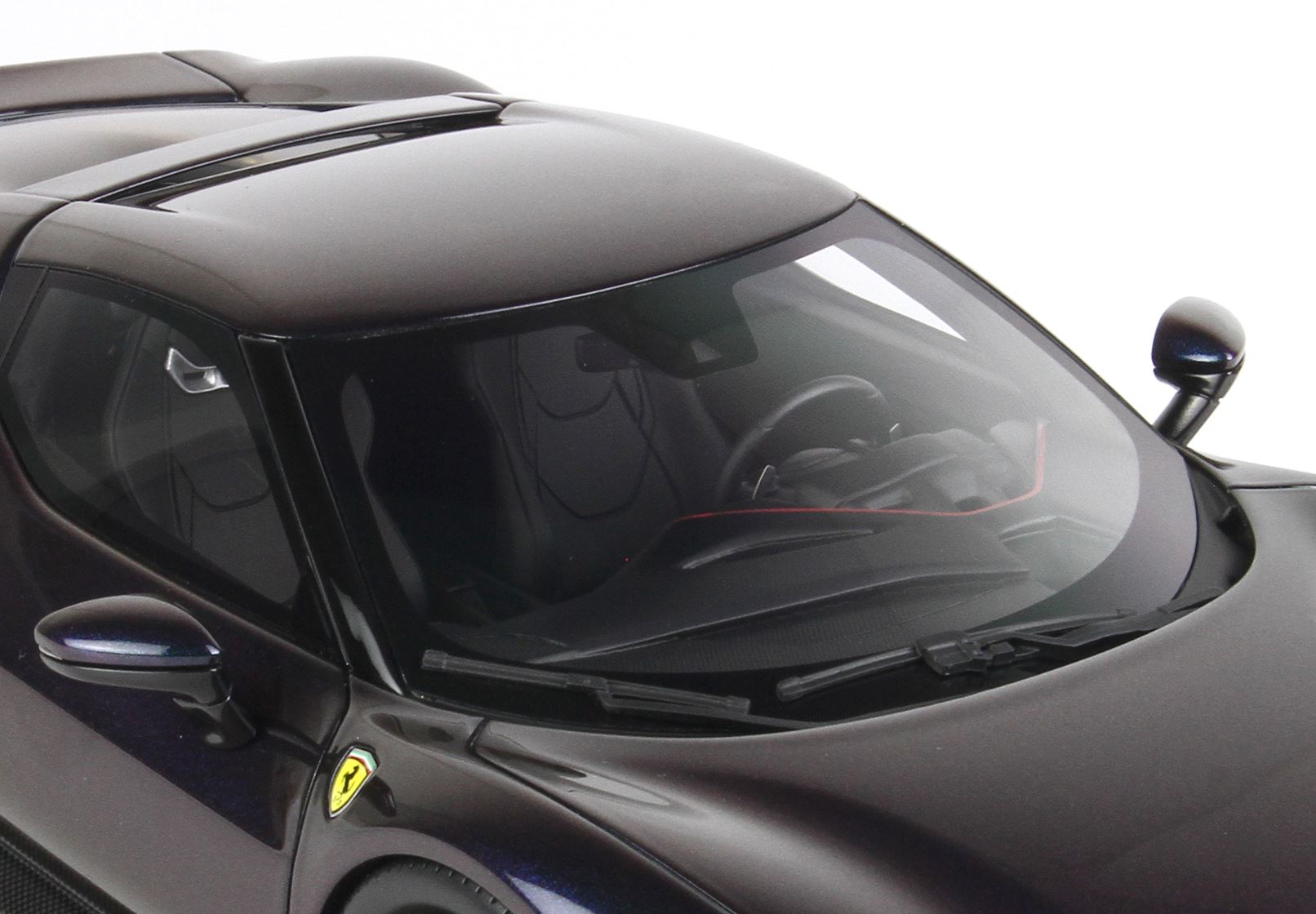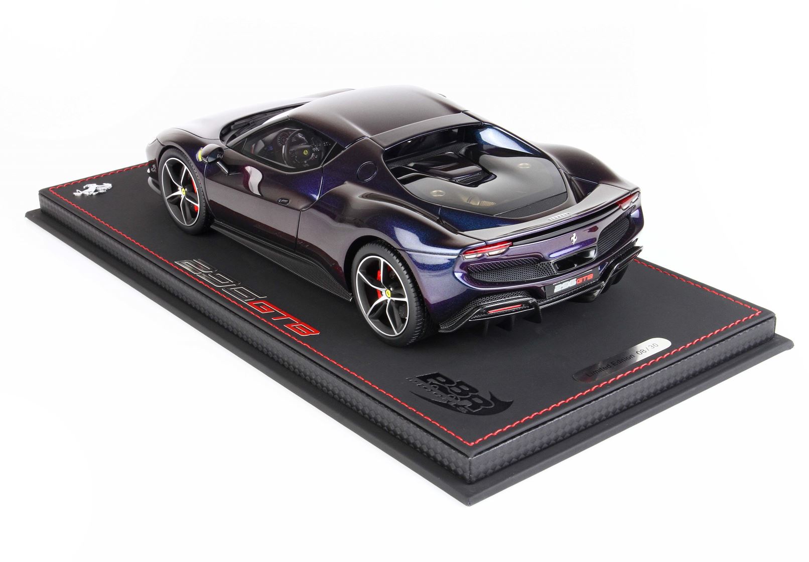 Here it is a version of the Ferrari 296 GTB in iridescent chameleon colour, which changes according to the display.