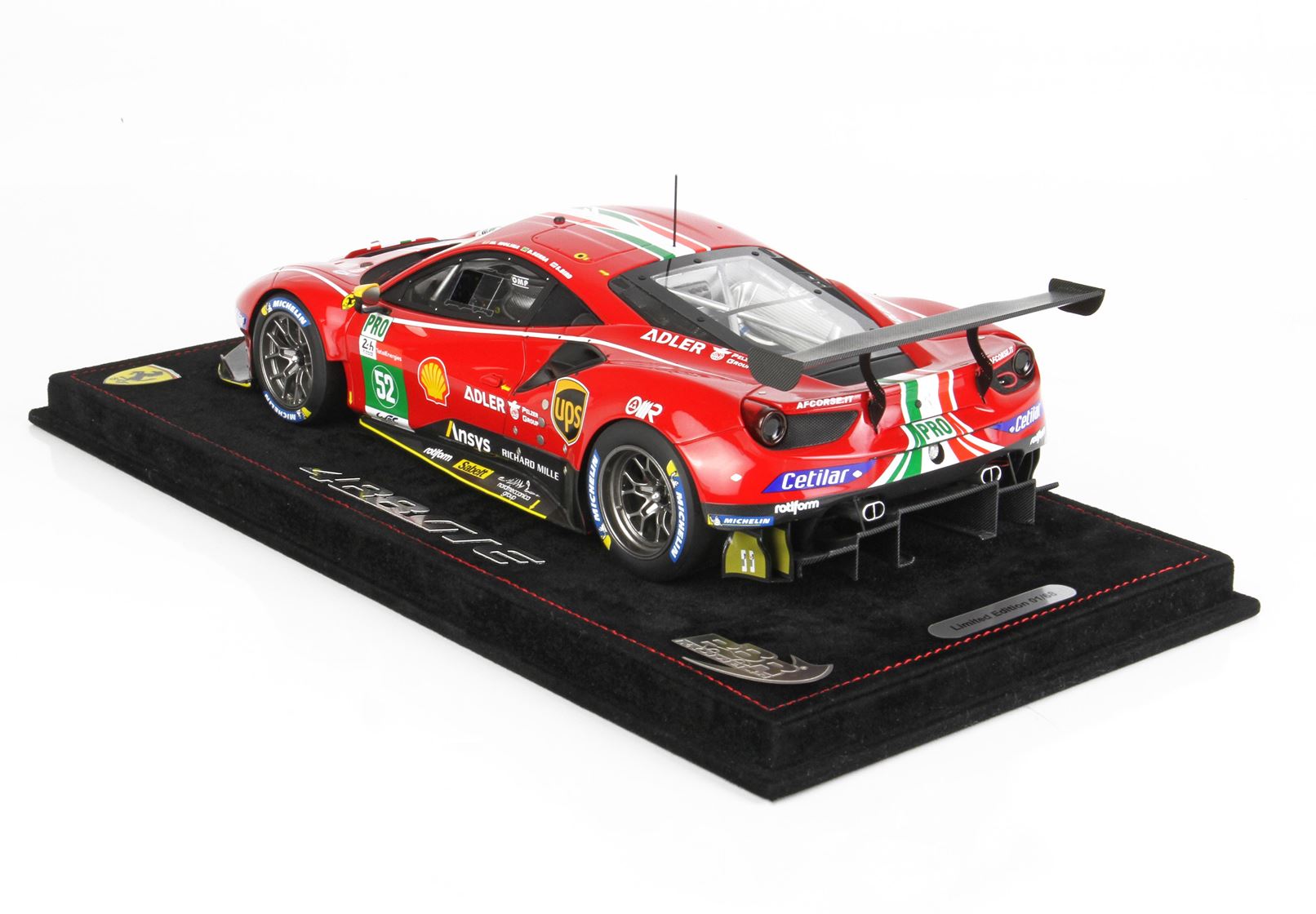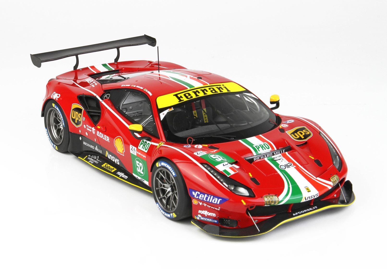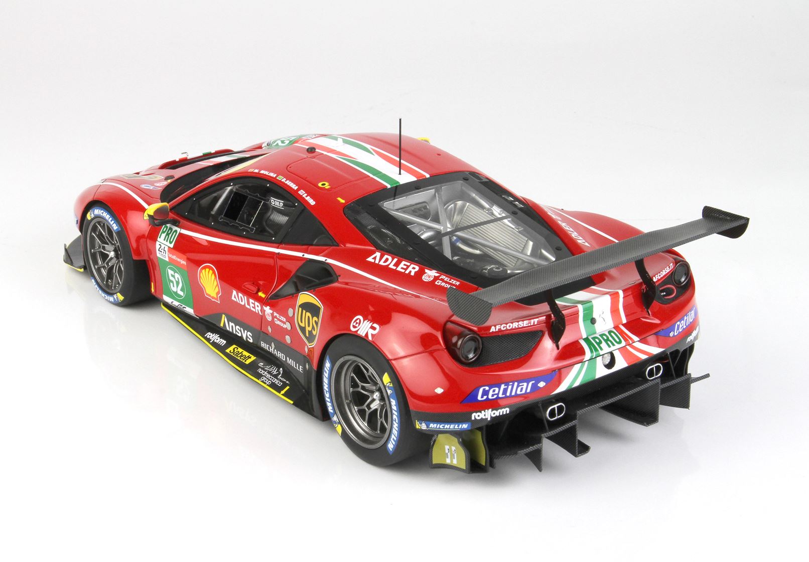 This is the 1/18 scale replica of the second car brought to the track by the AF Corse Team