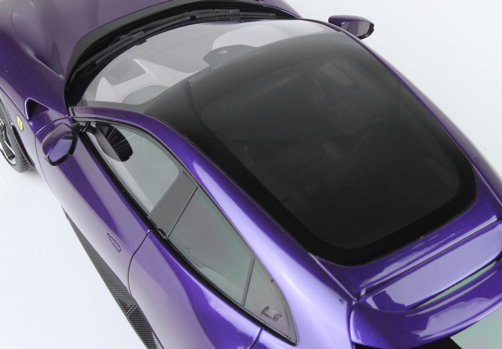 We present in 1/18th scale the version with panoramic roof and carbon pack.