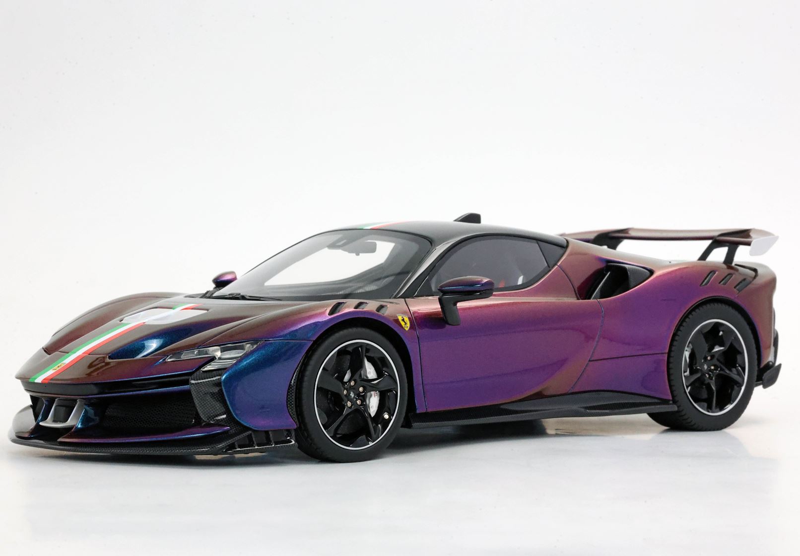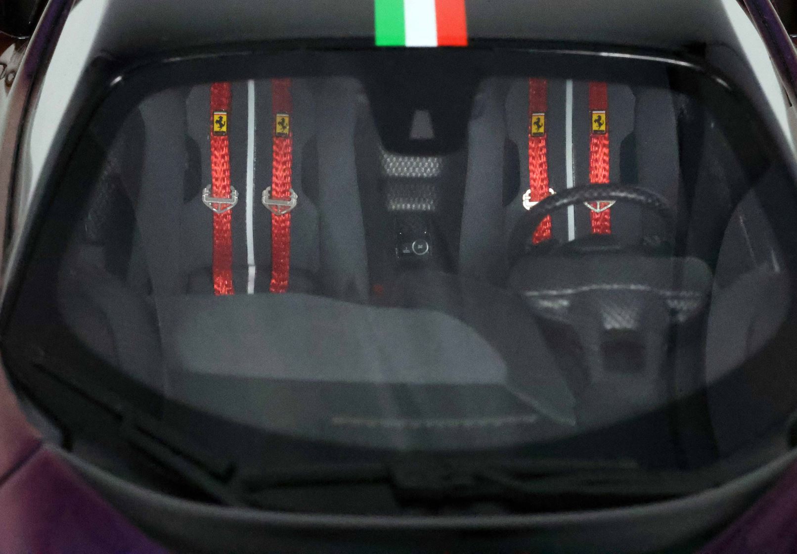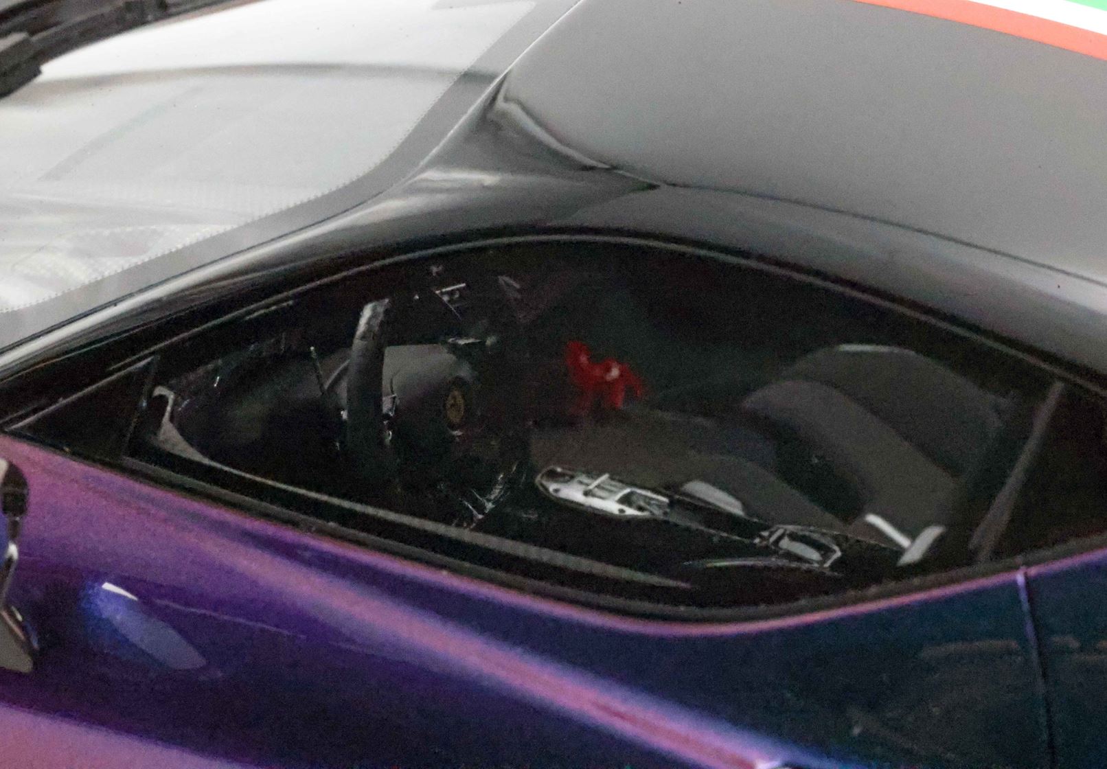 Tutto il modello è in Colore Chamaleon con tetto nero lucido e bandiera italiana, gli interni neri, cintura di sicurezza in tessuto 5 punti.