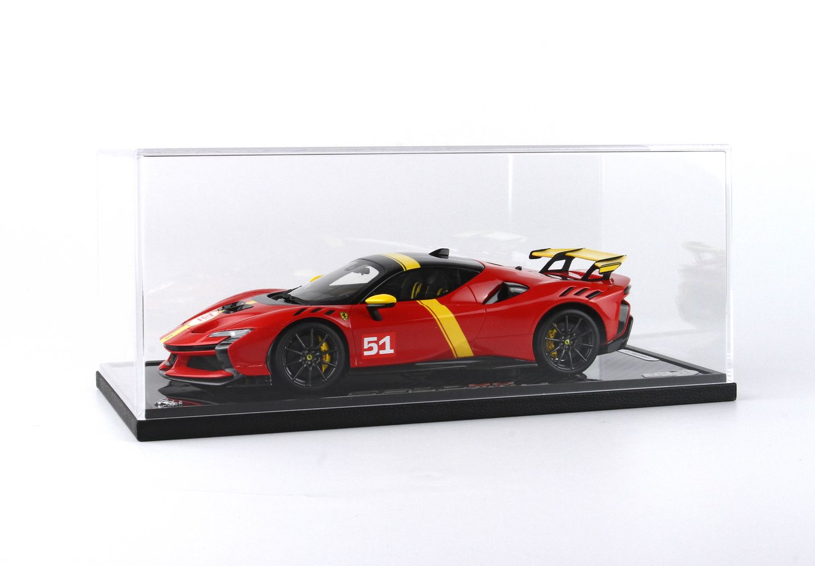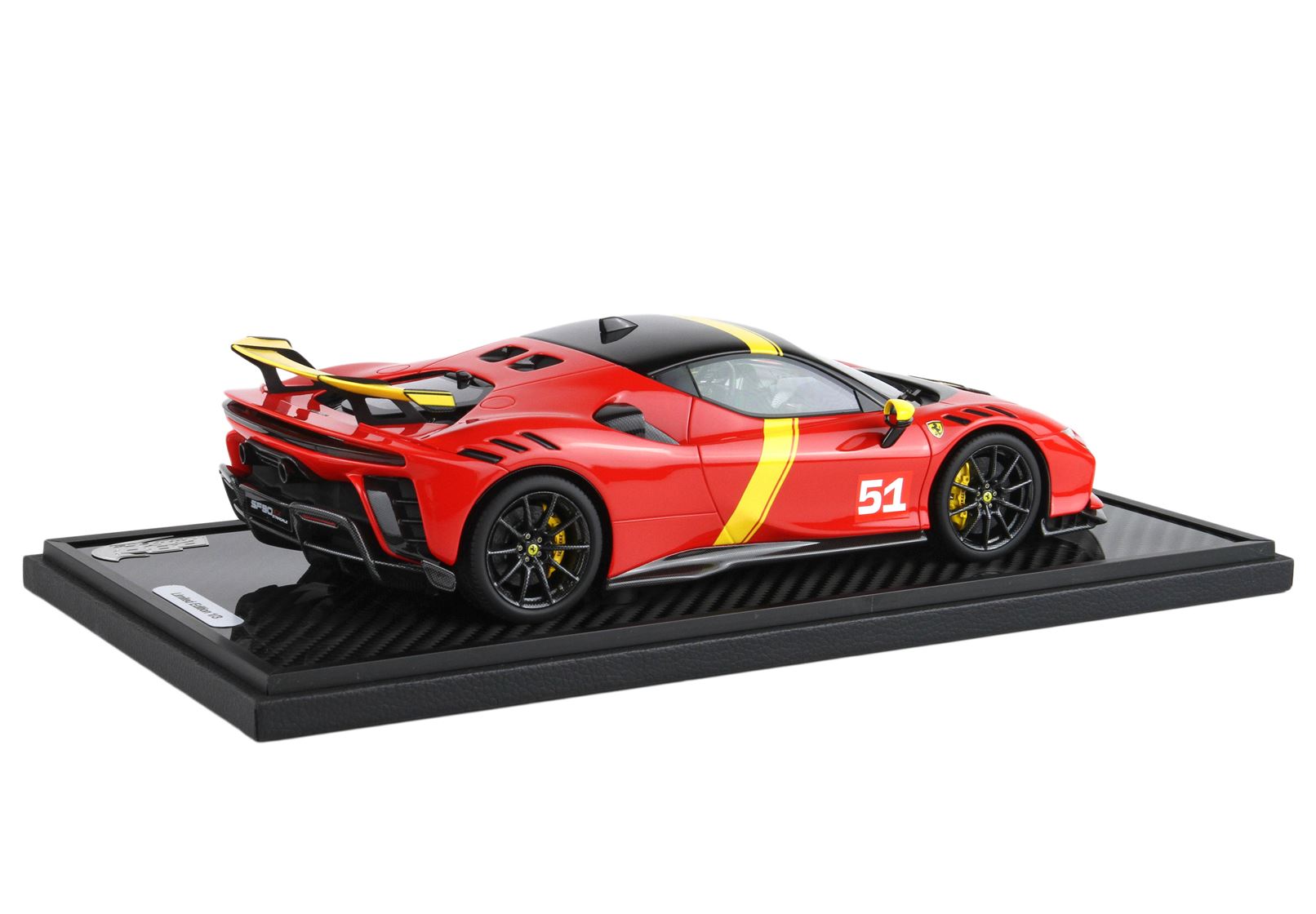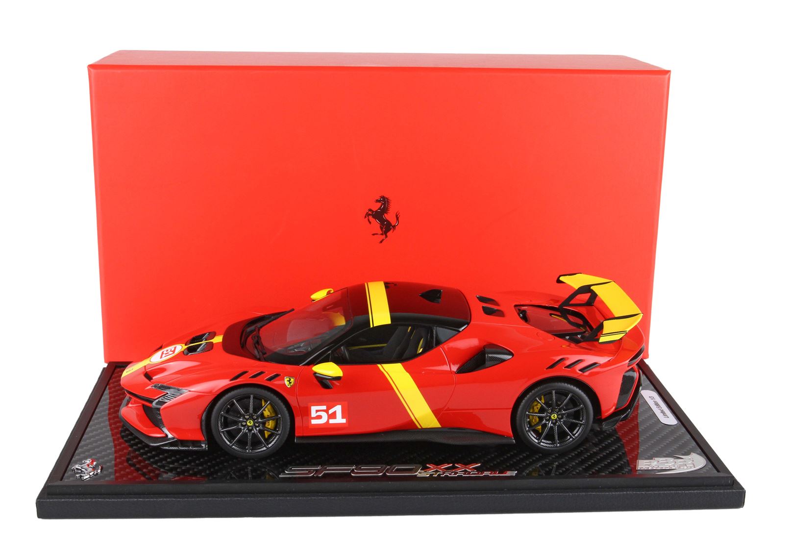 The livery of this Ferrari SF90 XX Stradale celebrates the colors of the 499P winner at LeMans 2023 and is painted by a Le Mans Red combined with Modena Yellow stripes.