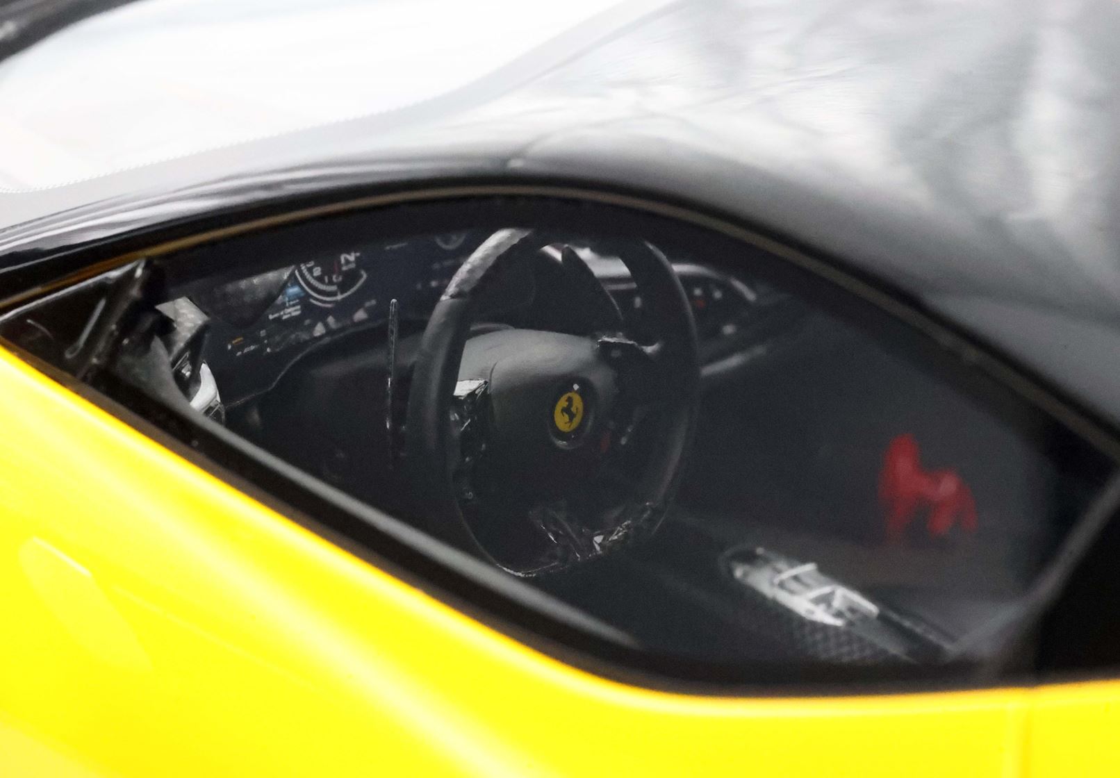 Automodello realizzato in soli 20 pezzi Limitati in colore Giallo Modena con cerchi che replicano la fibra di carbonio. Sul muso è ben visibile la livrea Italiana. Confezione Speciale con base in vero Carbonio.
