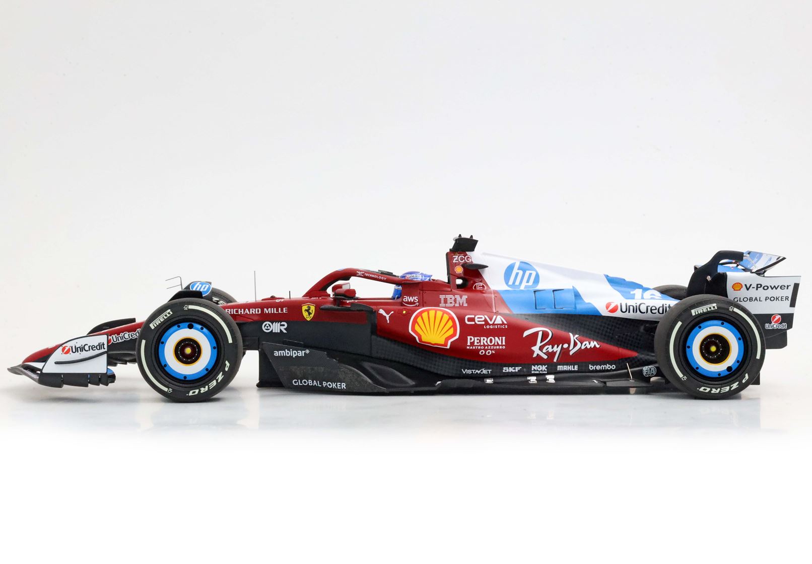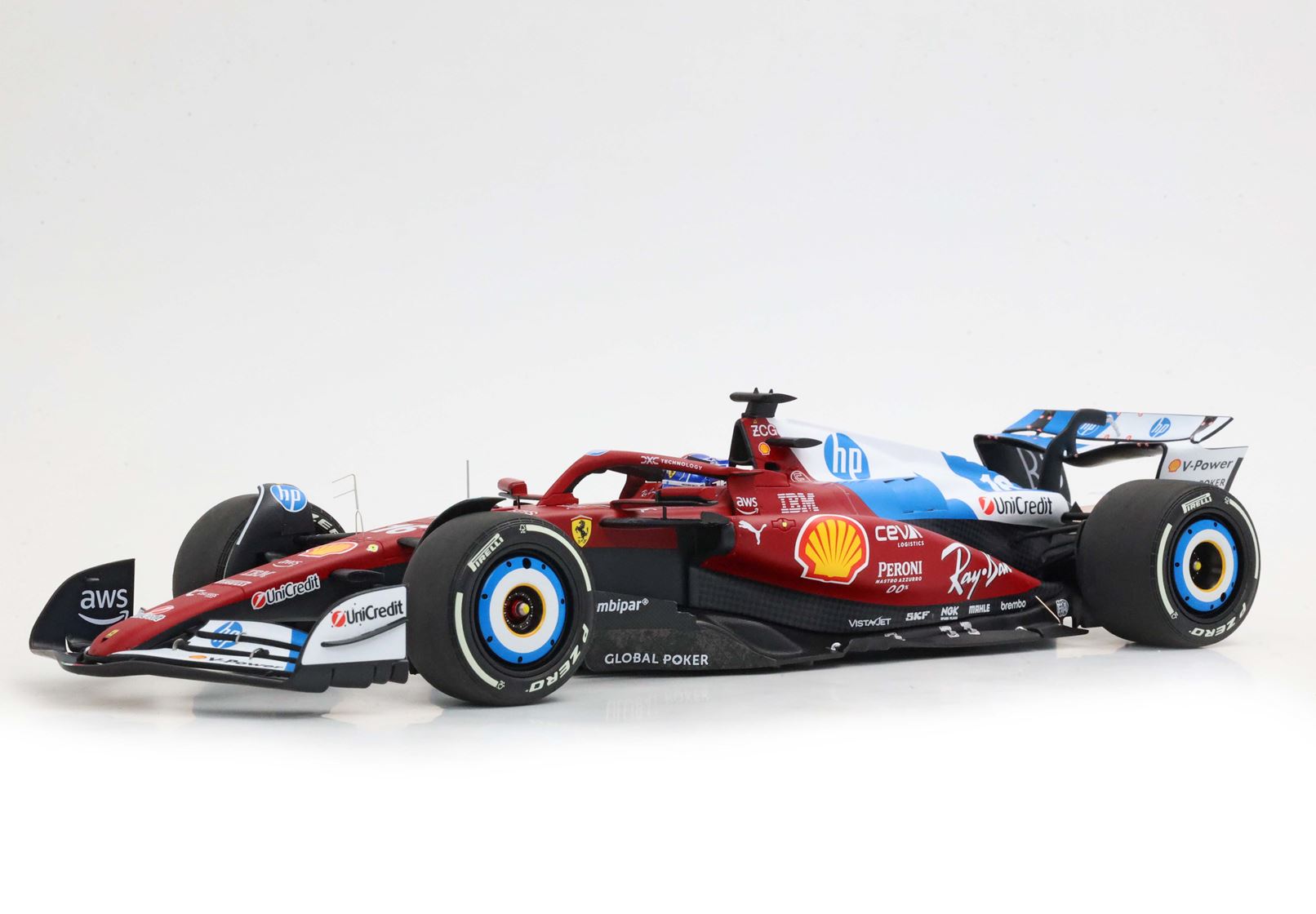 Anche nel 2025 Ferrari ha cambiato pelle nel GP di Miami, con una livrea speciale con alettoni, ruote e retro verniciate di bianco ed azzurro. Inoltre le pennellate di azzurro non erano simmetriche, rendendo ancora più originale questa versione.