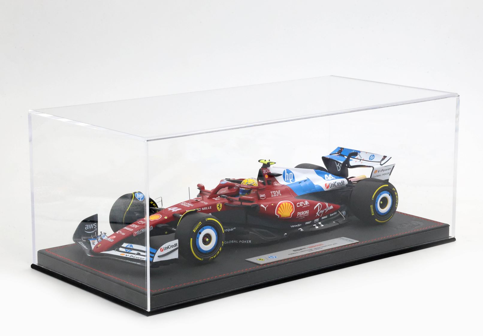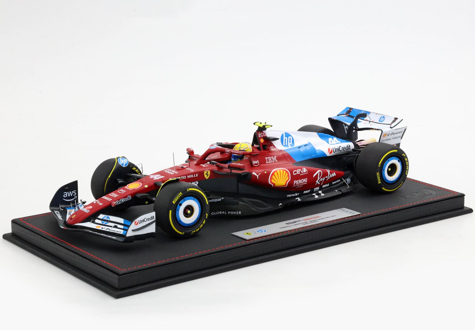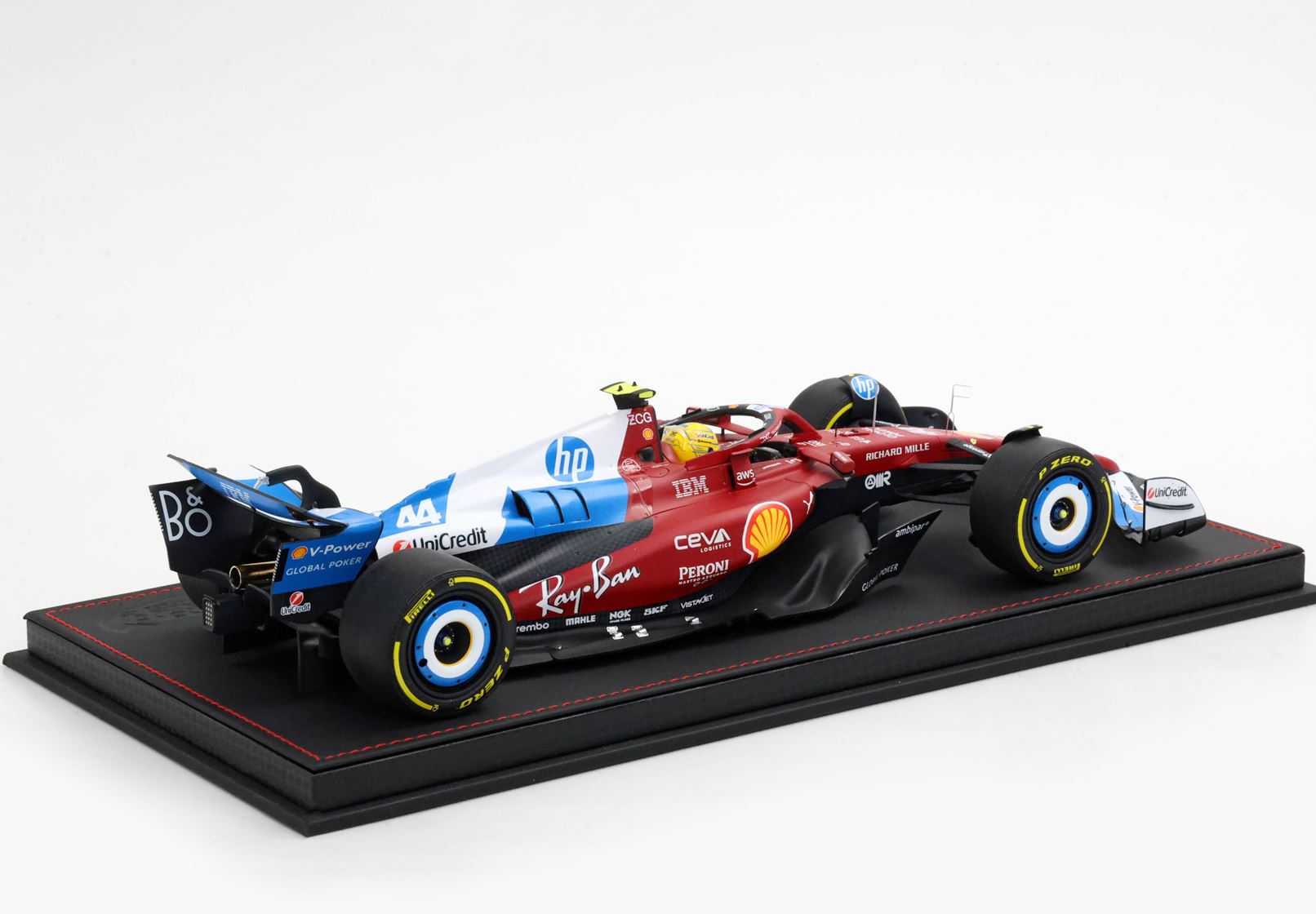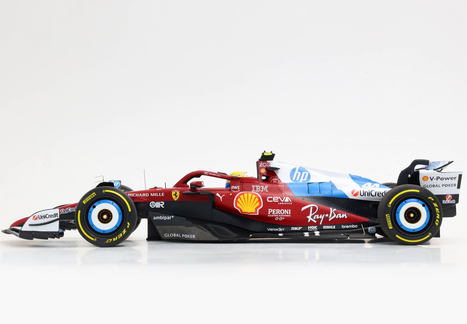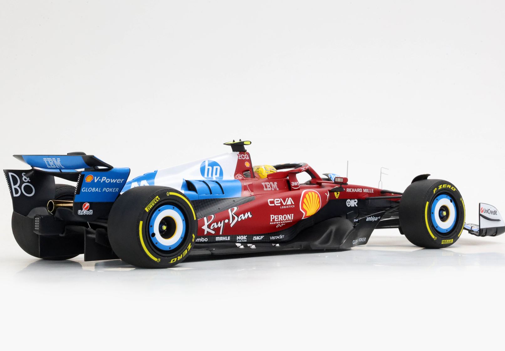 Ferrari changed its livery for the 2025 Miami GP, with a special white and blue paint of wings, wheels and rear. Furthermore, the blue touches were not symmetrical, making this version even more original.
