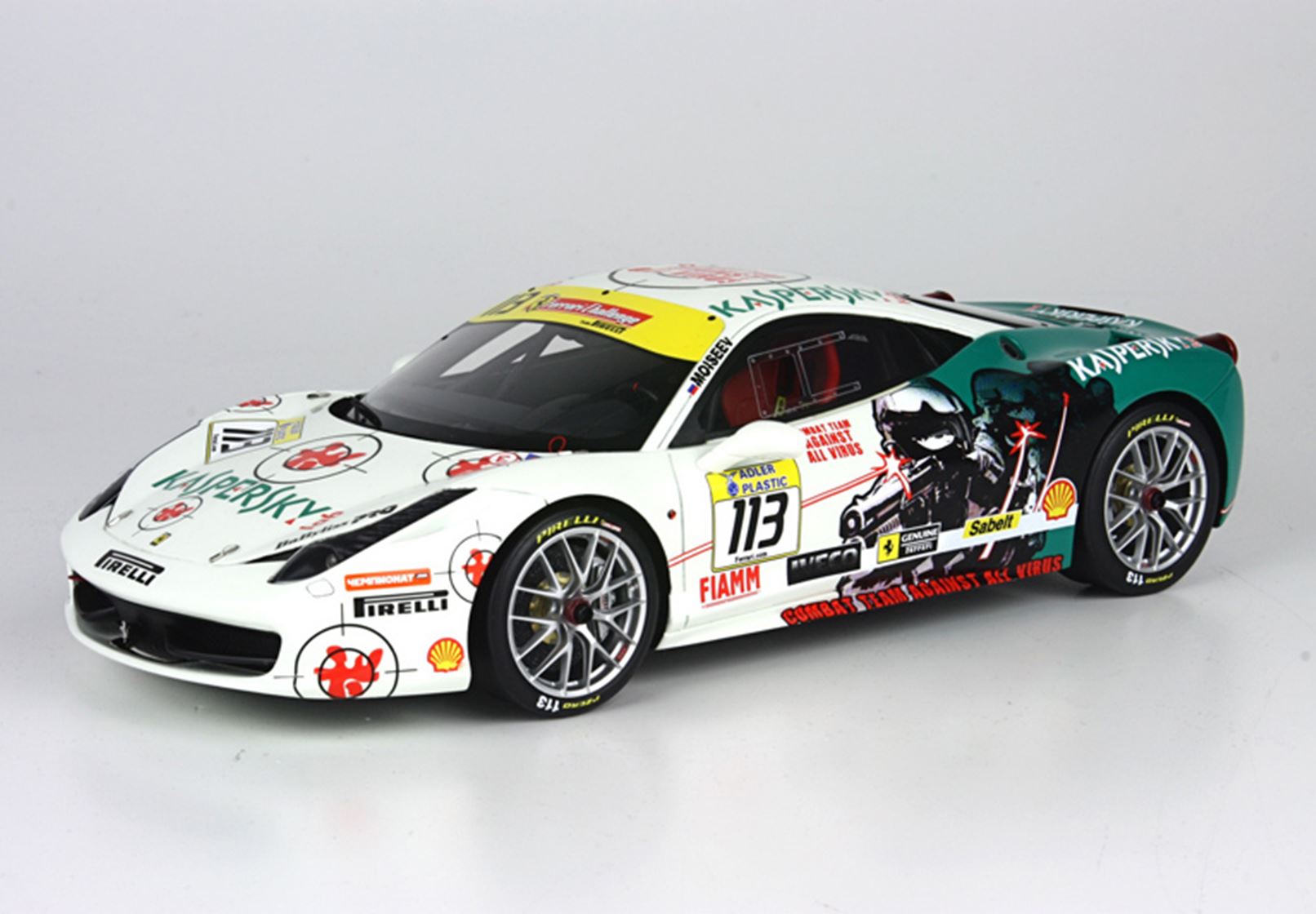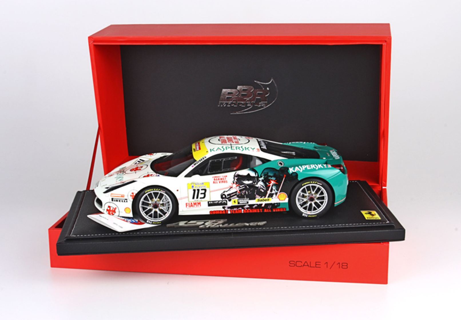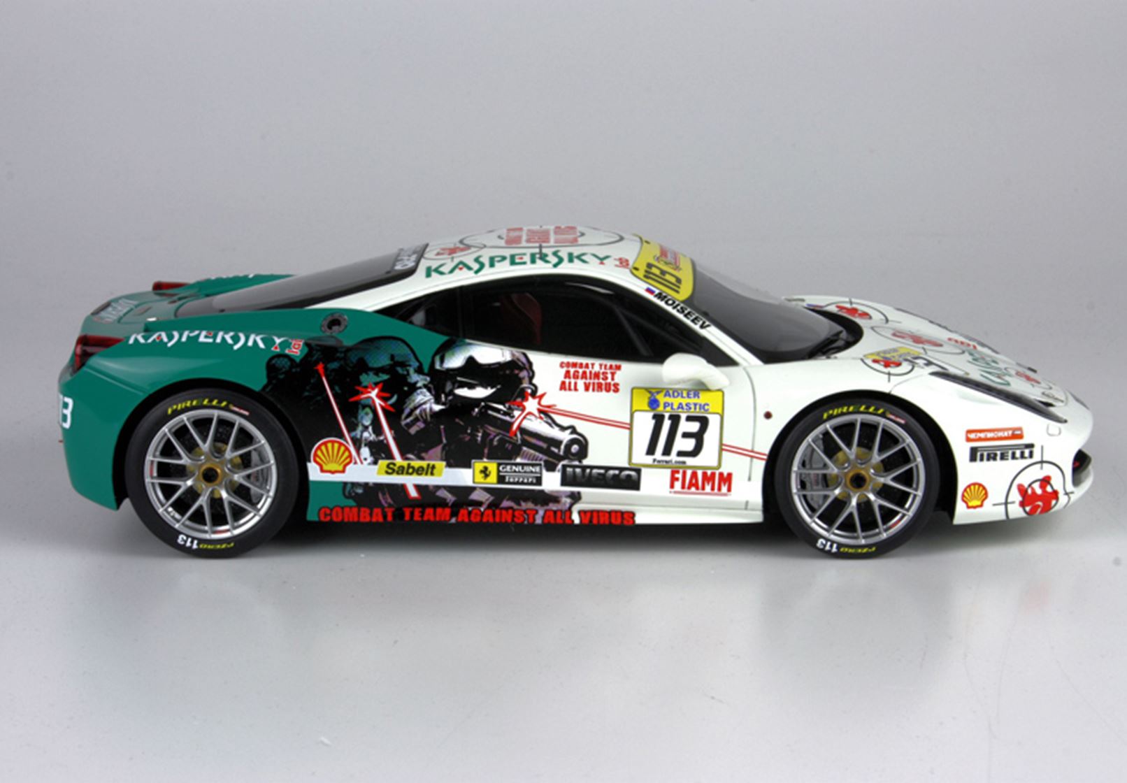 a very nice livery sponsored by "KASPERSKY", well-known antivirus for computers, which is also a sponsor of the Ferrari F1.