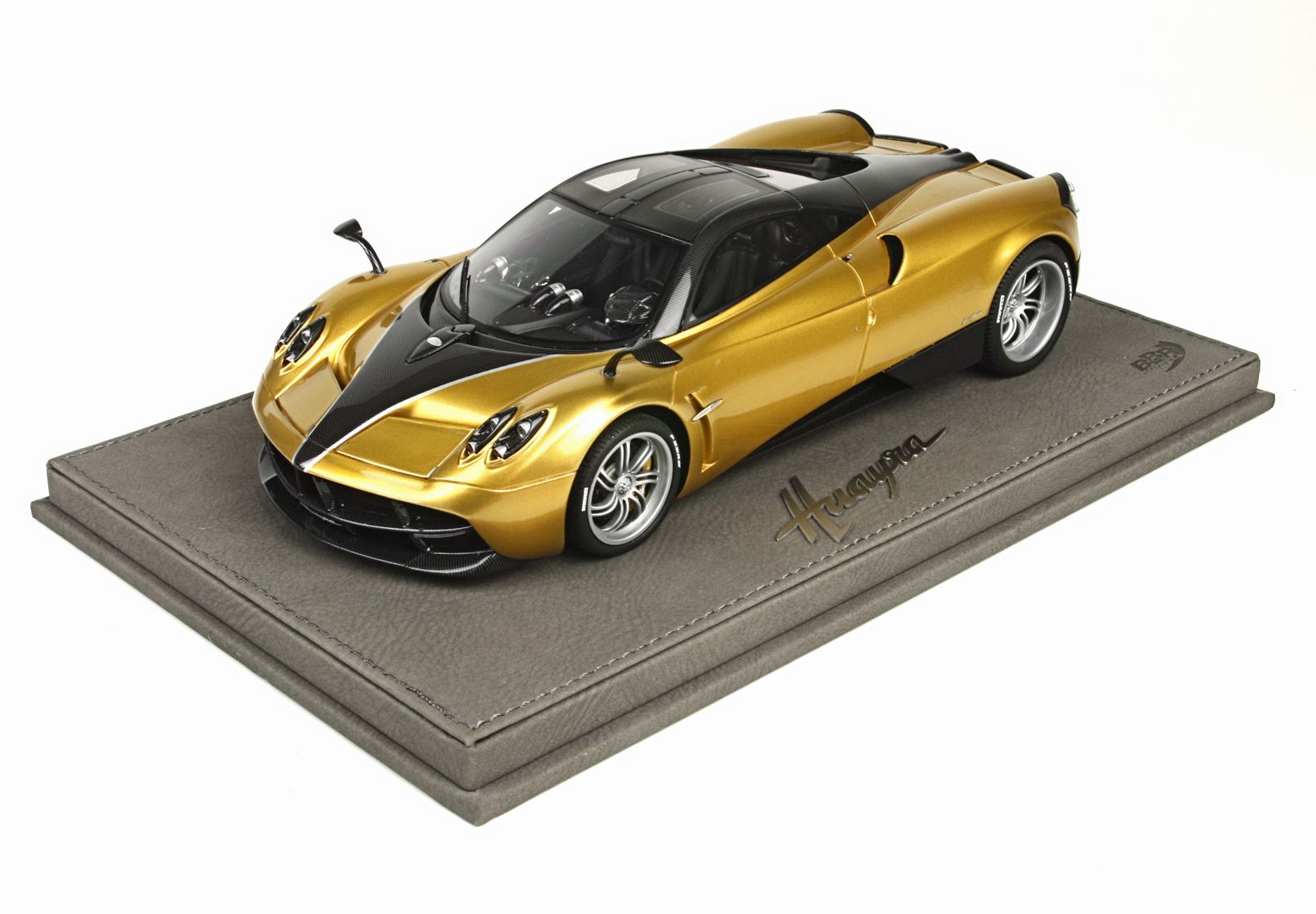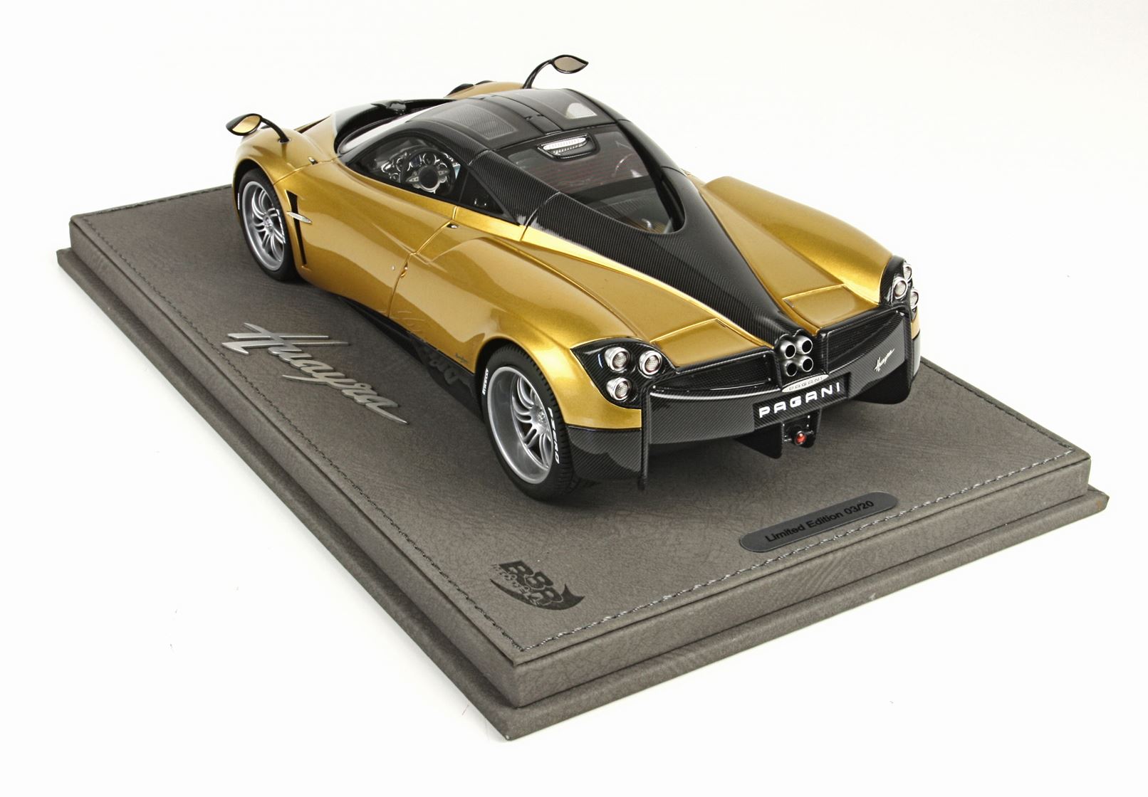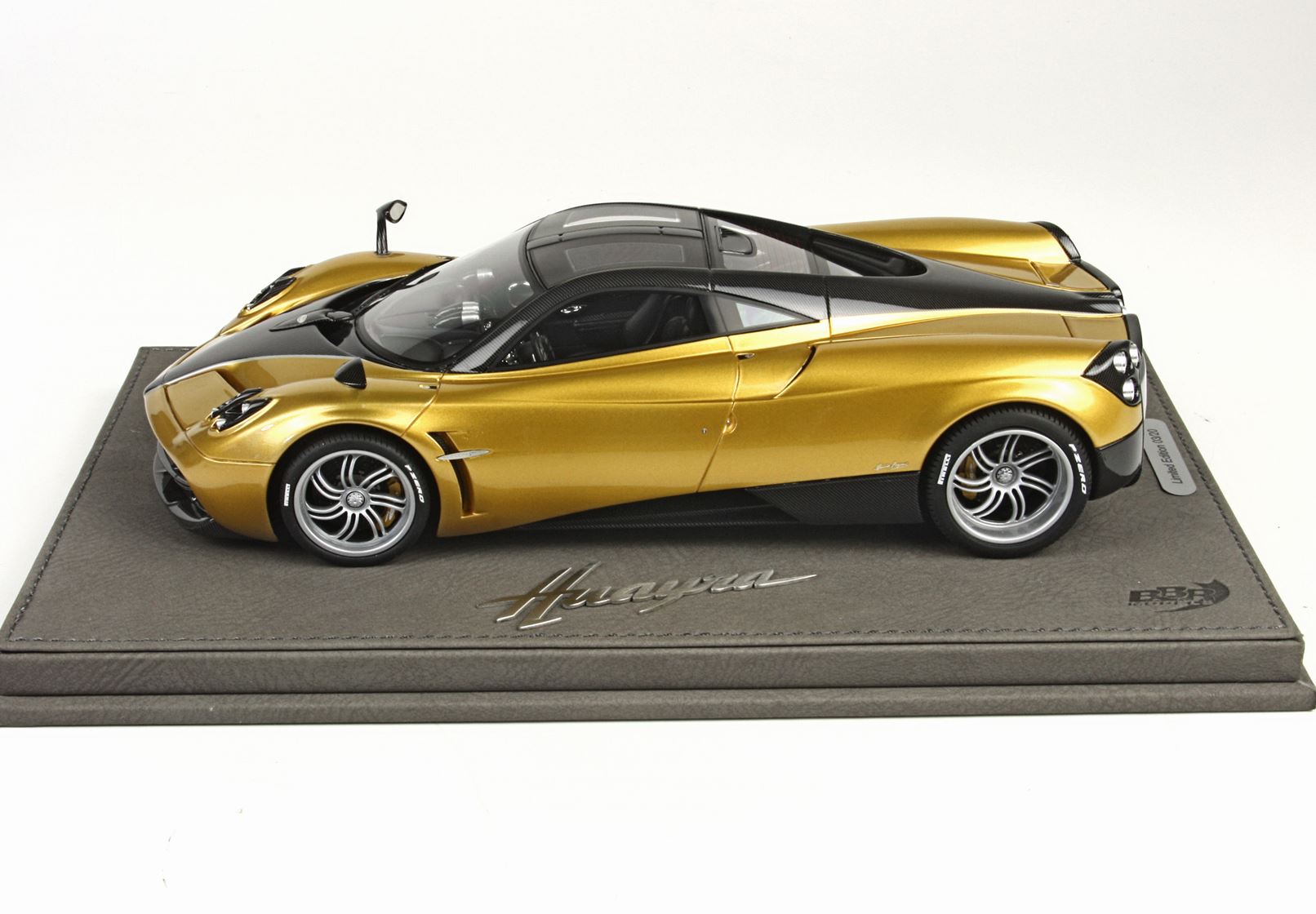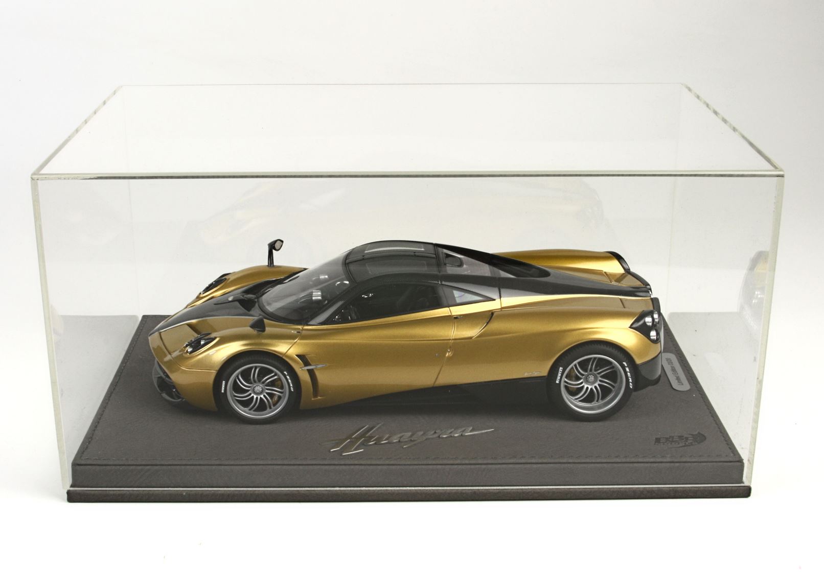 we offer you this version of the Pagani Huayra 2014 in the color metallic gold. It comes with leatherette base and hand made display case. Limited edition of 8 pcs over the world.