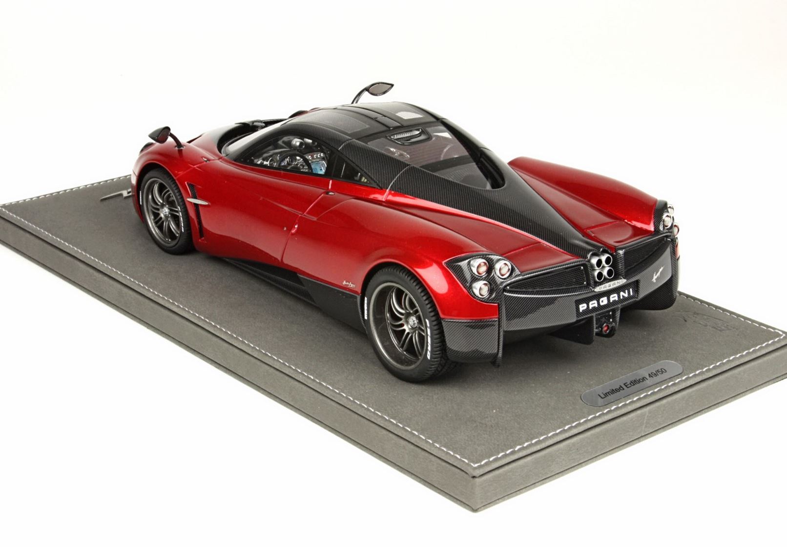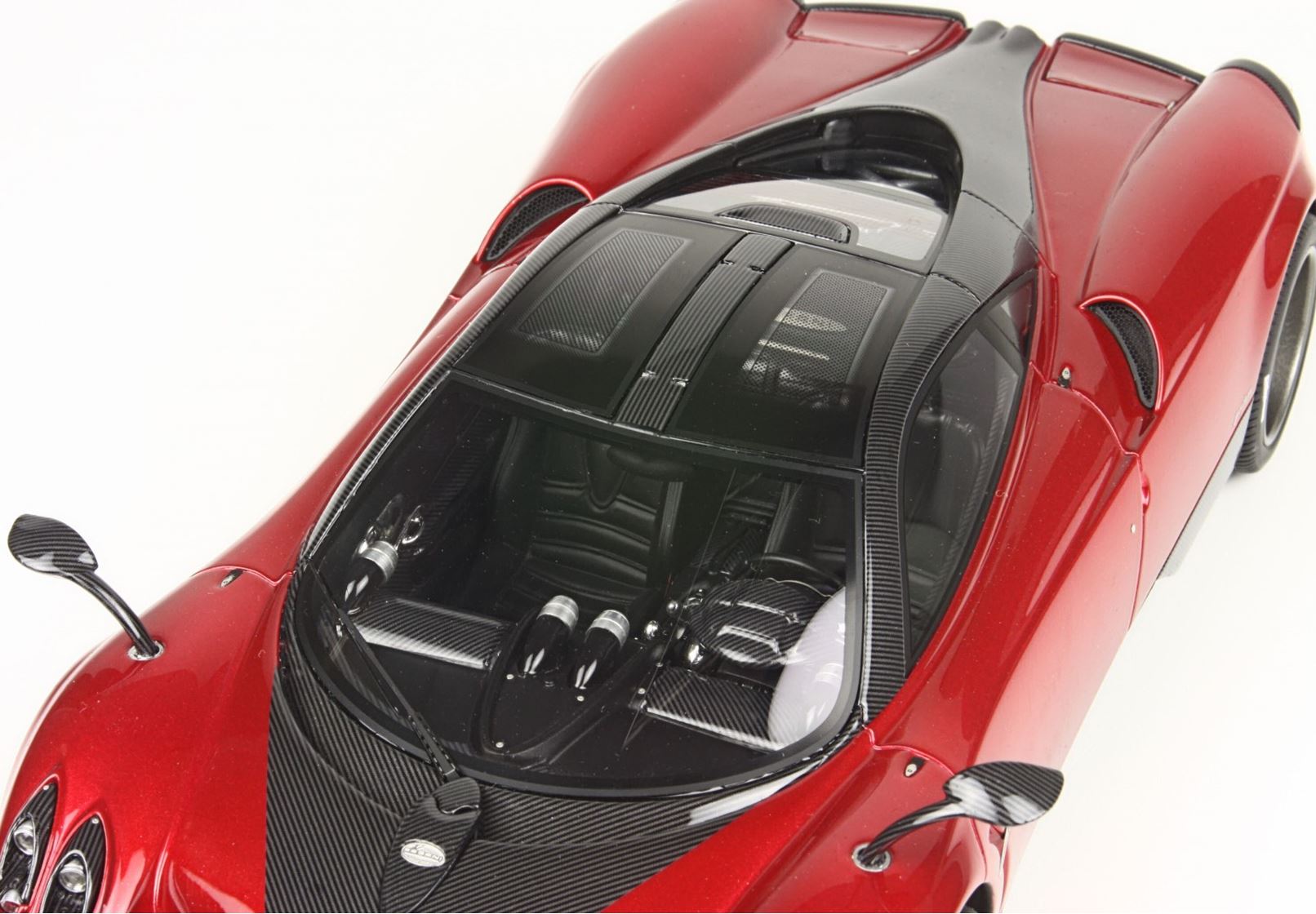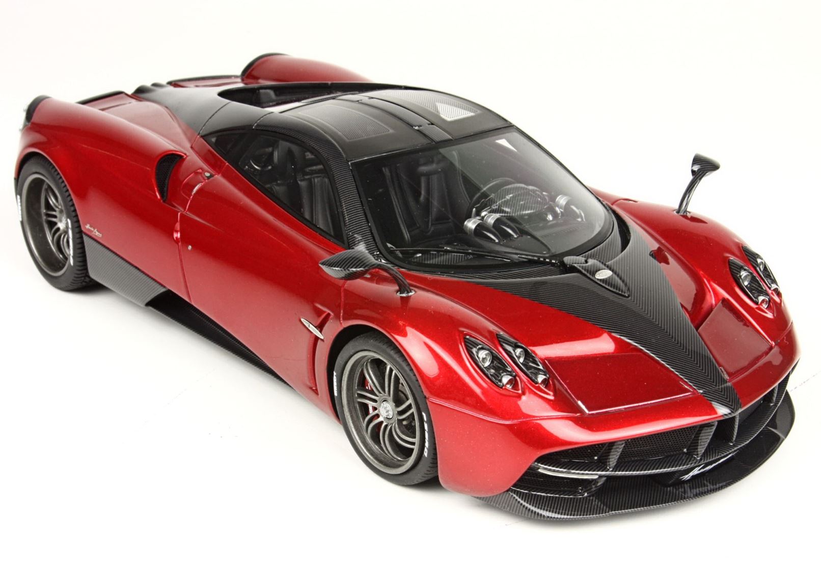 Configuration of Pagani Huayra in version 2014 with carbon fiber on front bonnet.