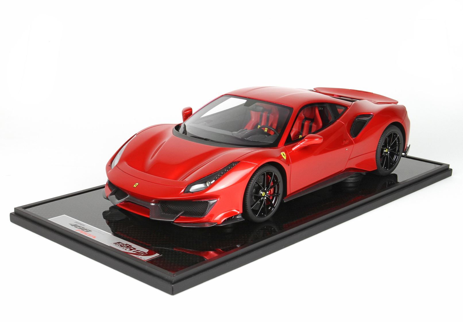 Gli interni di questa 488 Pista sono replicati con una particolare verniciatura effetto Alcantara